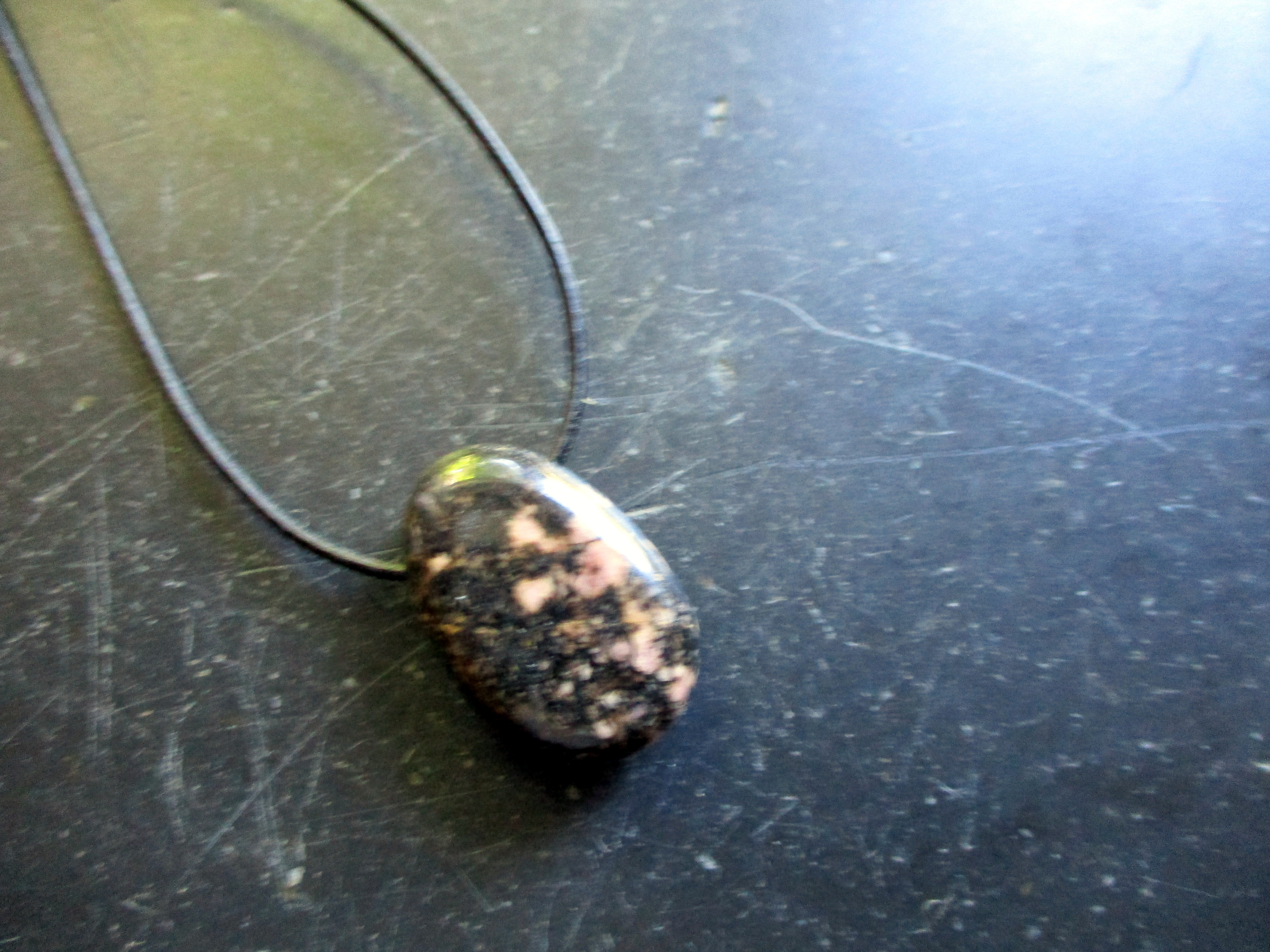 Kette, Lederband, Rhodonit, Tropfen, Anhänger, Schmuck, Unisex