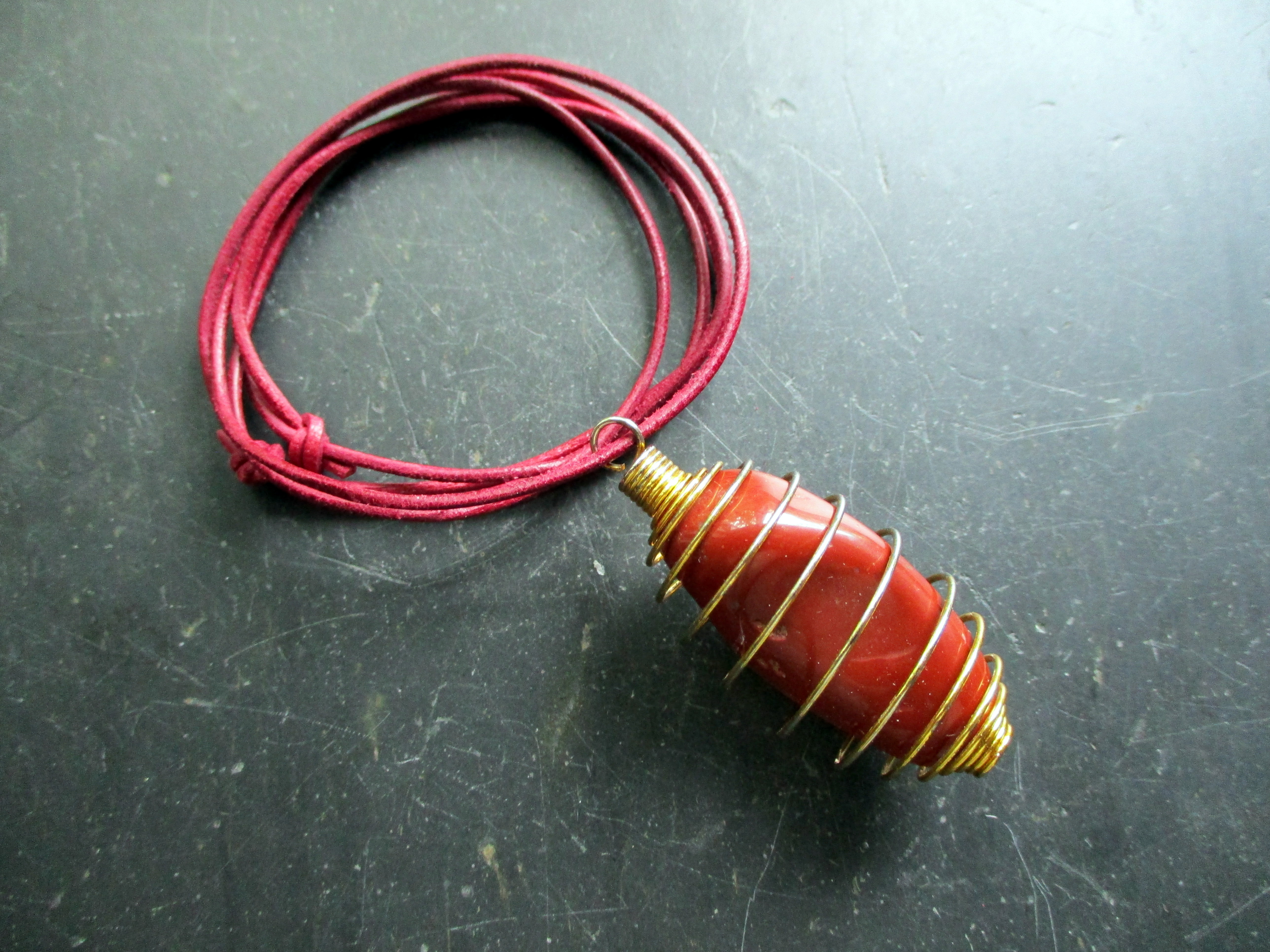 Kette, Lederband, Spirale, Jaspis, rot, Schmuck, Männer, Frauen