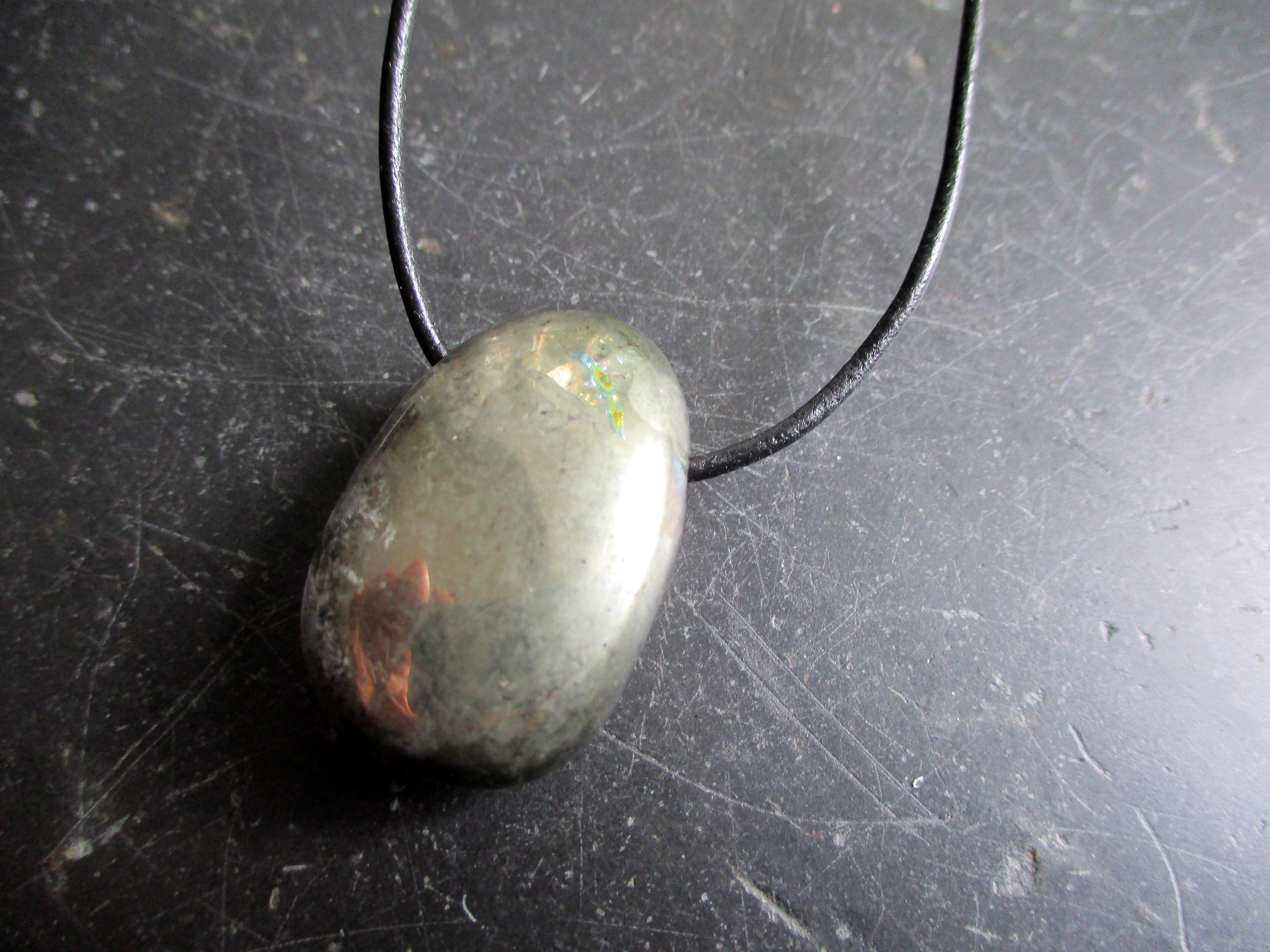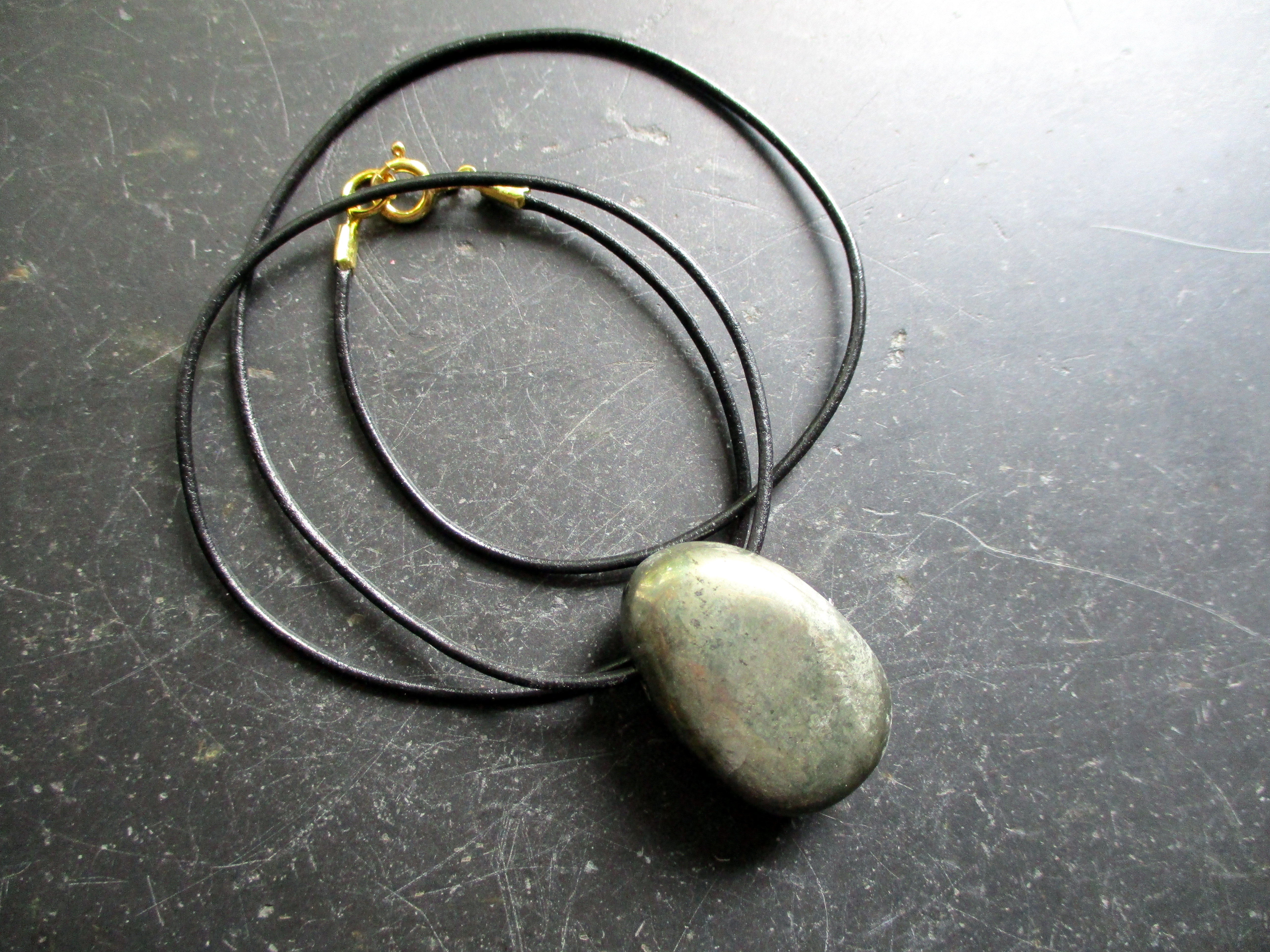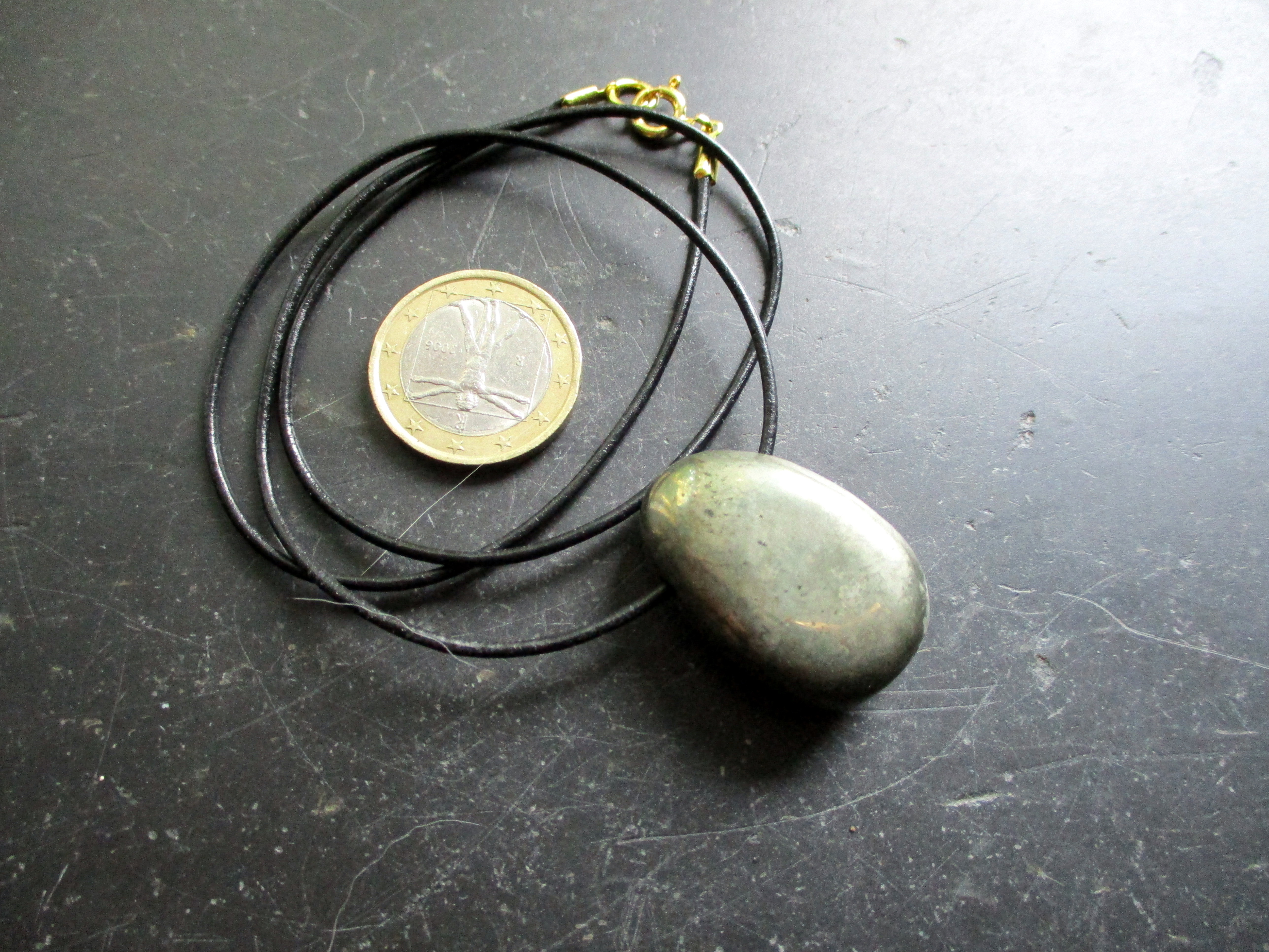 Kette, Lederband, Sterlingsilber, Tropfen, Pyrit, gold, bunt, Unisex