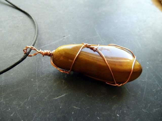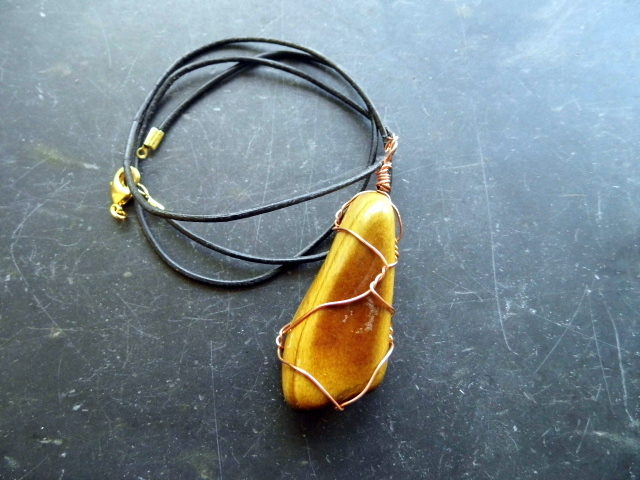 Kette, Lederband, Anhänger, Tigerauge, gewickelt, Unisex
