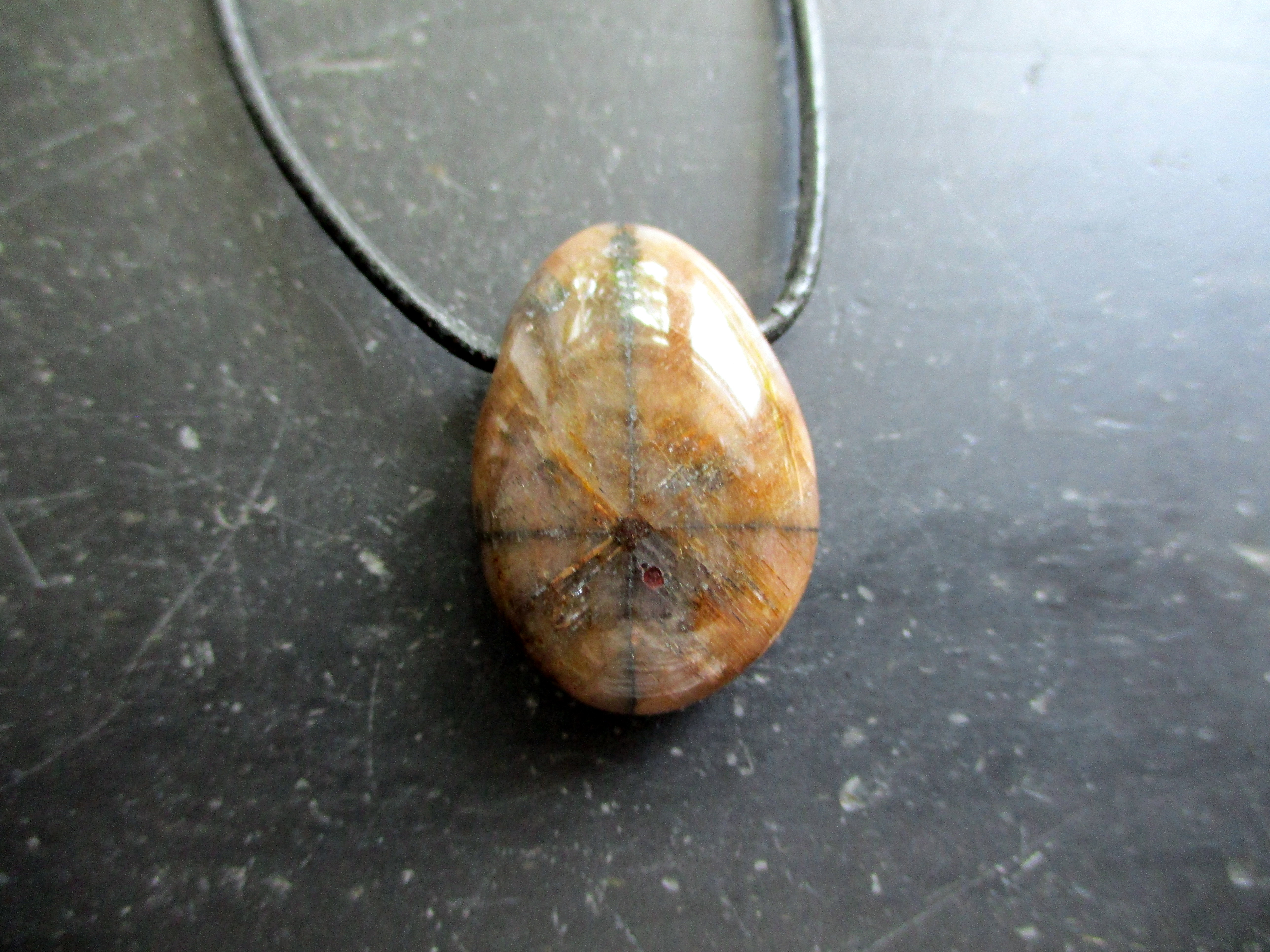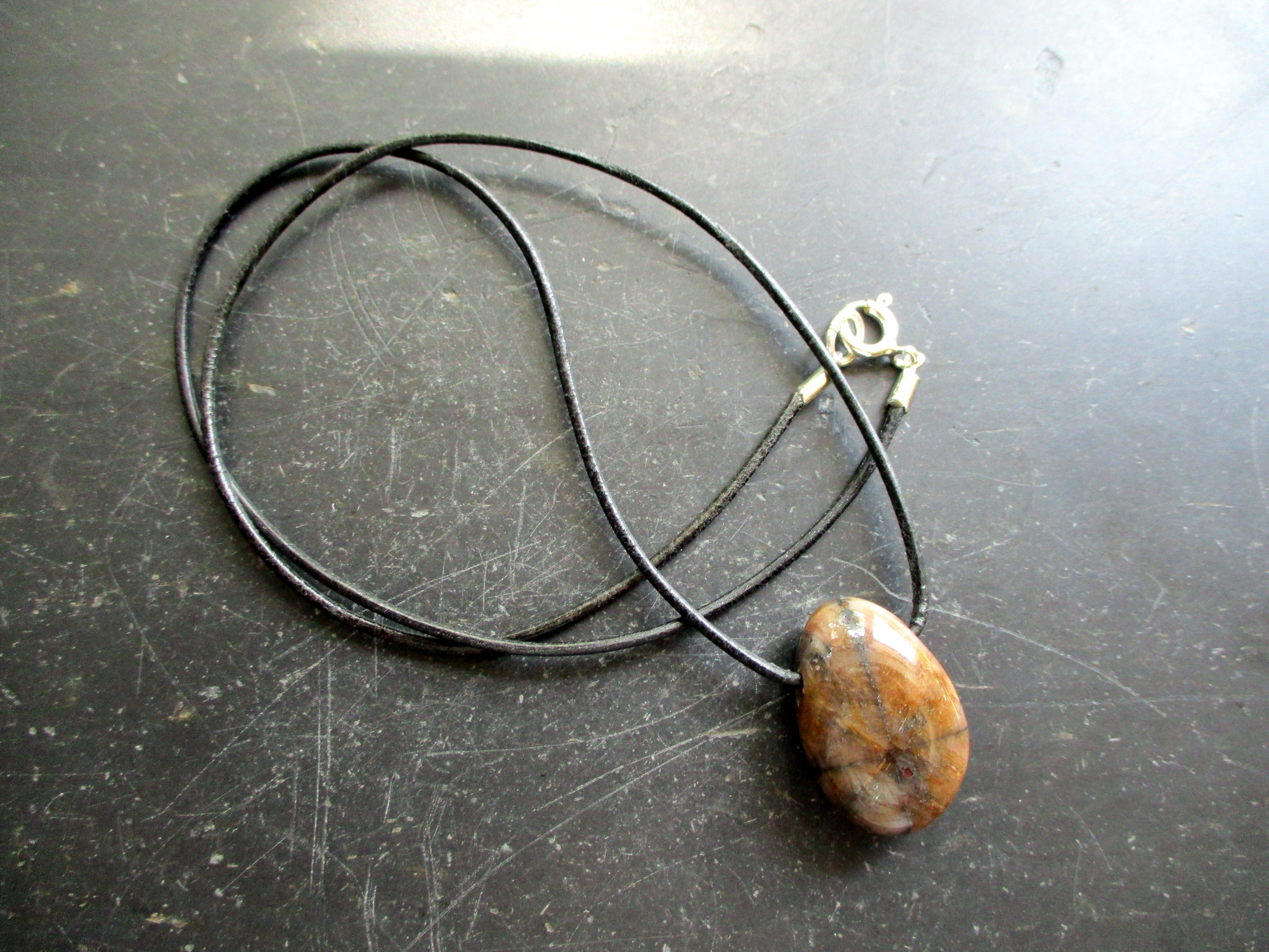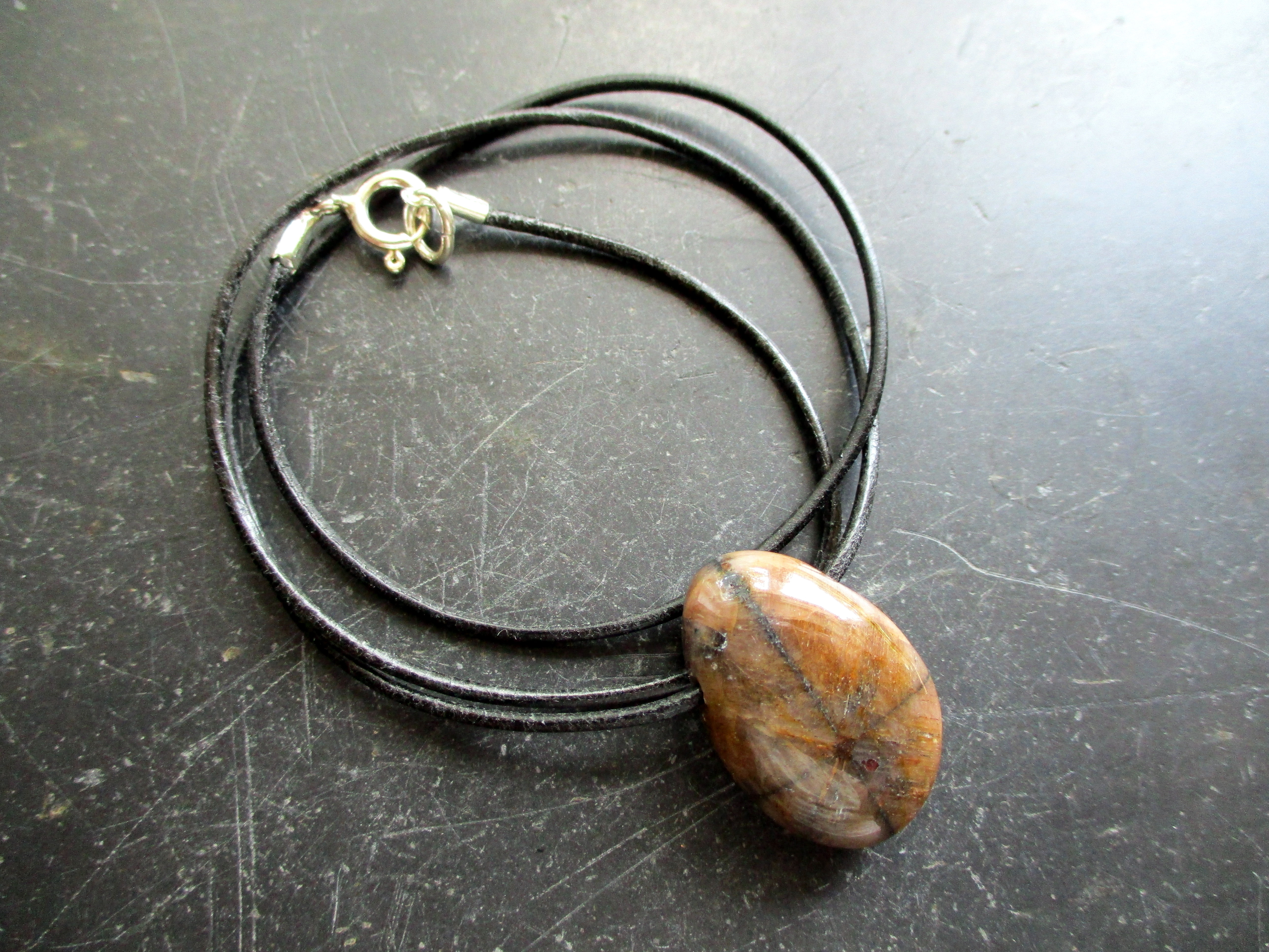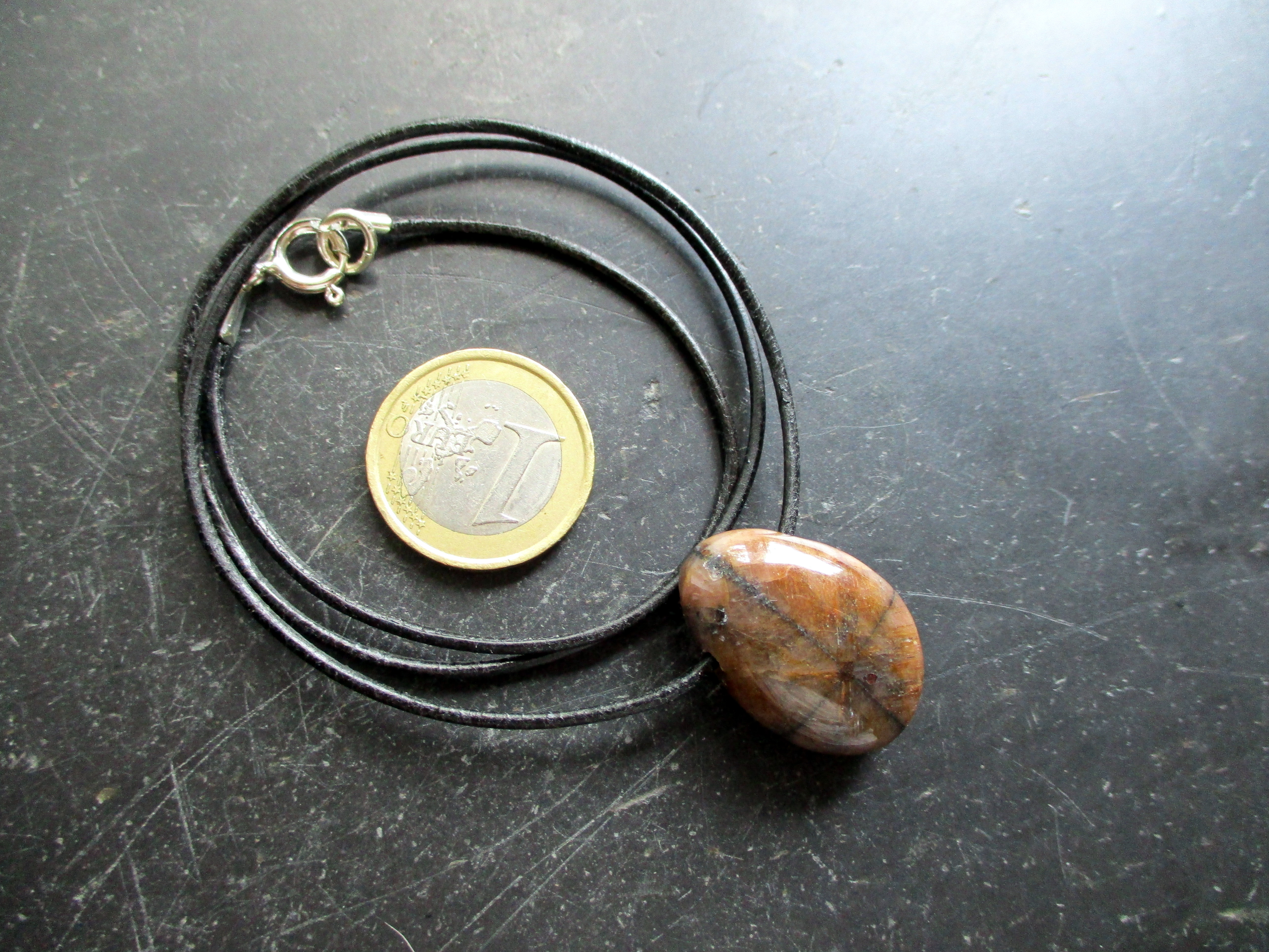 Kette, Lederband, Tigerauge, Chiastolith, braun, Kreuzstein, Schmuck Unisex
