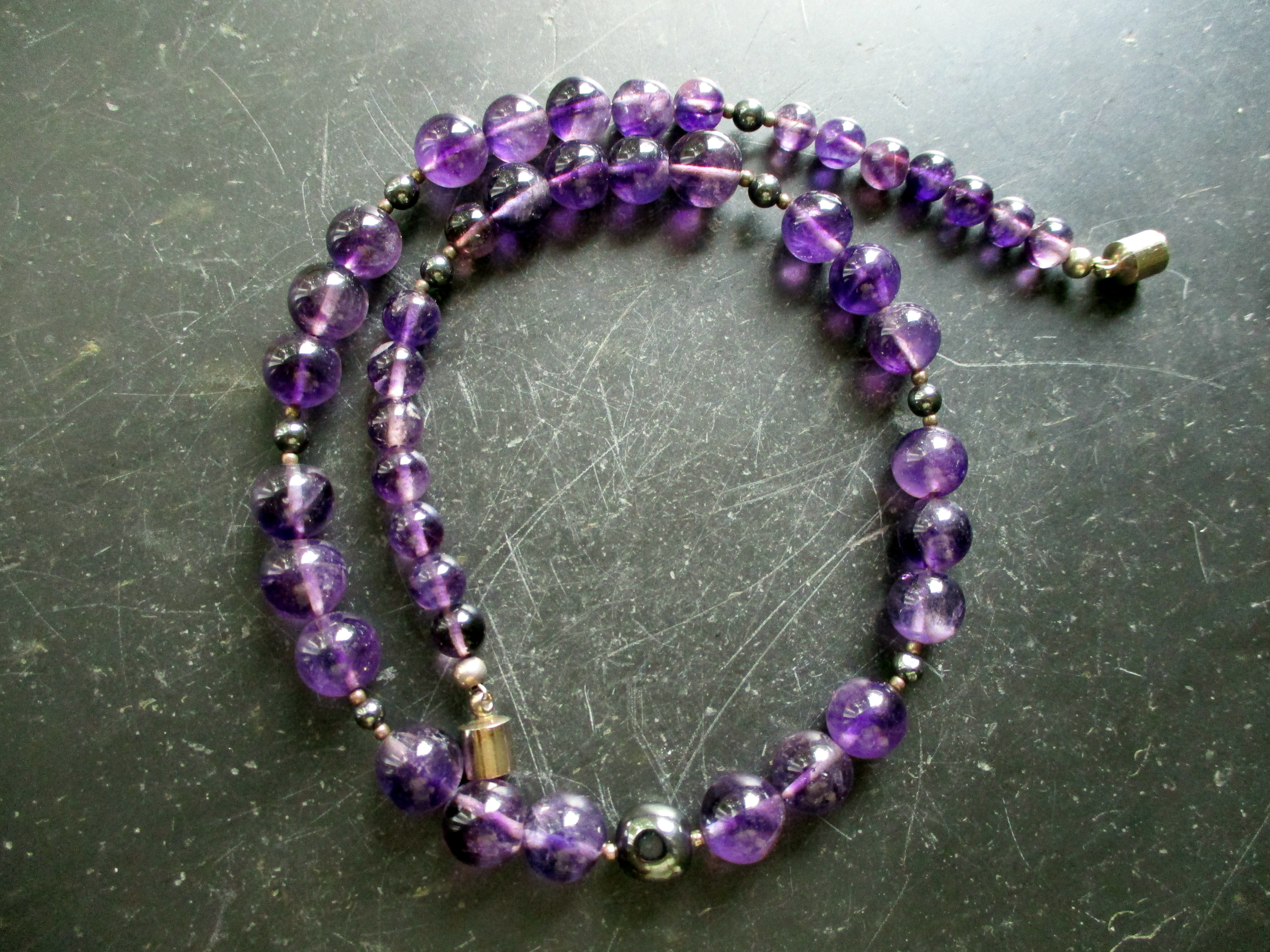 Kette, Amethyst, Hämatit, lila, schwarz, Verlauf, Magnetverschluss