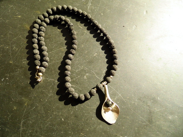 Aussgefallen ist diese Kette aus Lava-Perlen -