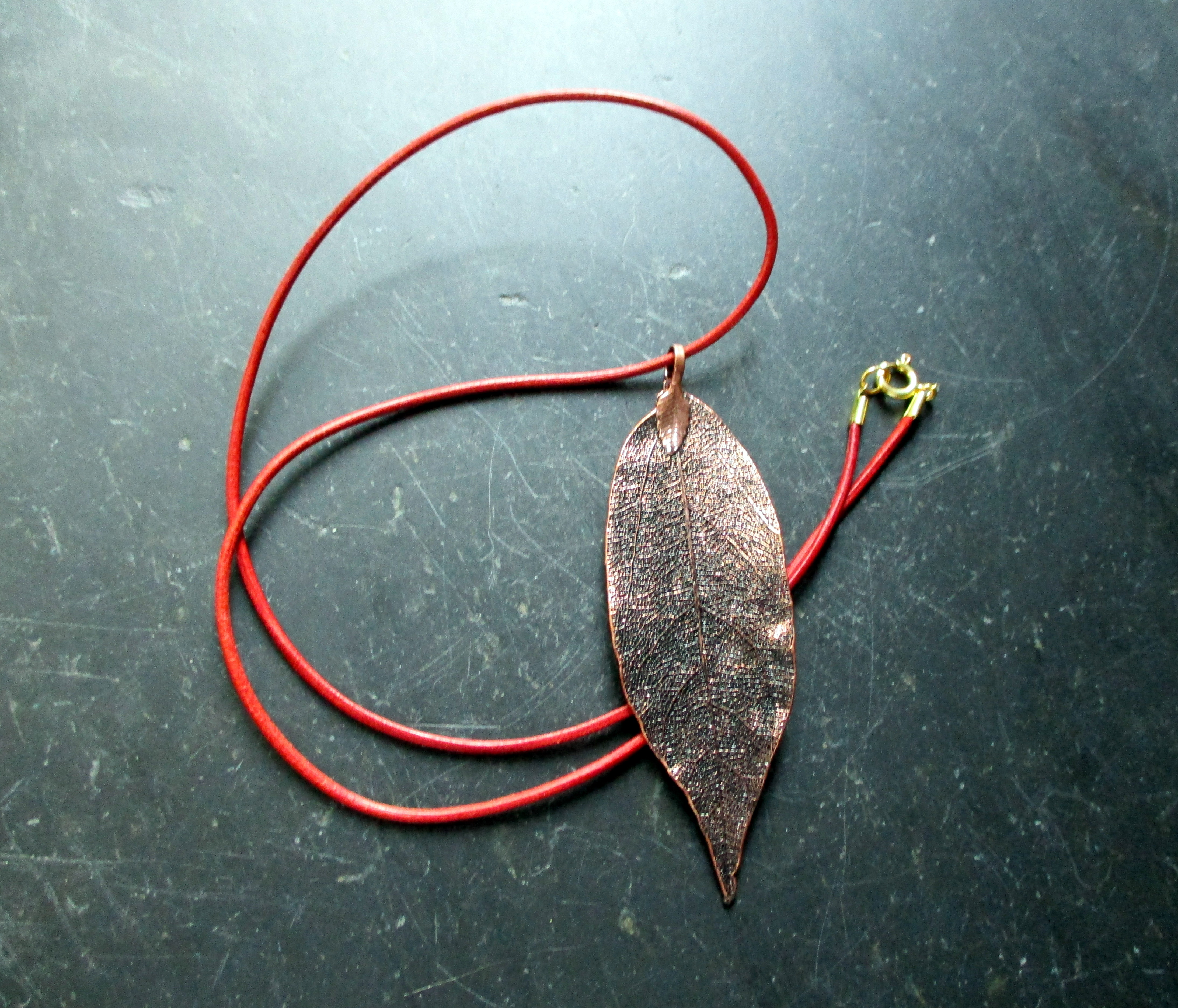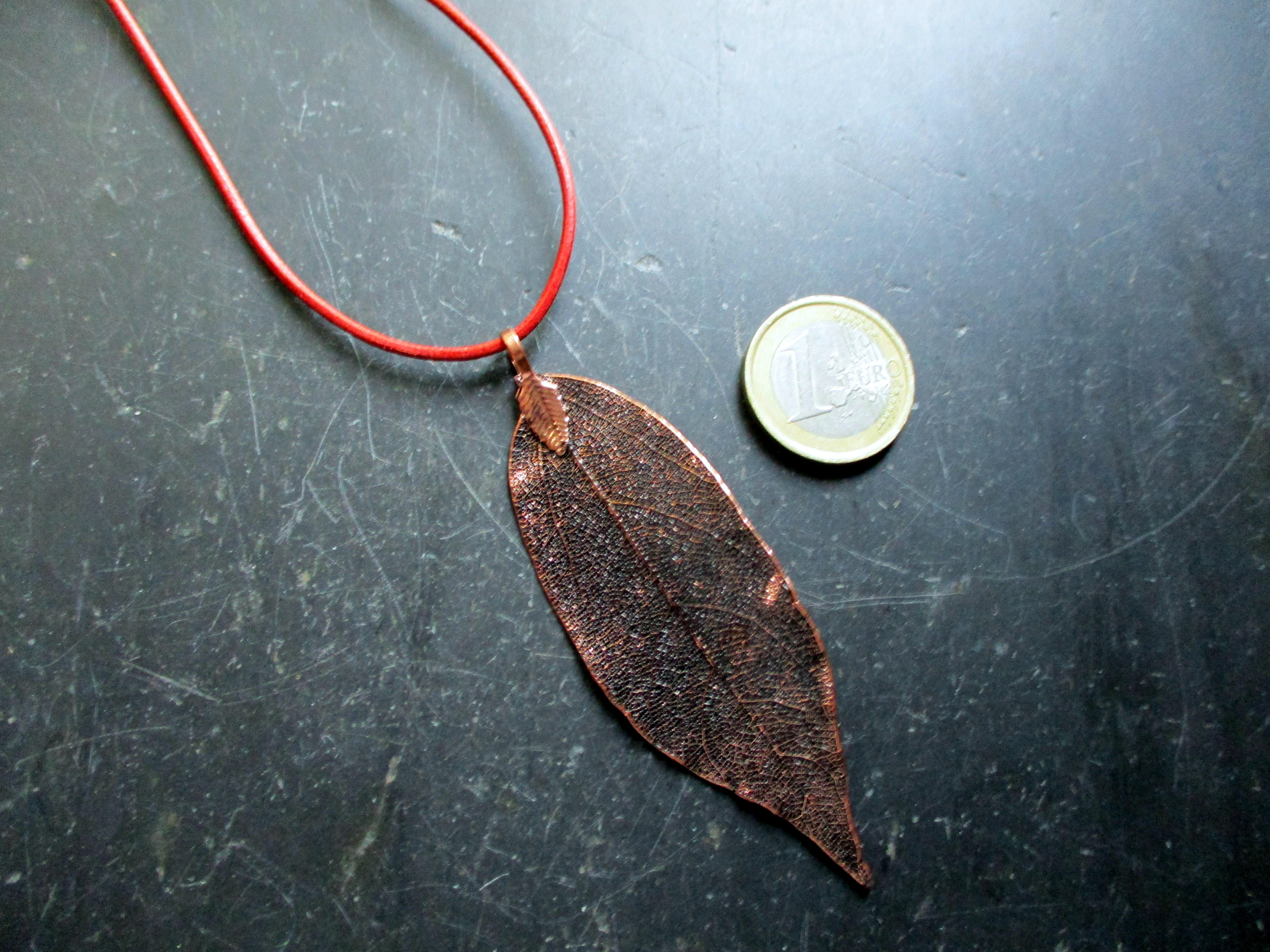 Kette, Anhänger, Blatt, echt, Lederband, Blatt, kupferfarben, Schmuck, Bodhi Baum