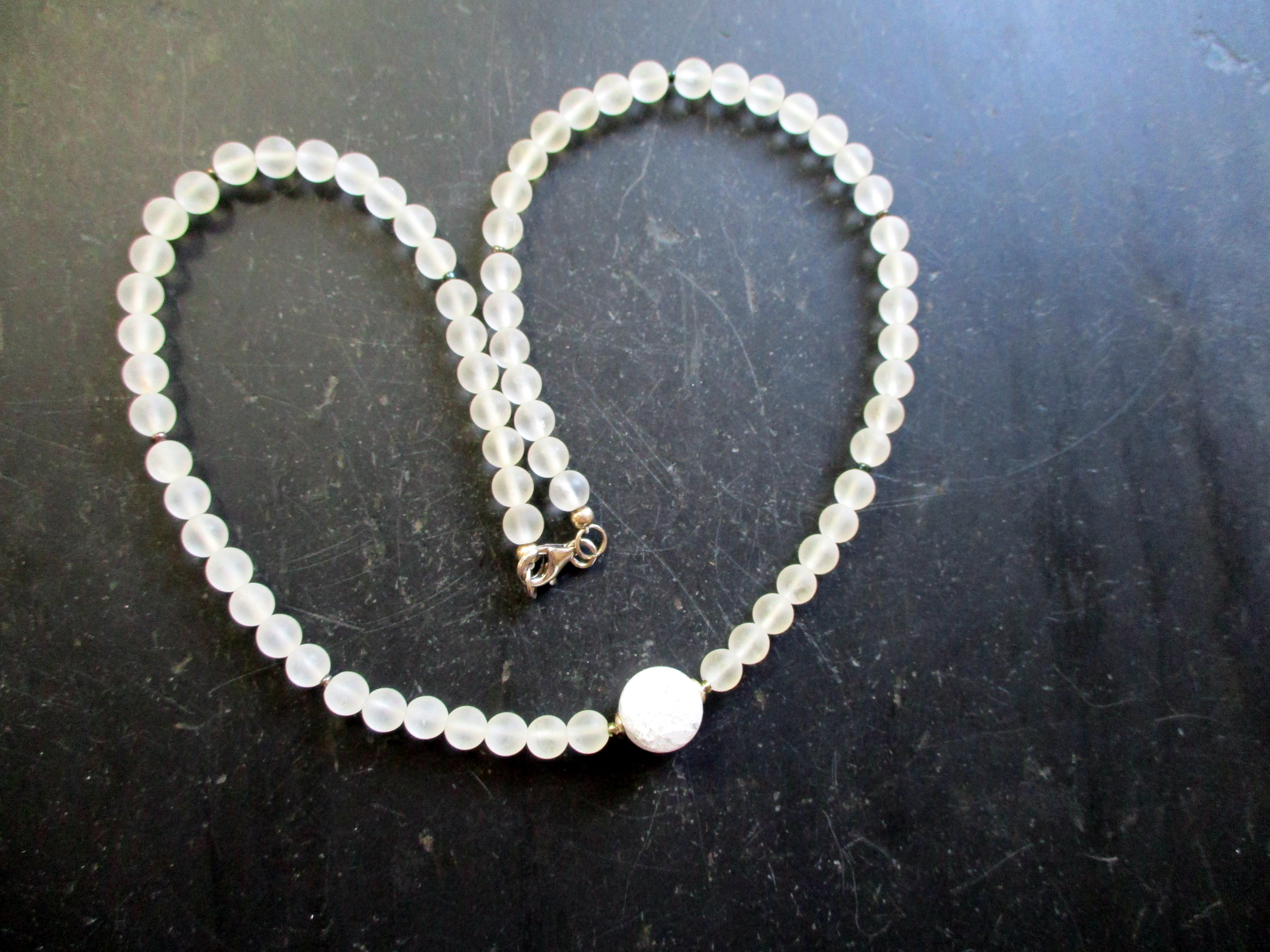 Kette, Bergkristall, matt, Kugel, gecrasht, weiß, Sterlingsilber, Braut