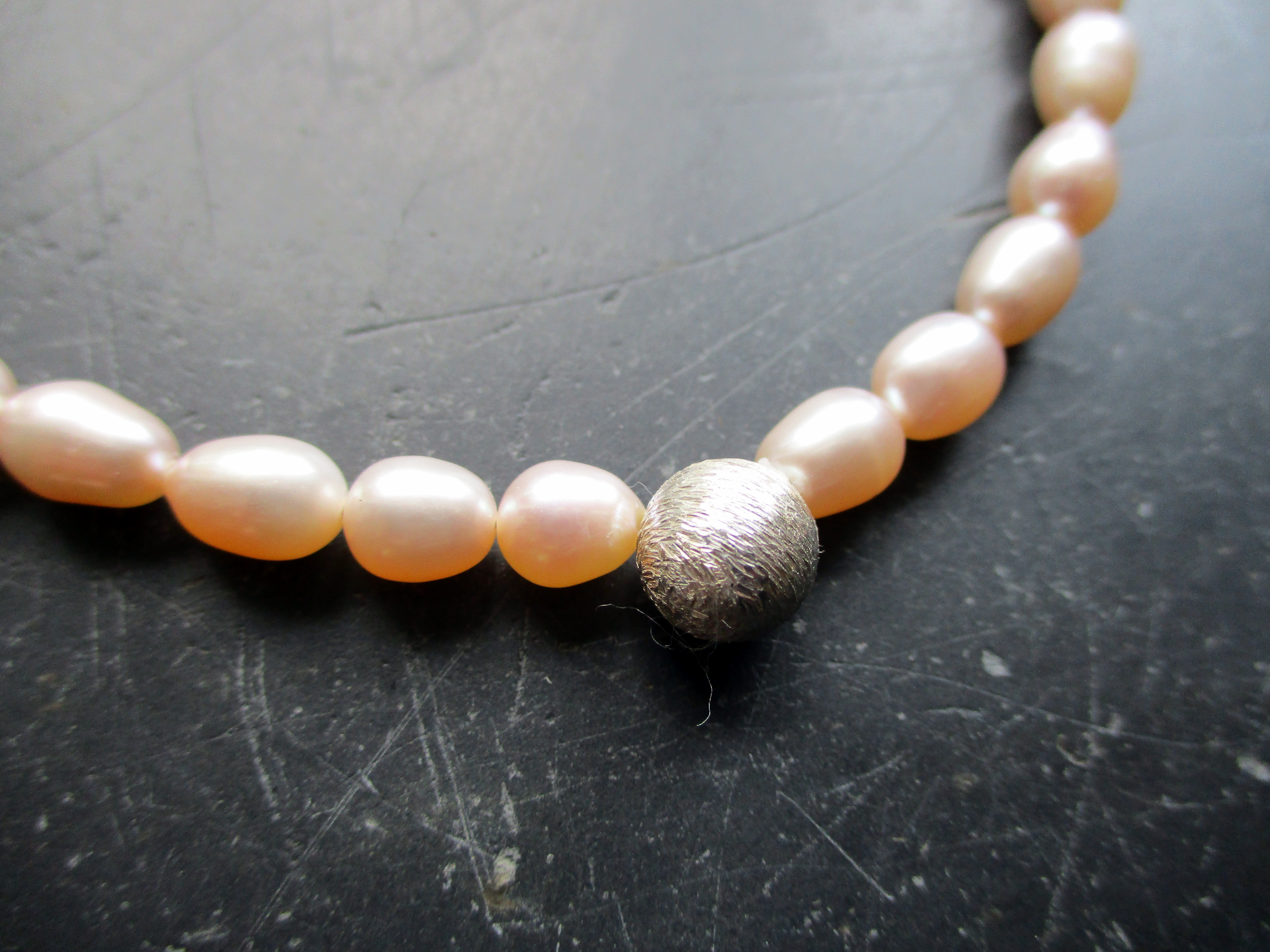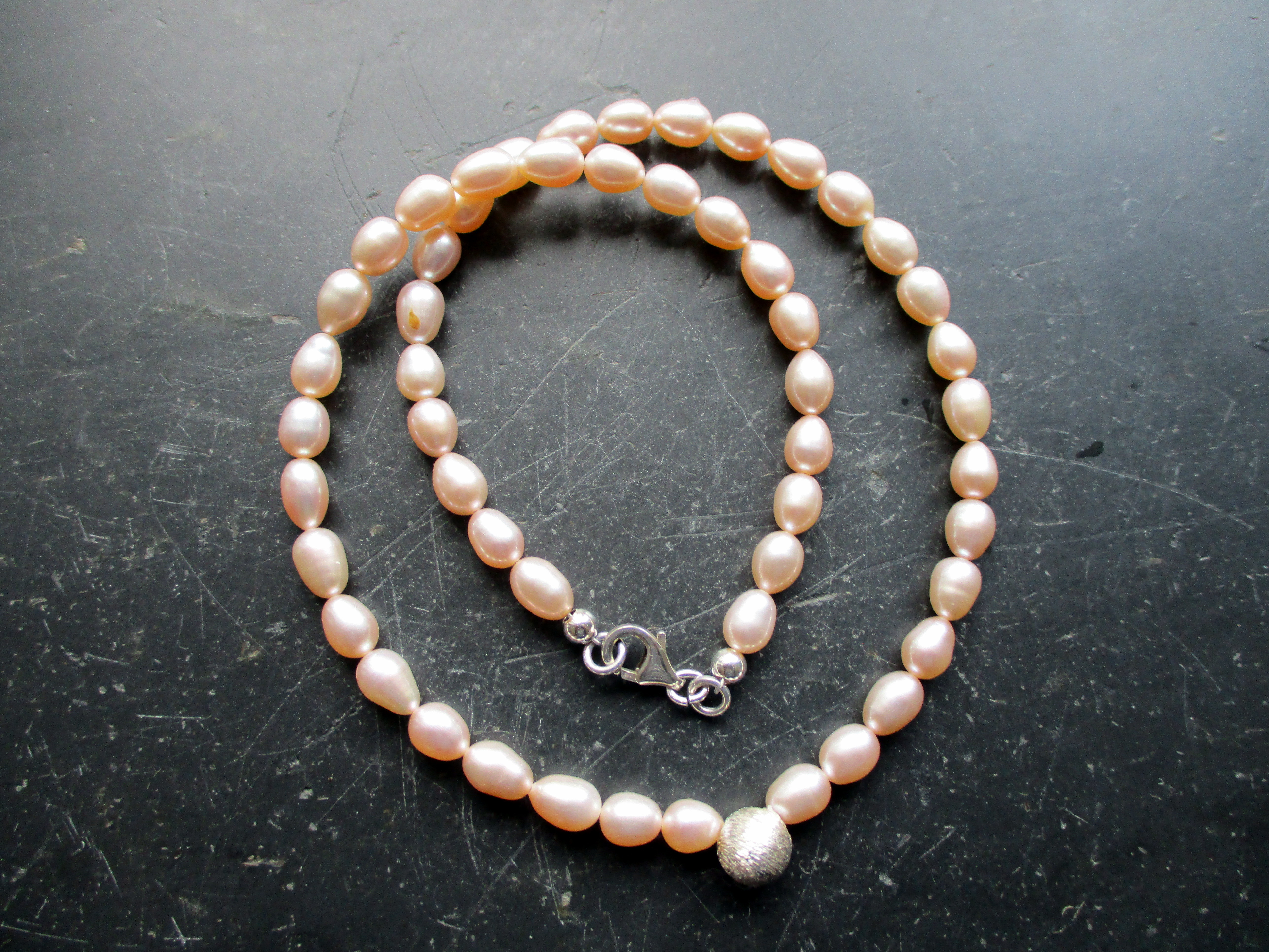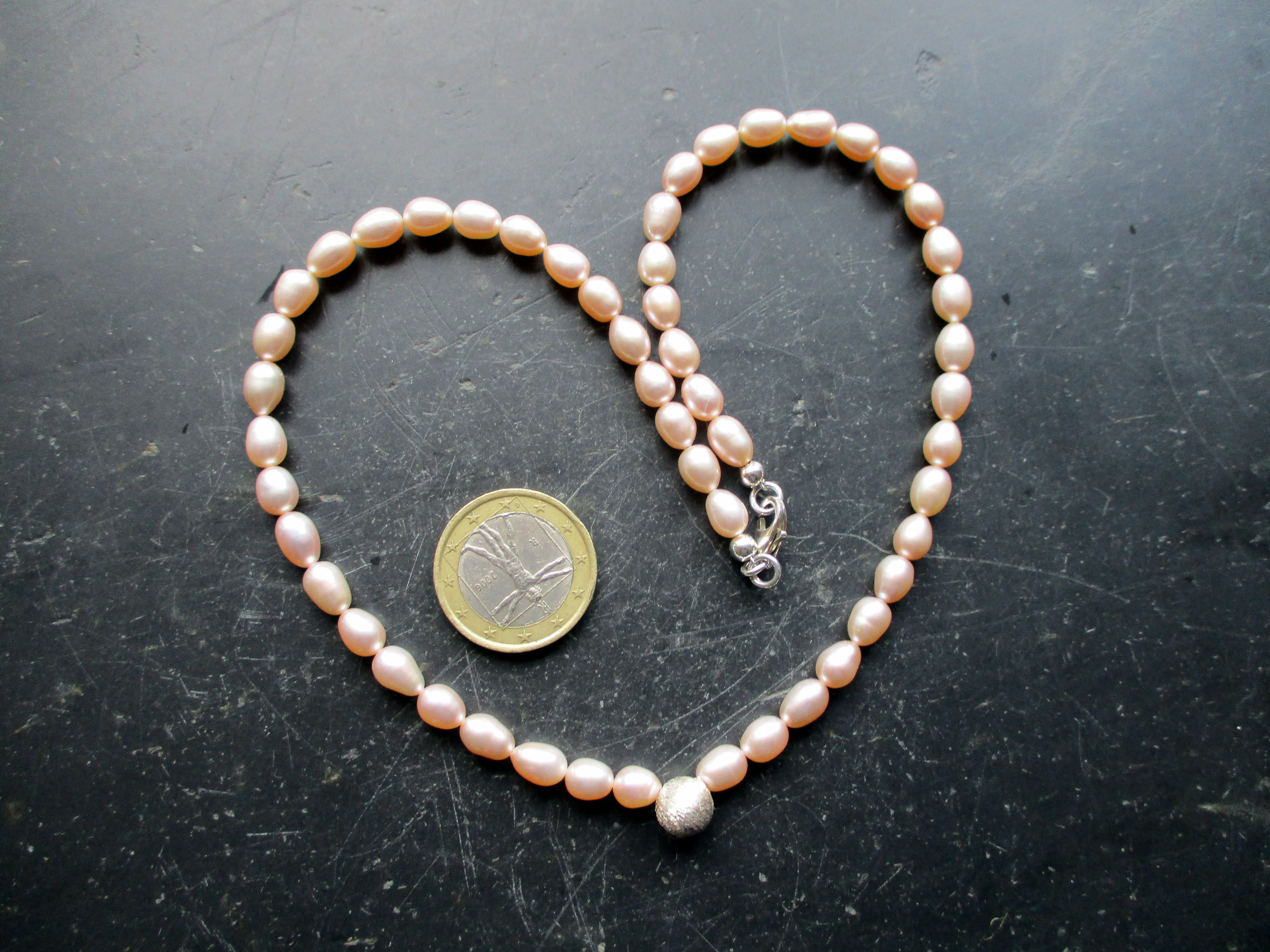 diese zarte Kette aus hellrosa Süsswasserperlen