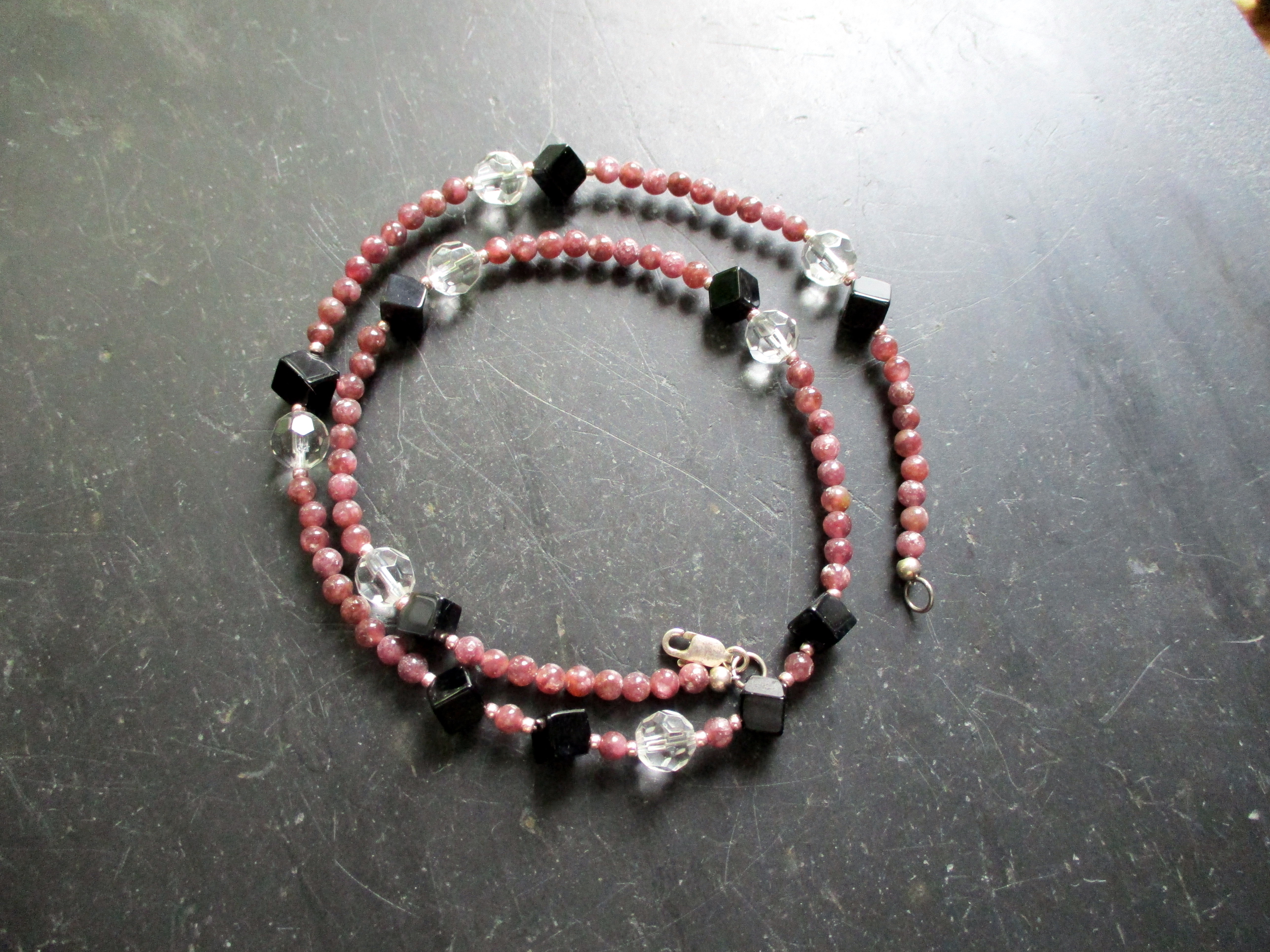 Eingearbeitet sind Würfel aus Onyx, kleine Silberperlen und
