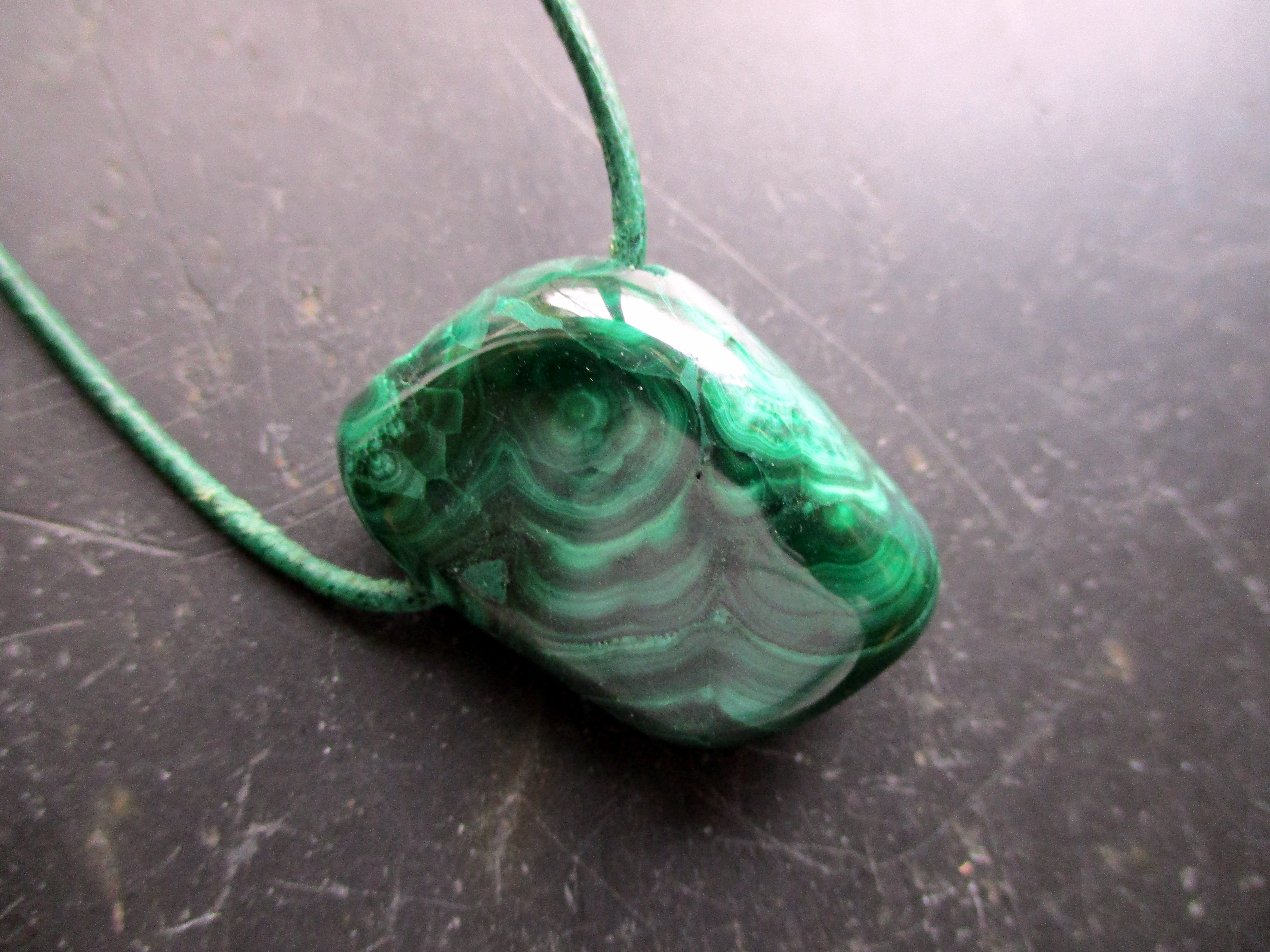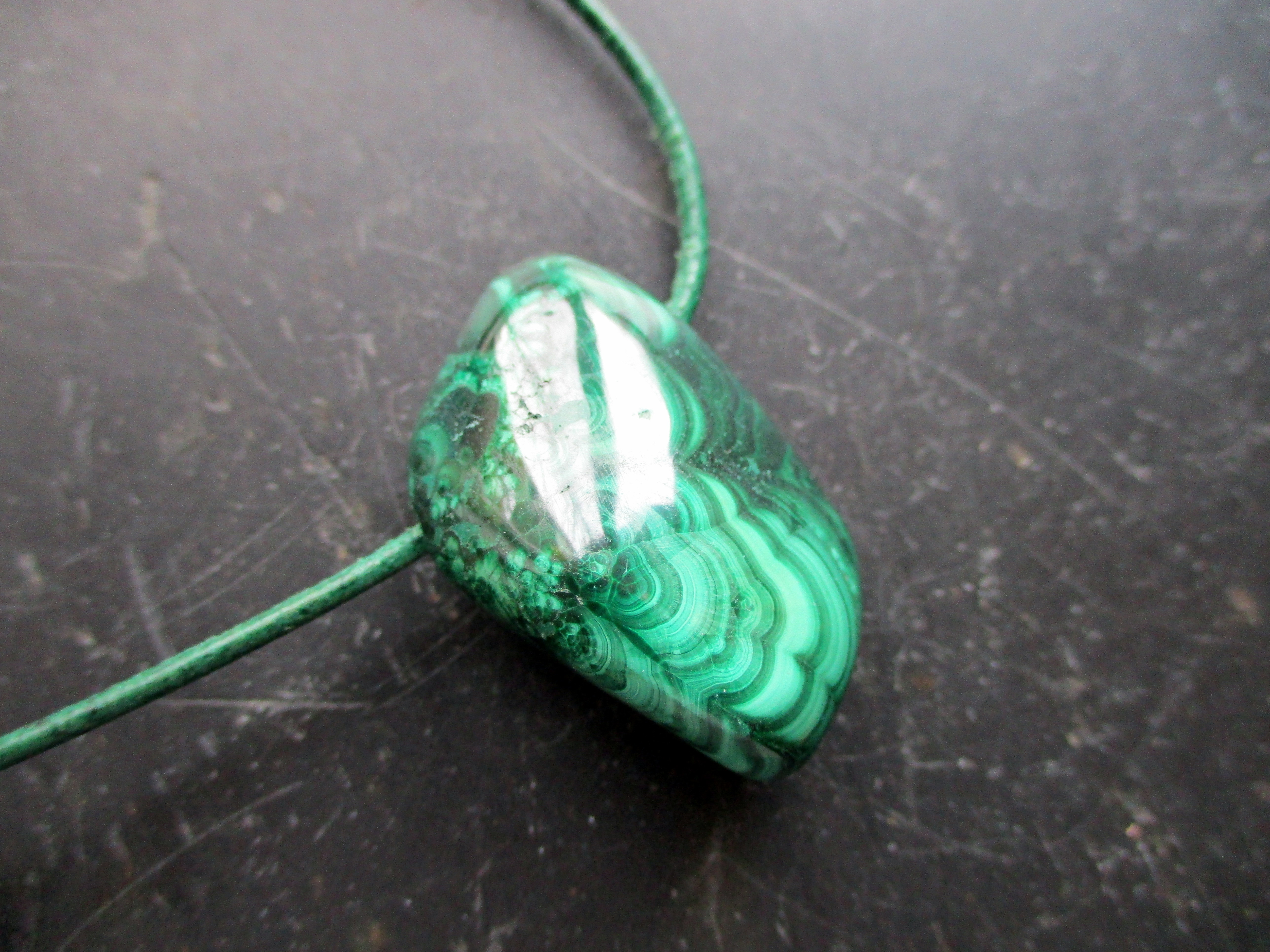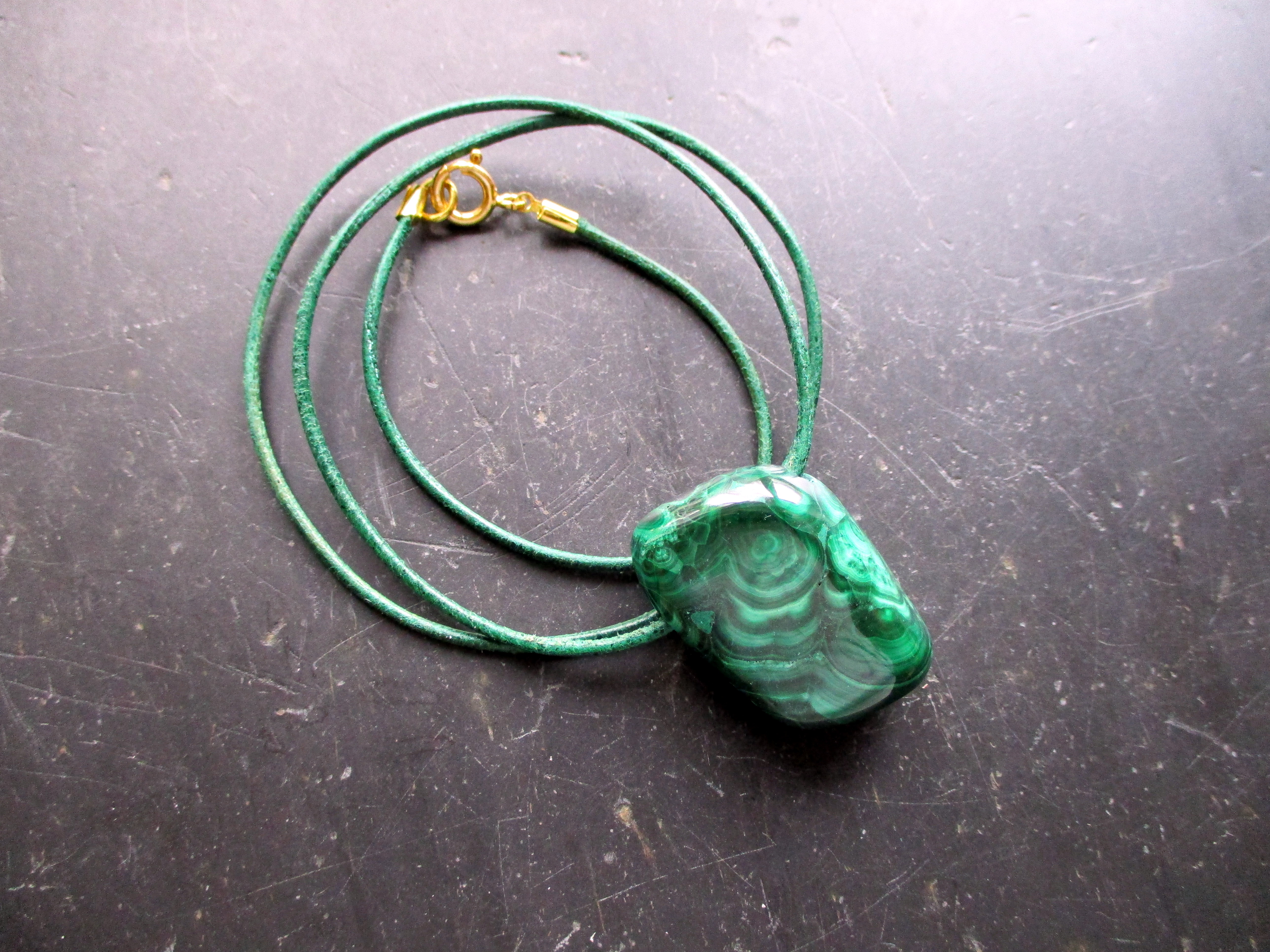Kette, Anhänger, Lederband, Tropfen, Malachit, grün, Silber, Unisex