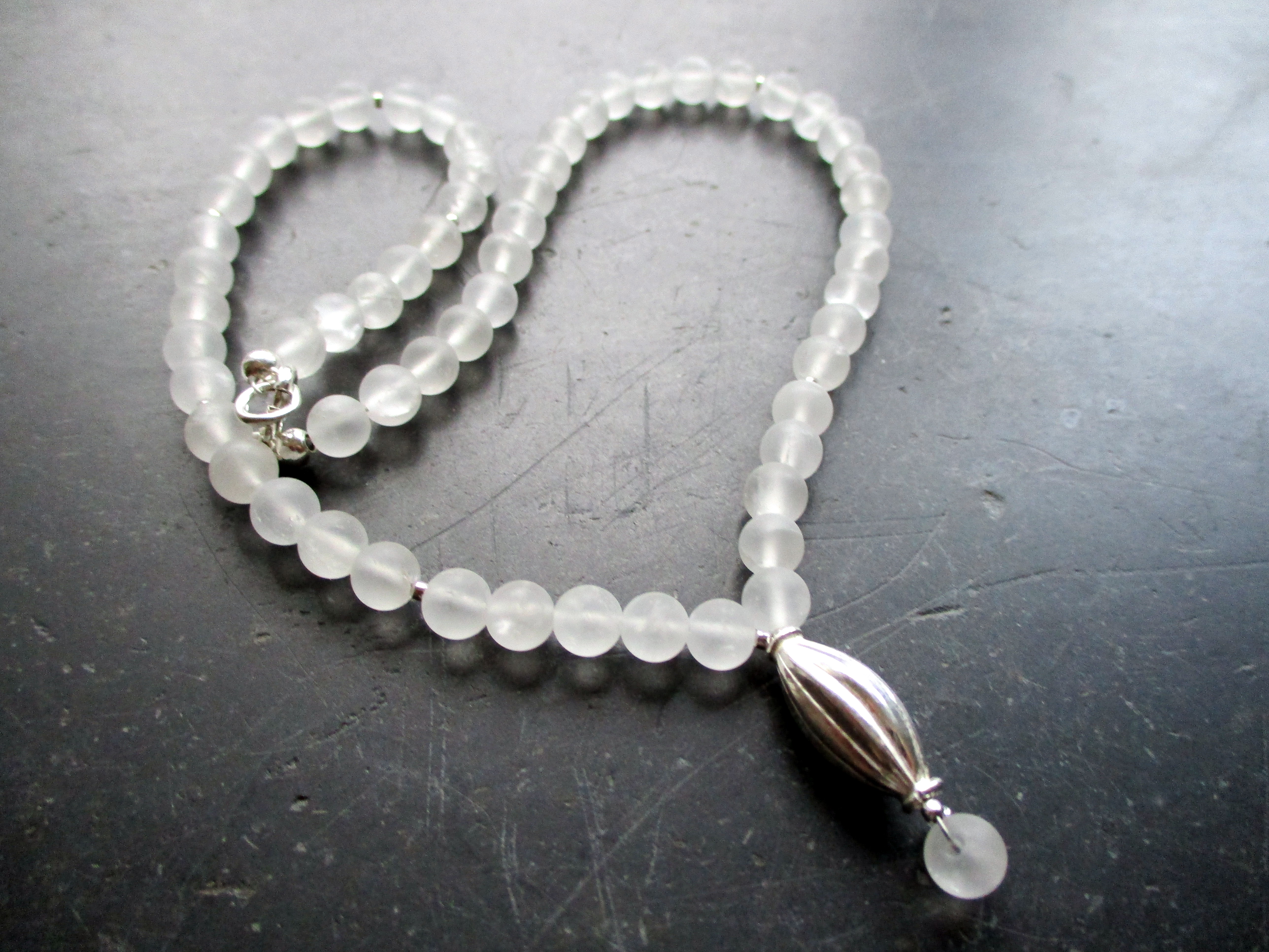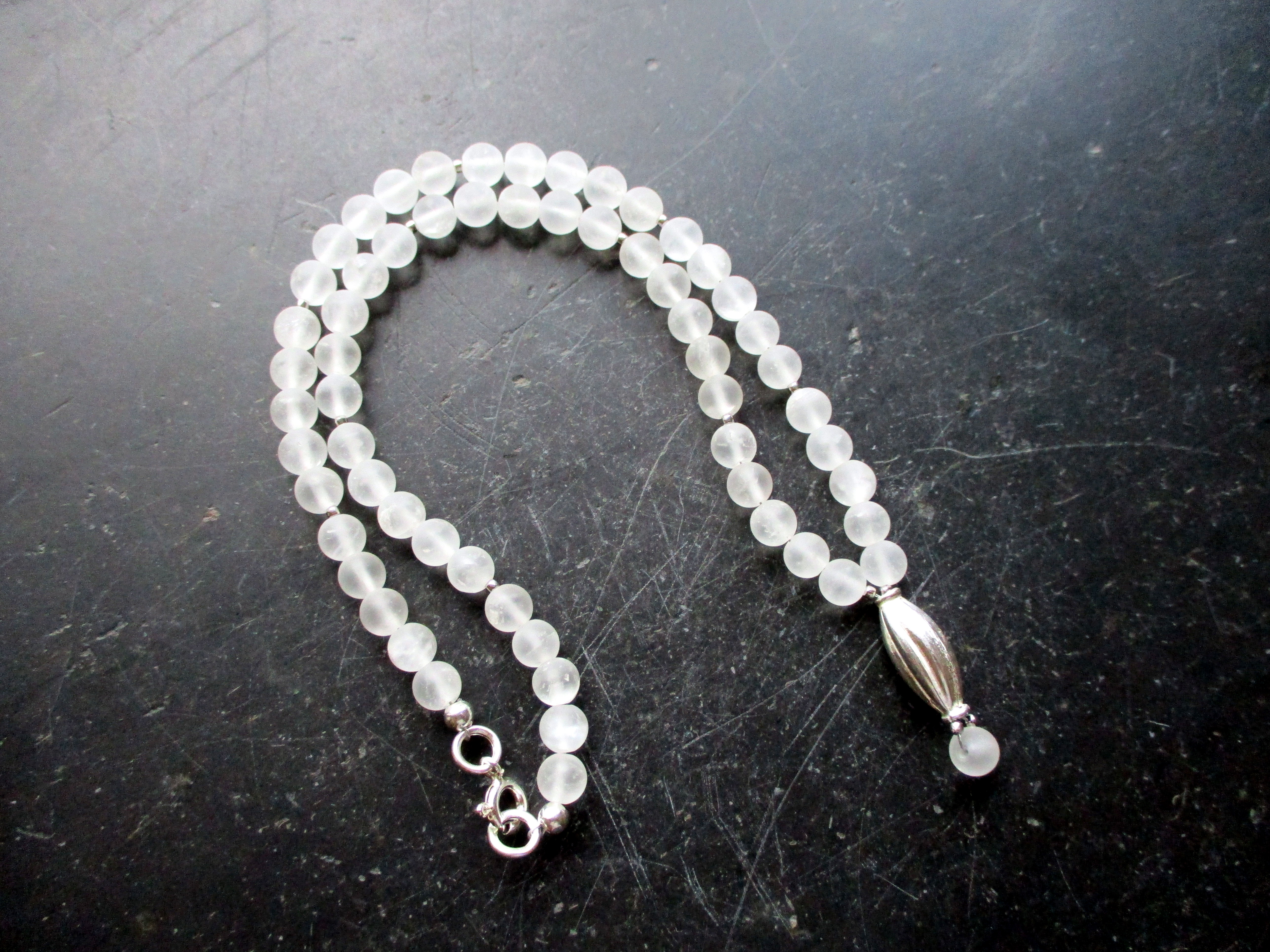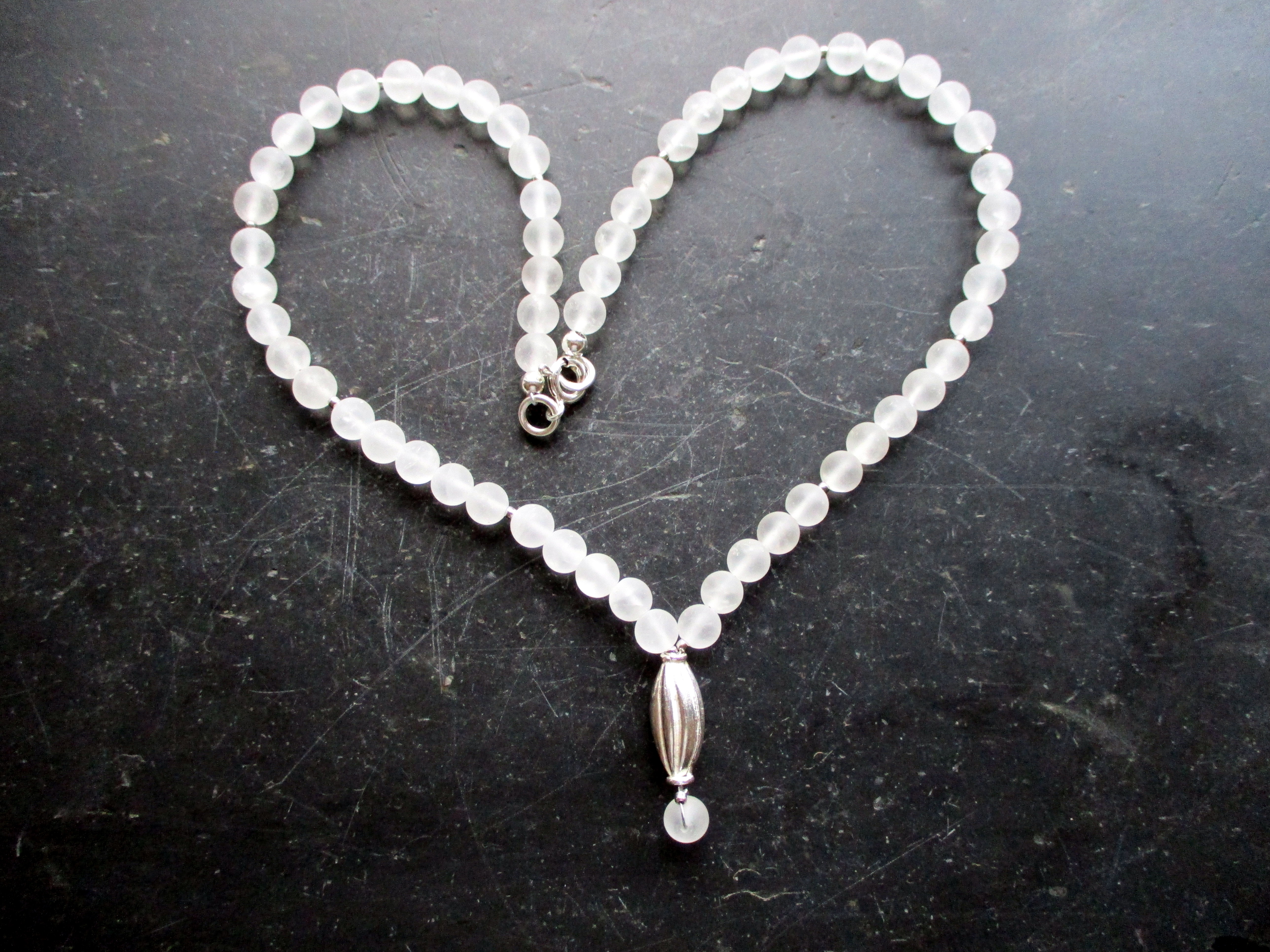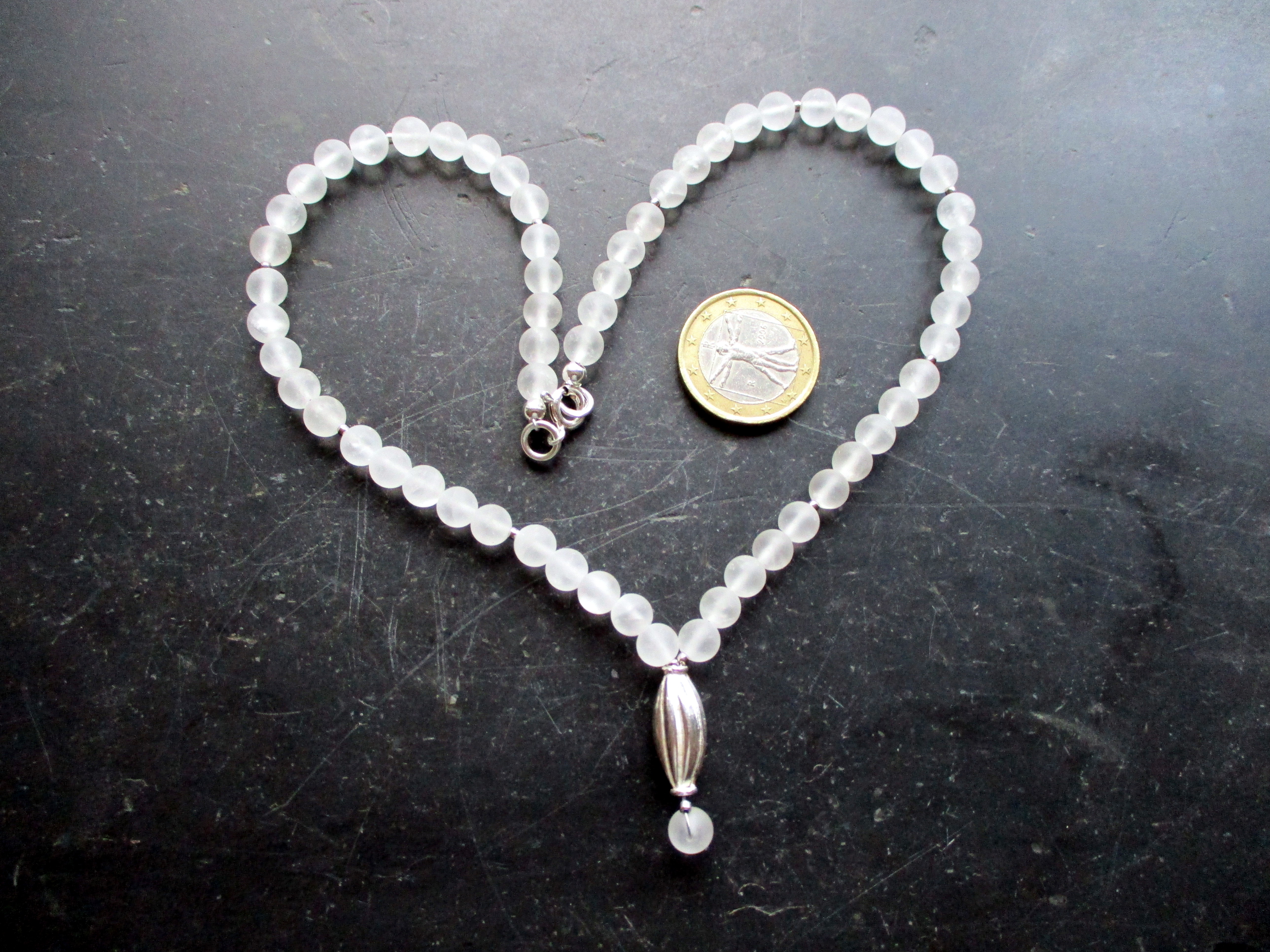 Kette, weiß, Braut, Bergkristall, matt, Silbertube, Hochzeit
