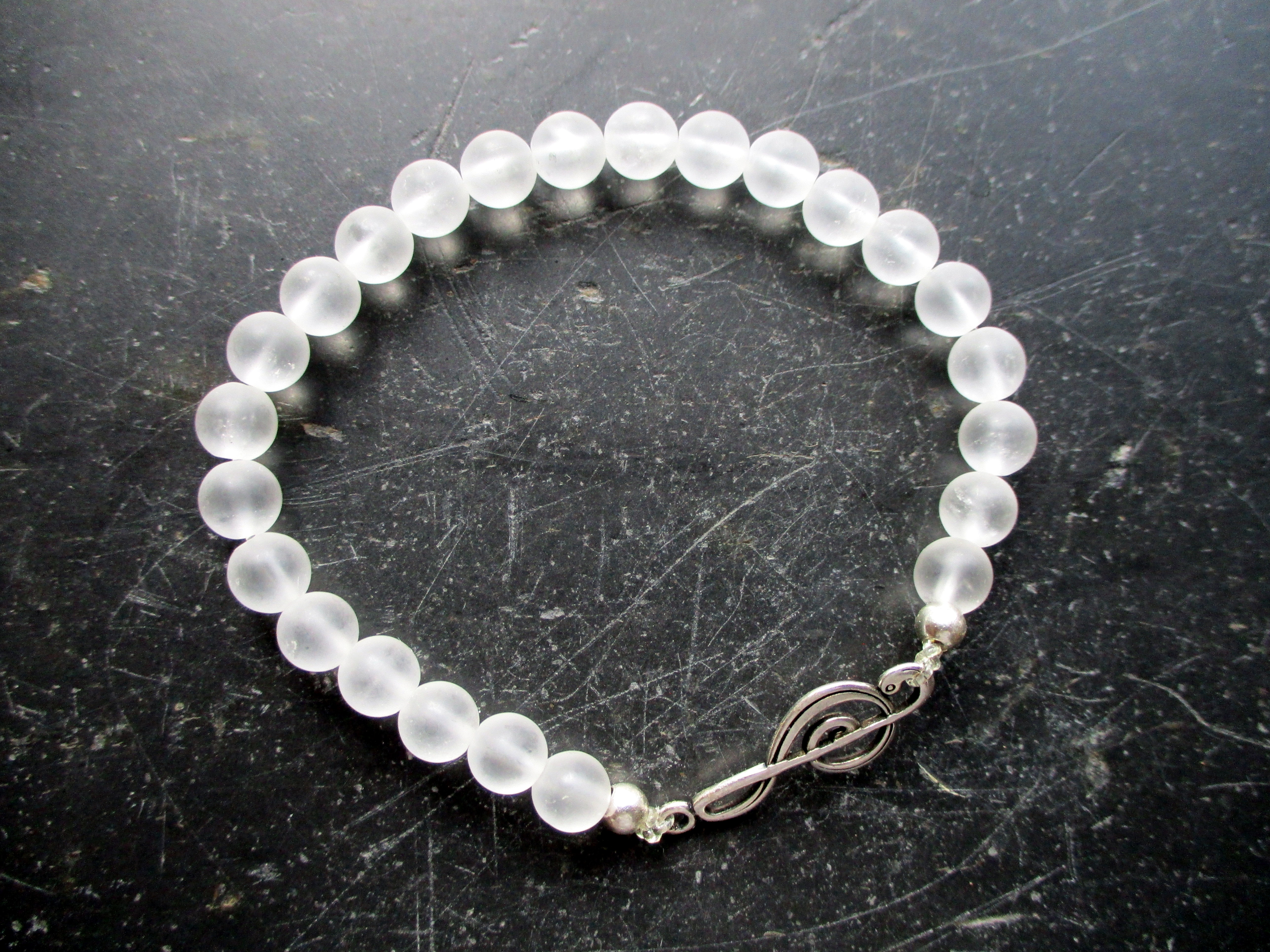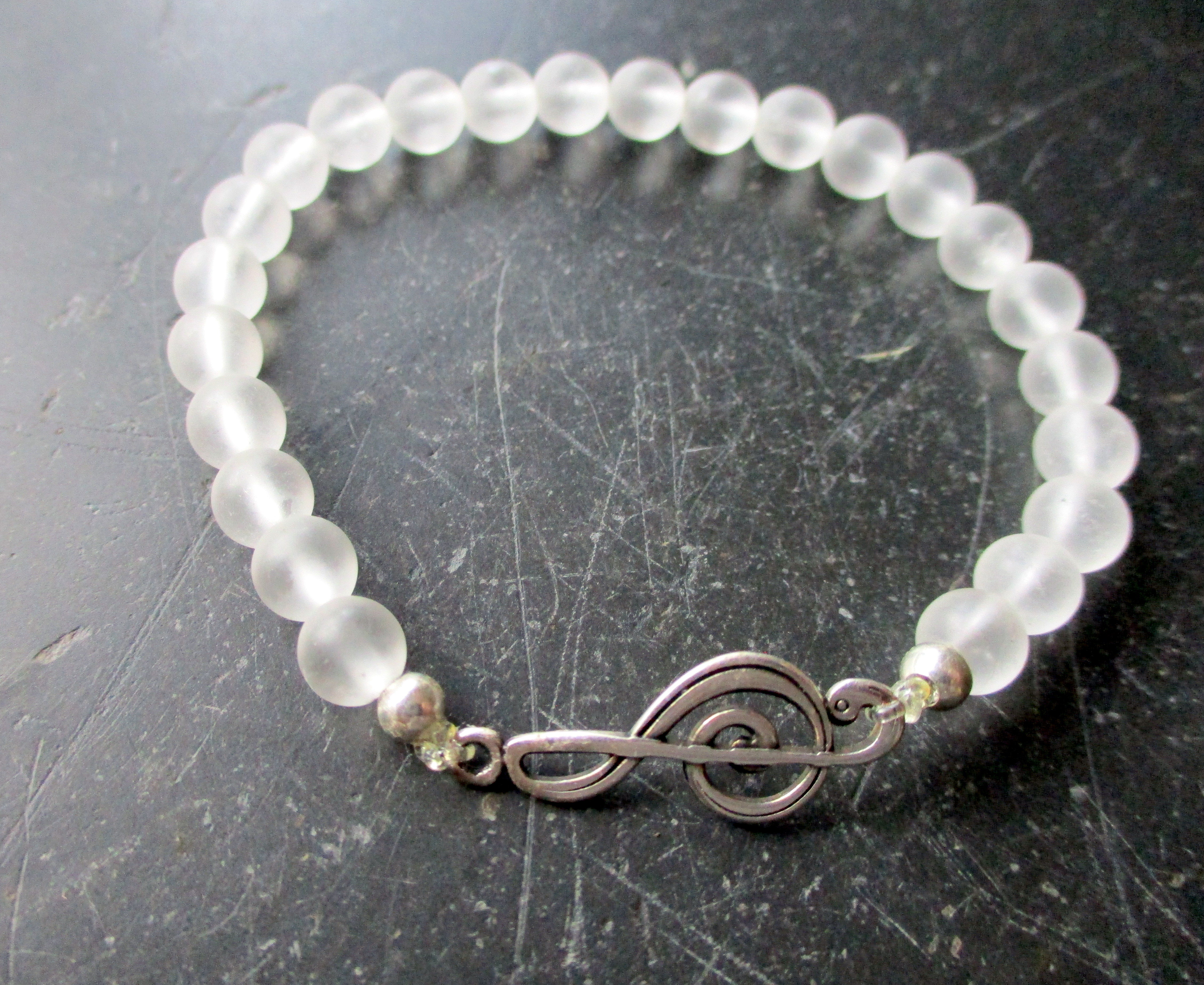Armband, Bergkristall, matt, Notenschlüssel, Schmuck, Frauen