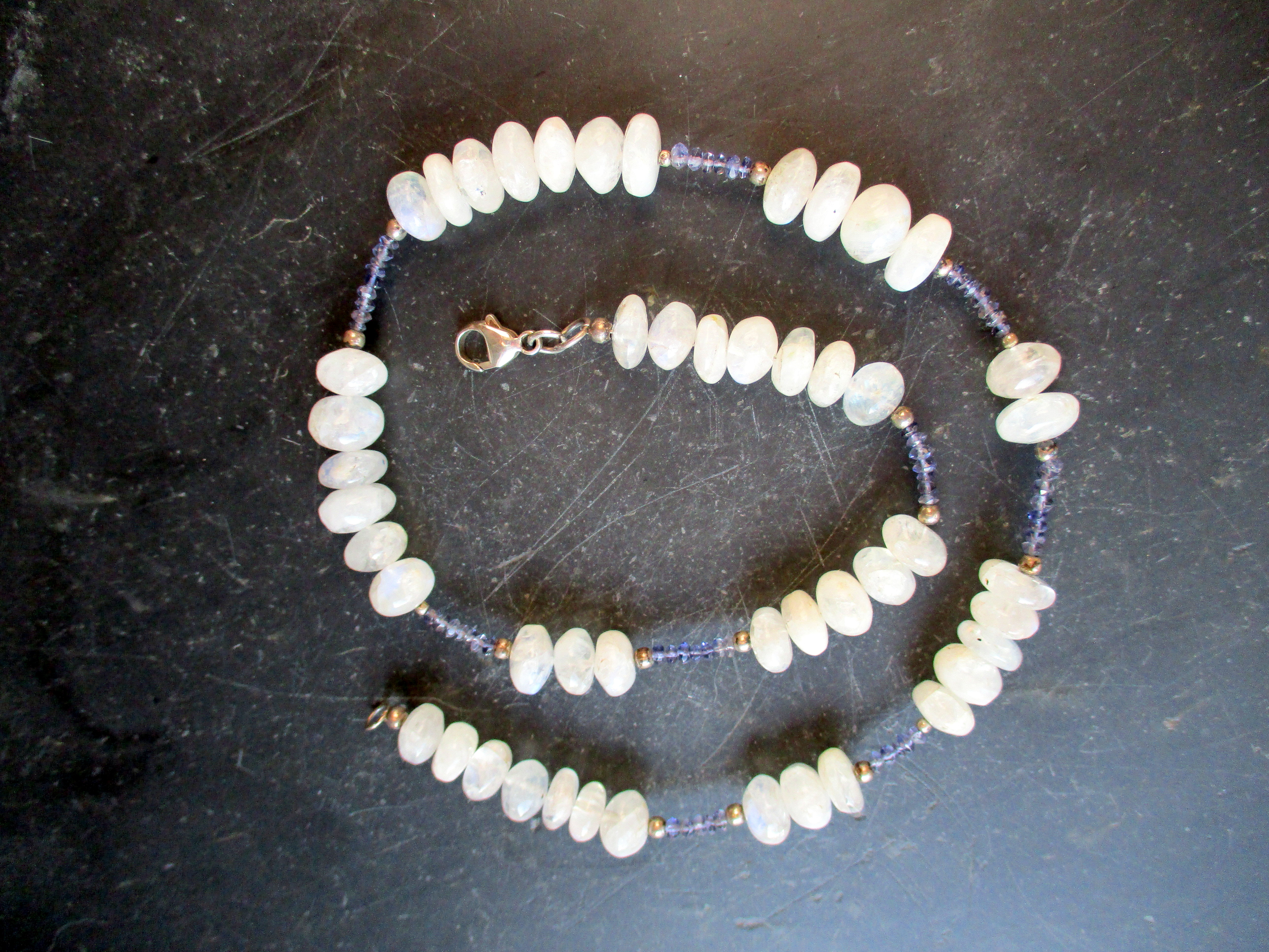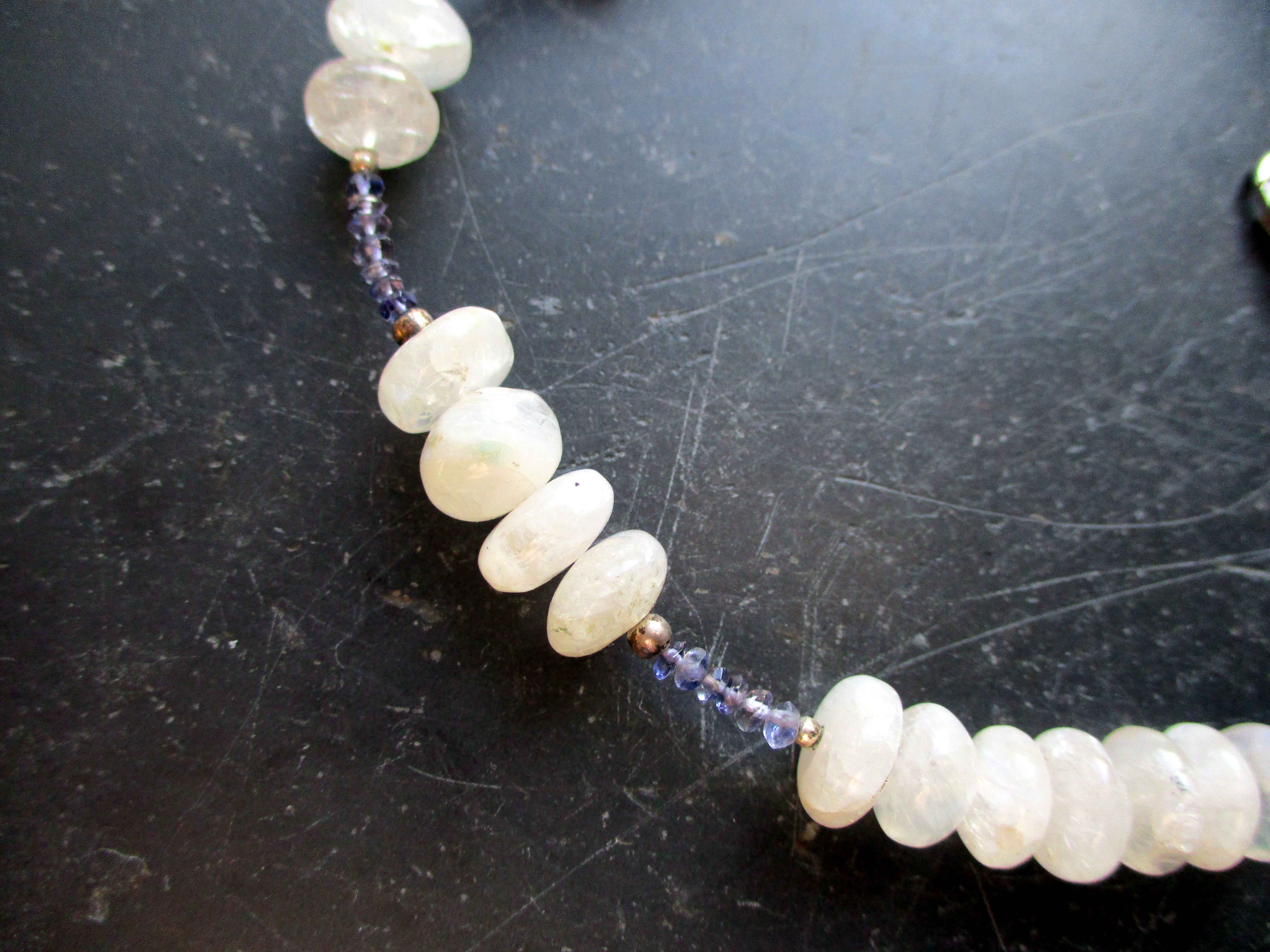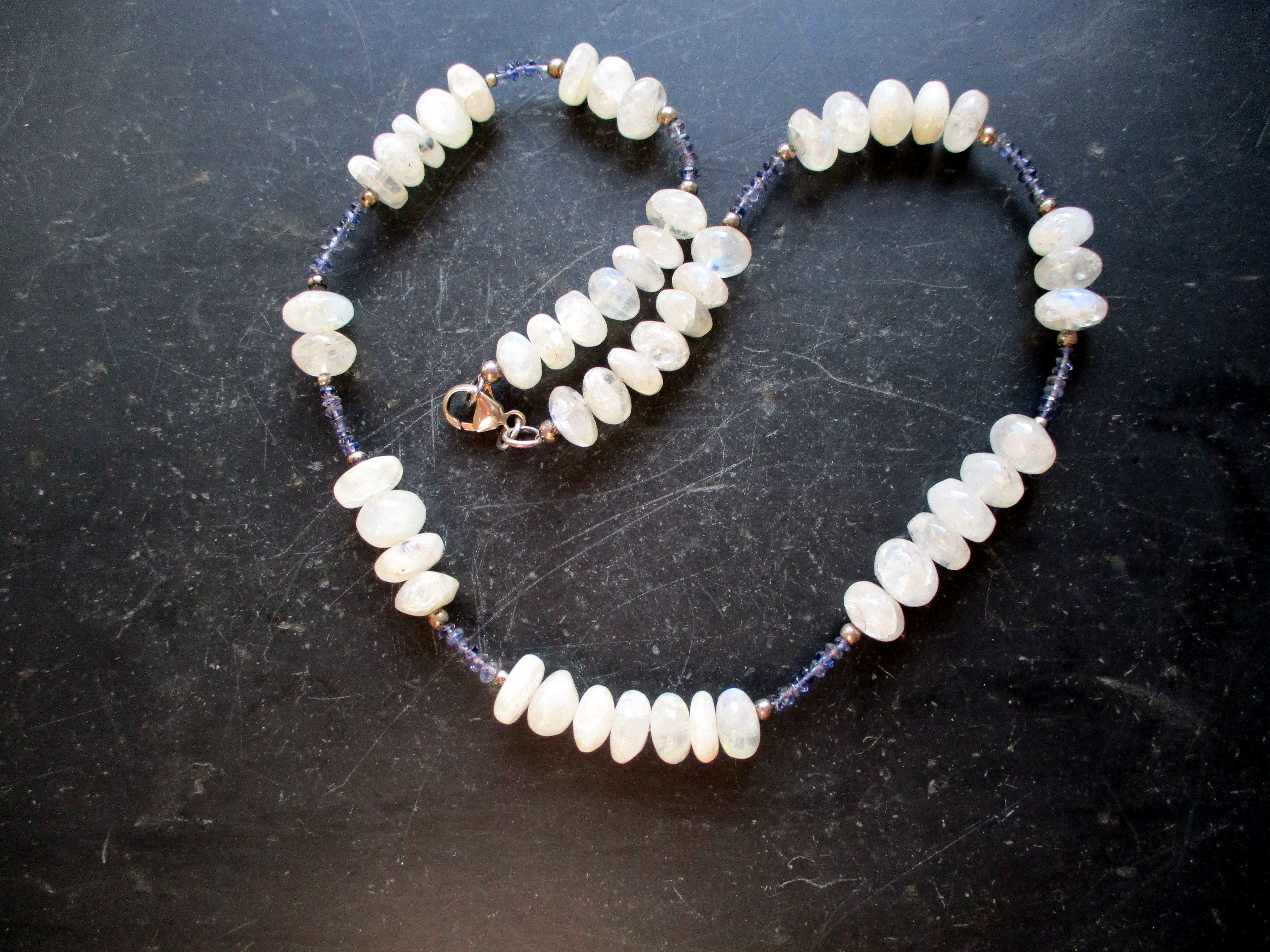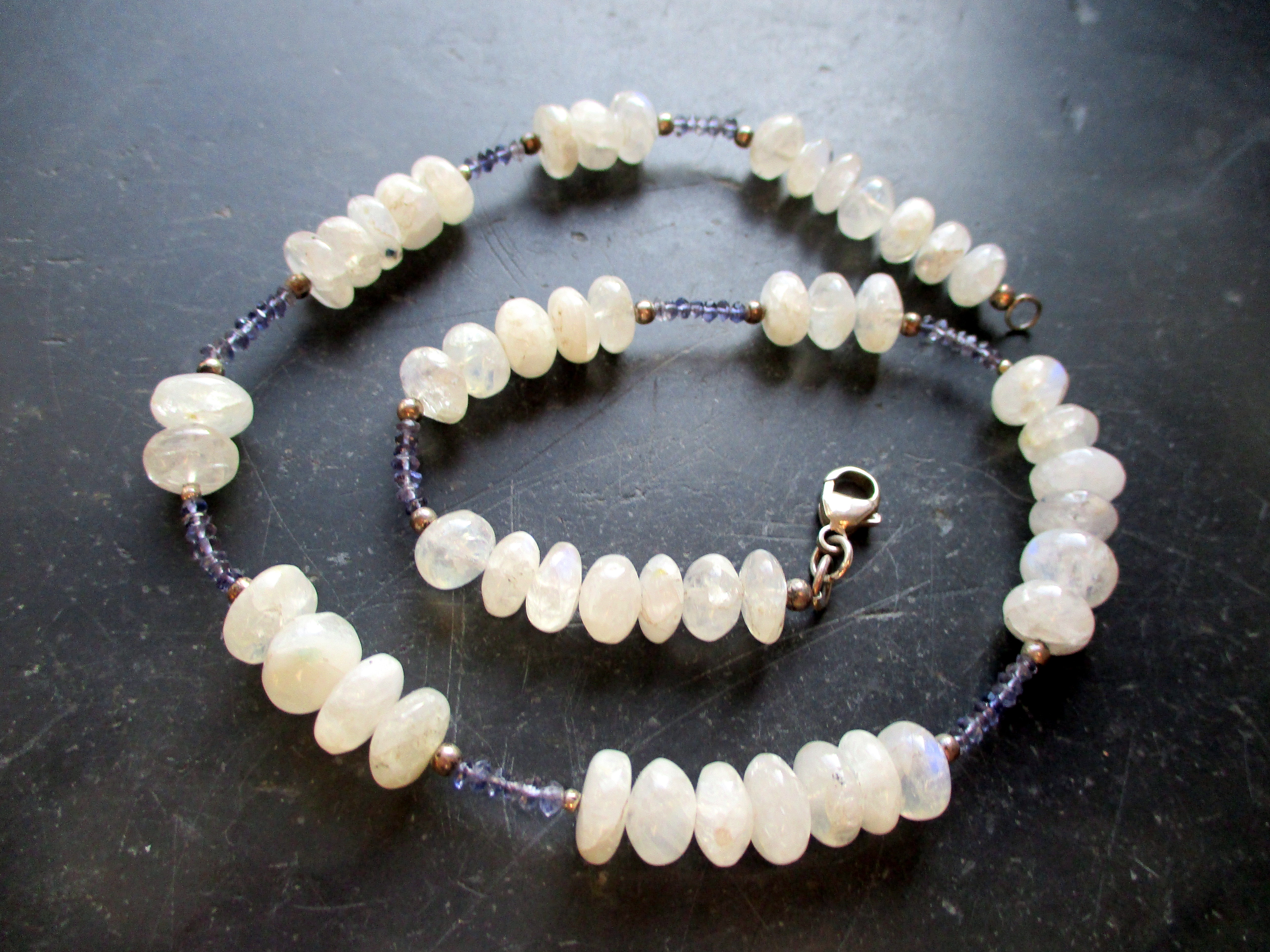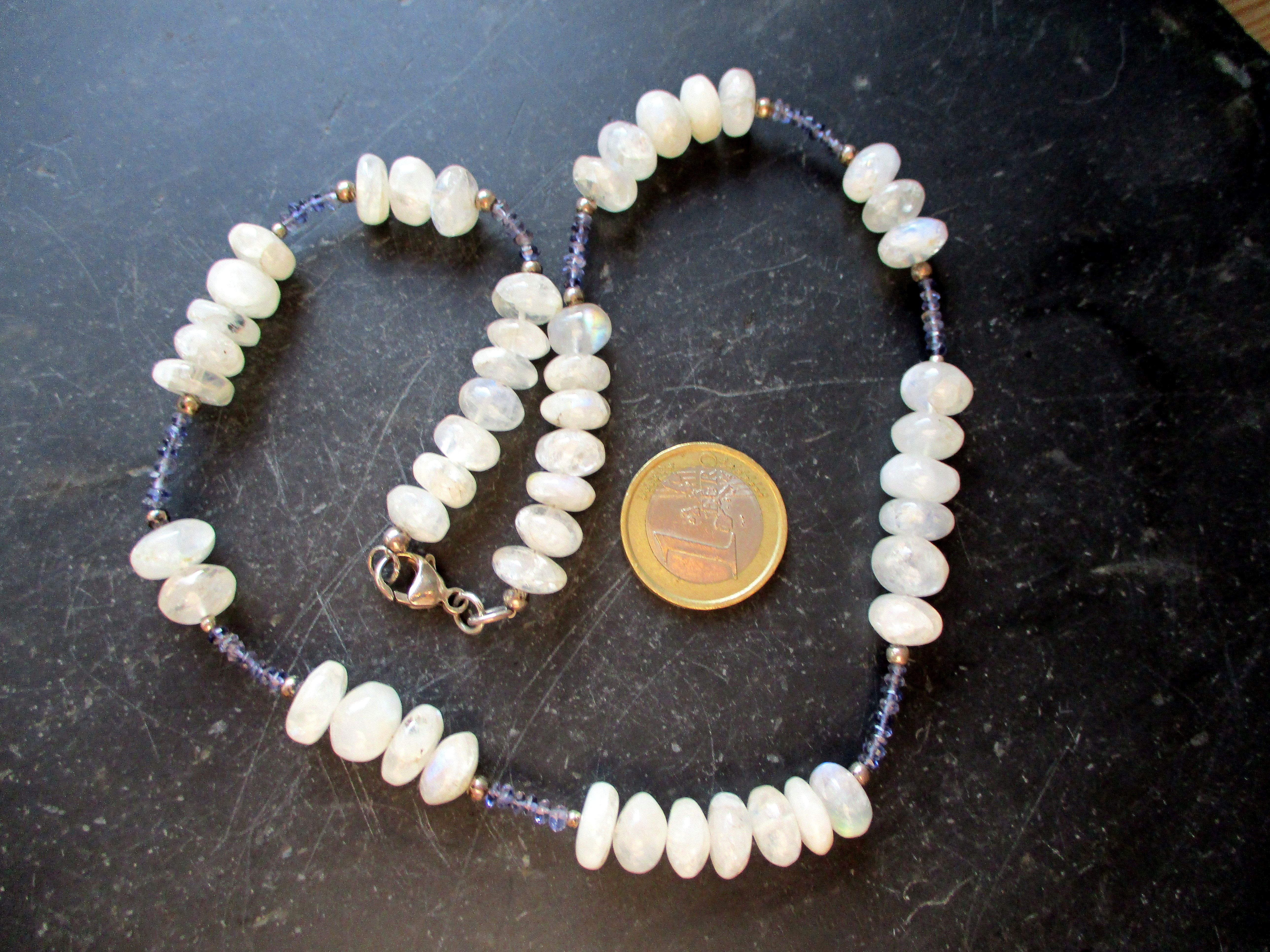 Mondsteinkette, Mondstein, Kette, Silber, Iolith, Wassersaphir, Collier, weiß, blau