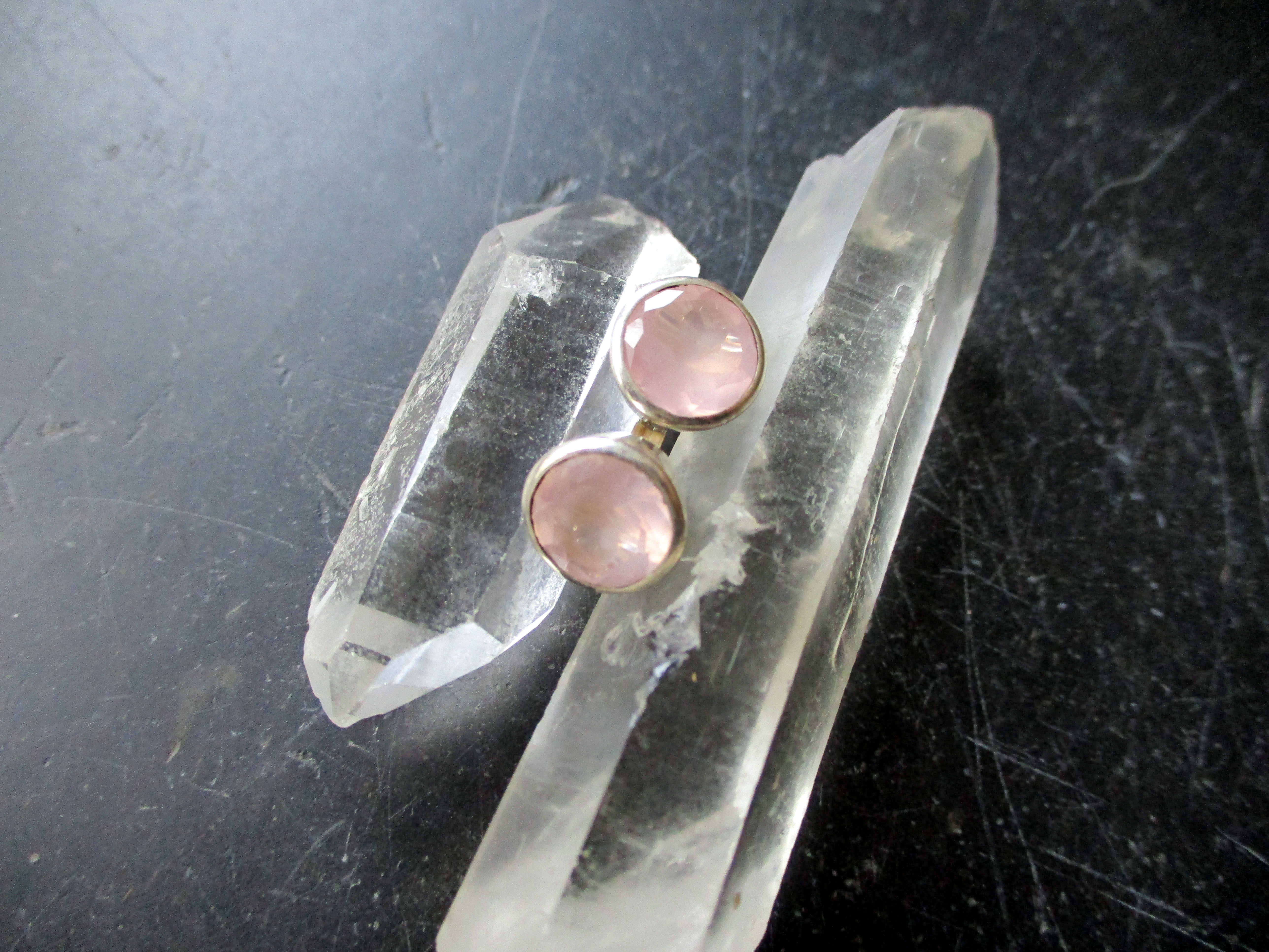 Hellrosa und schön facettiert ist dieser Ohrring, Ohrstecker