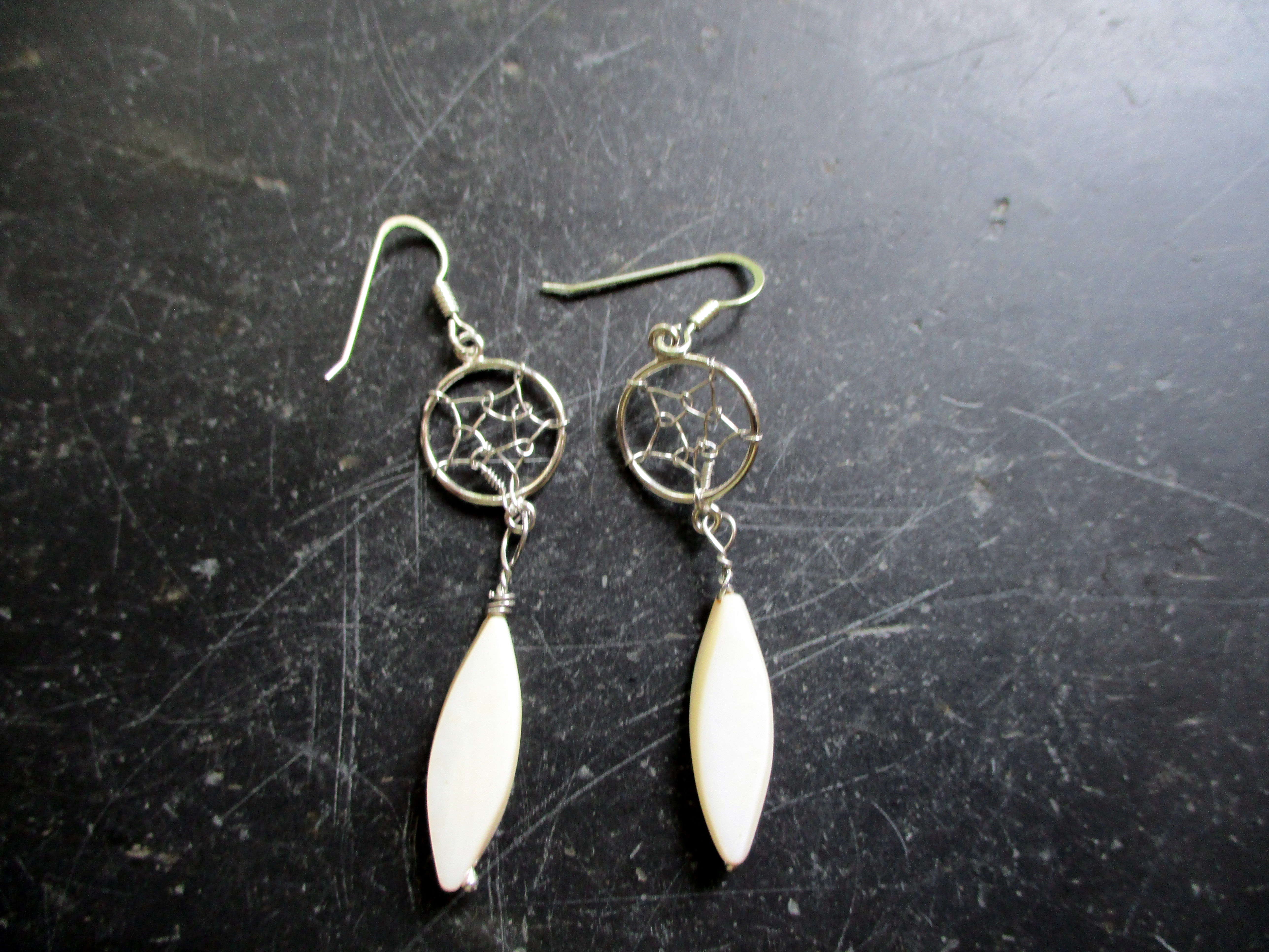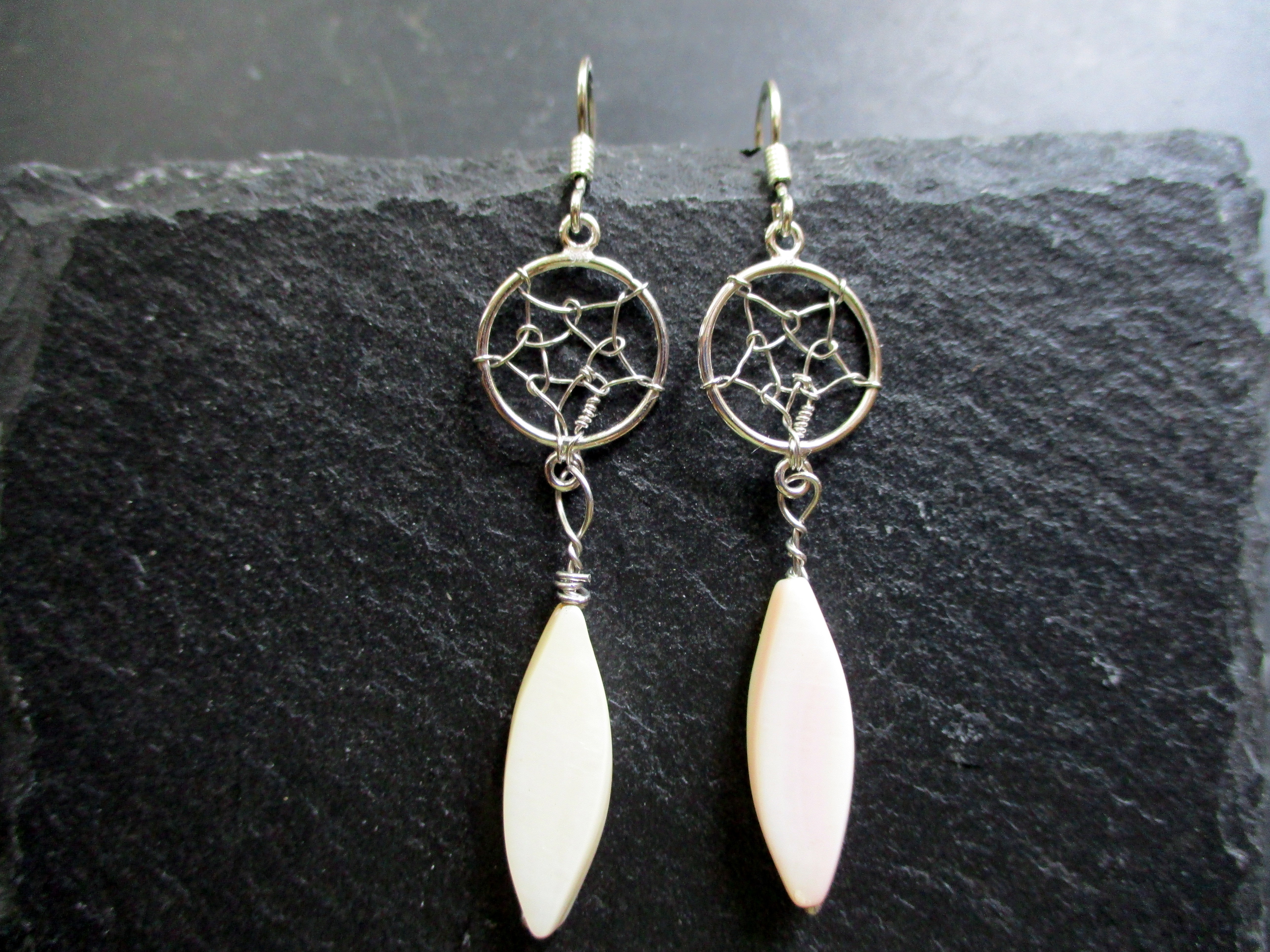 Ohrring, Hängeohrringe, Sterlingsilber, Traumfänger, Perlmutt, Schmuck, Frauen