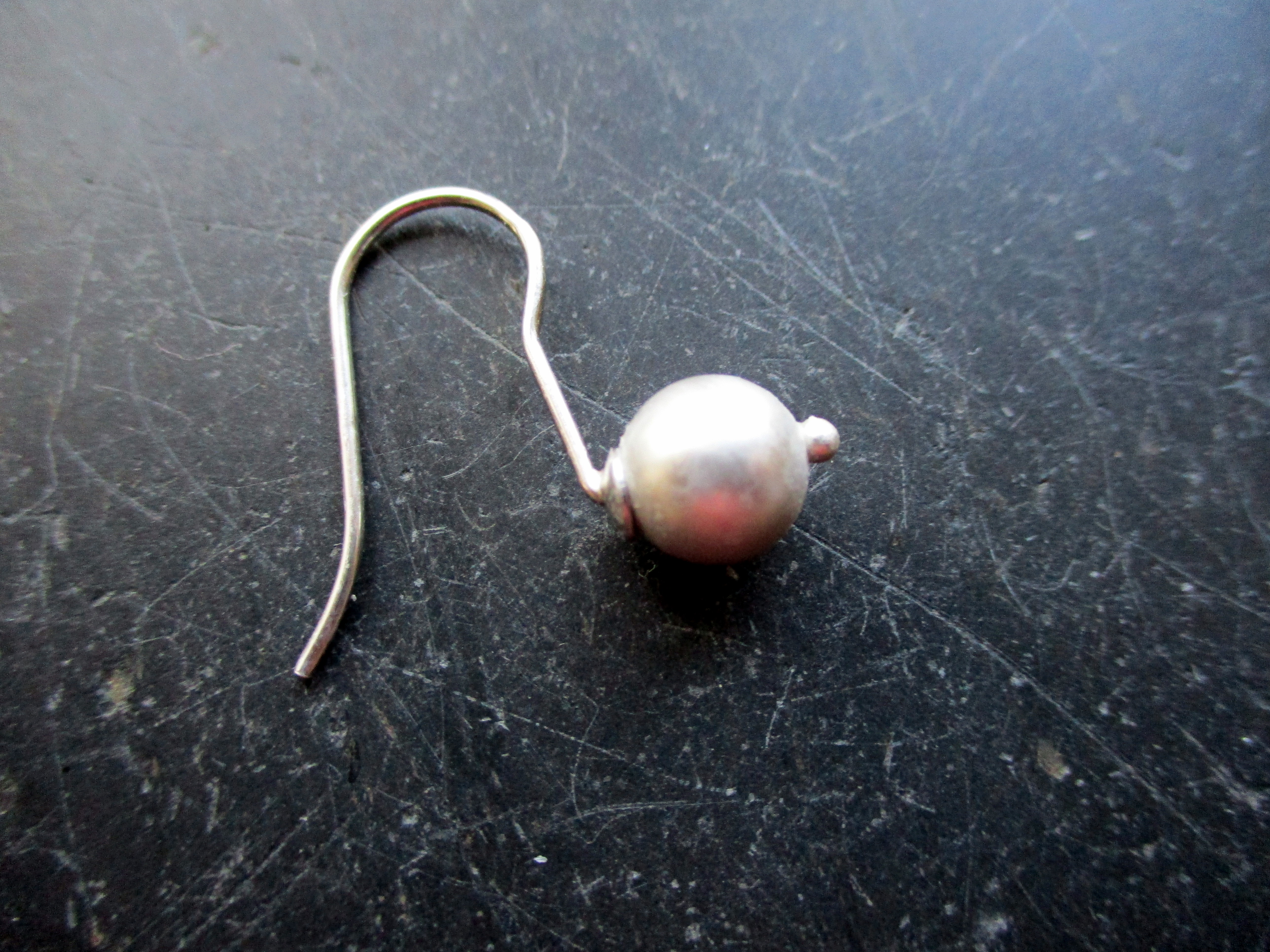 Am Ohrring hängt eine kleine, schimmernde Kugel