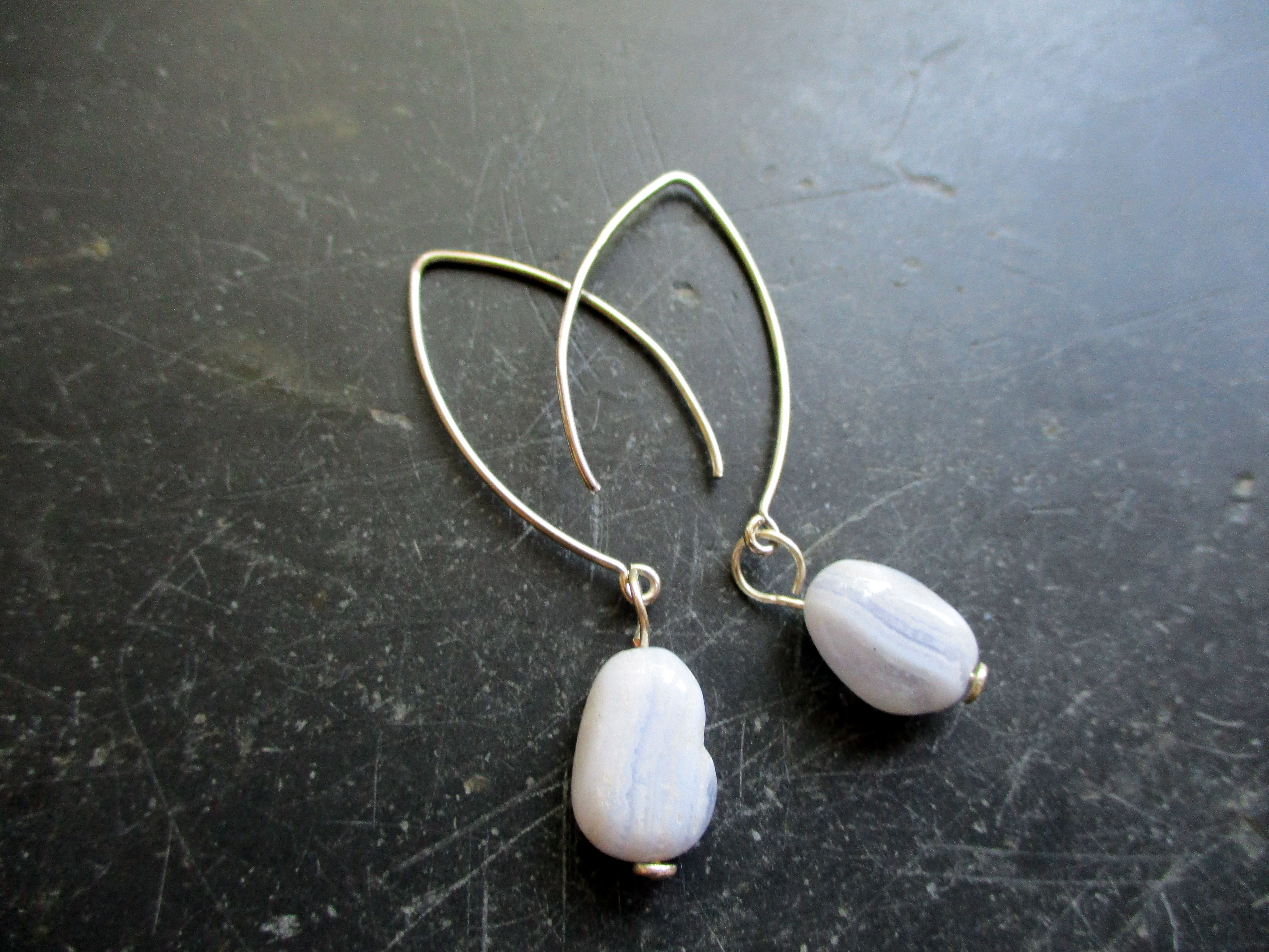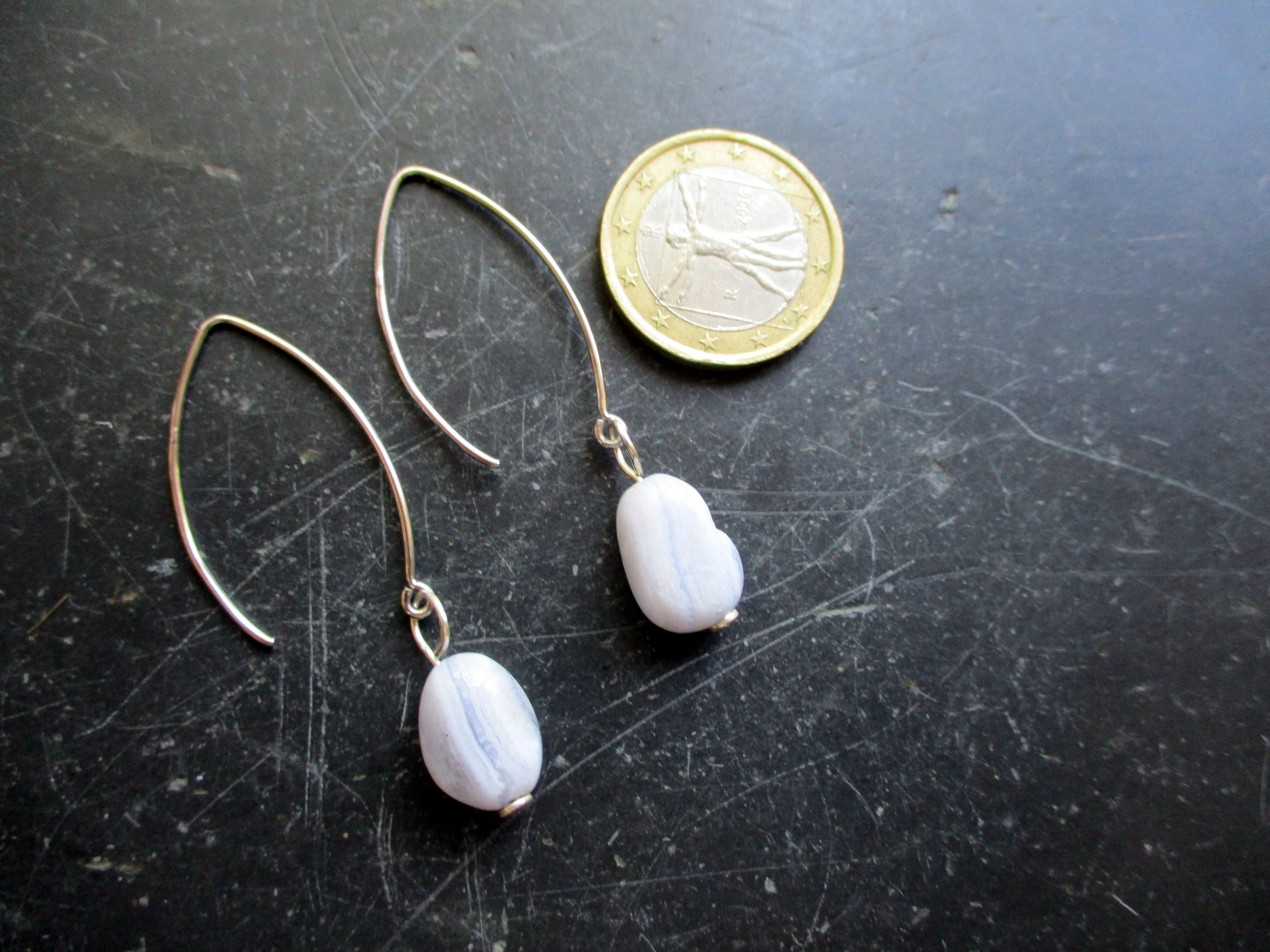 Ohrring, Ohrhänger, Ohrhaken, Sterlingsilber, Chalcedon, hellblau, Schmuck, Frauen