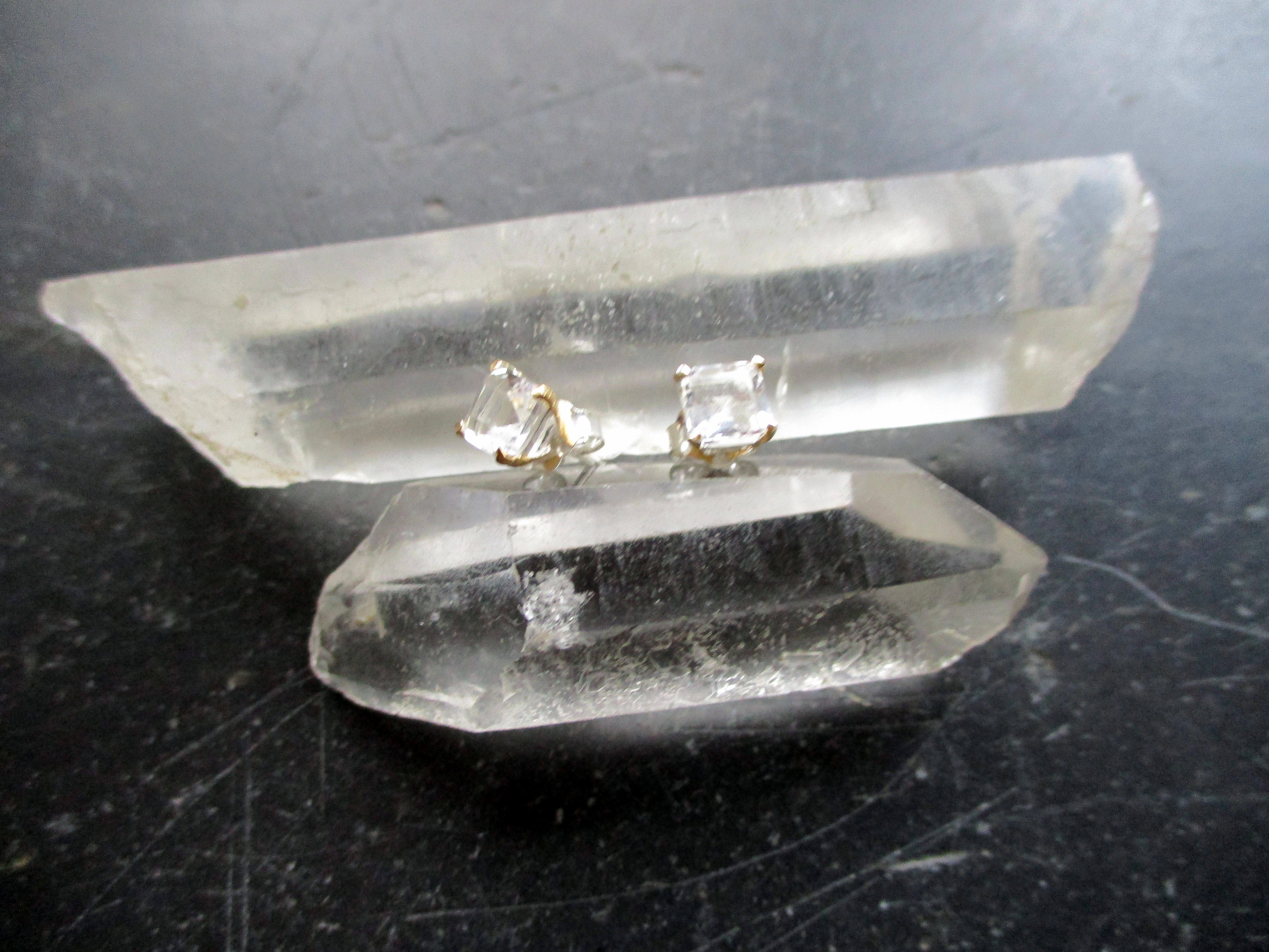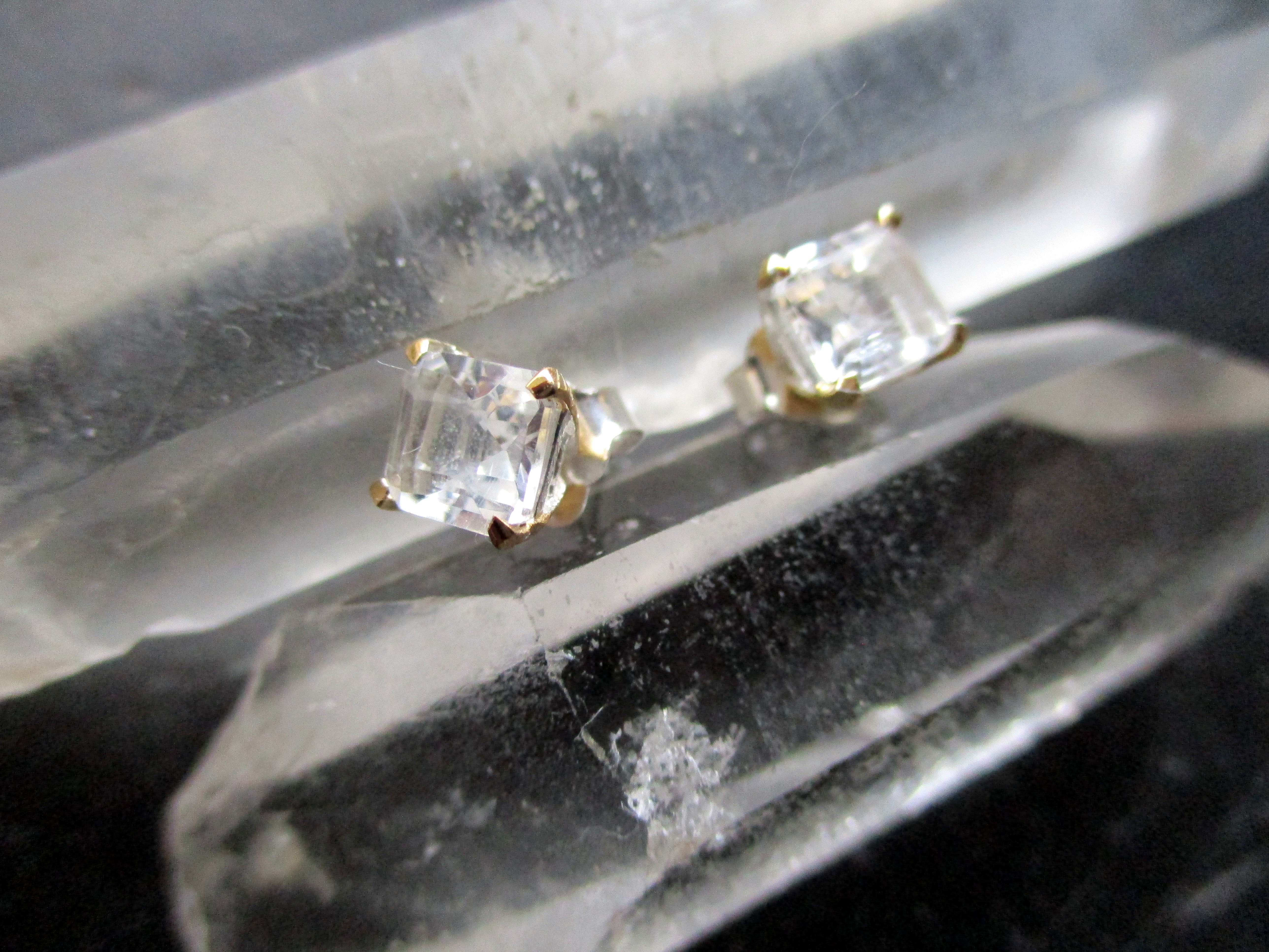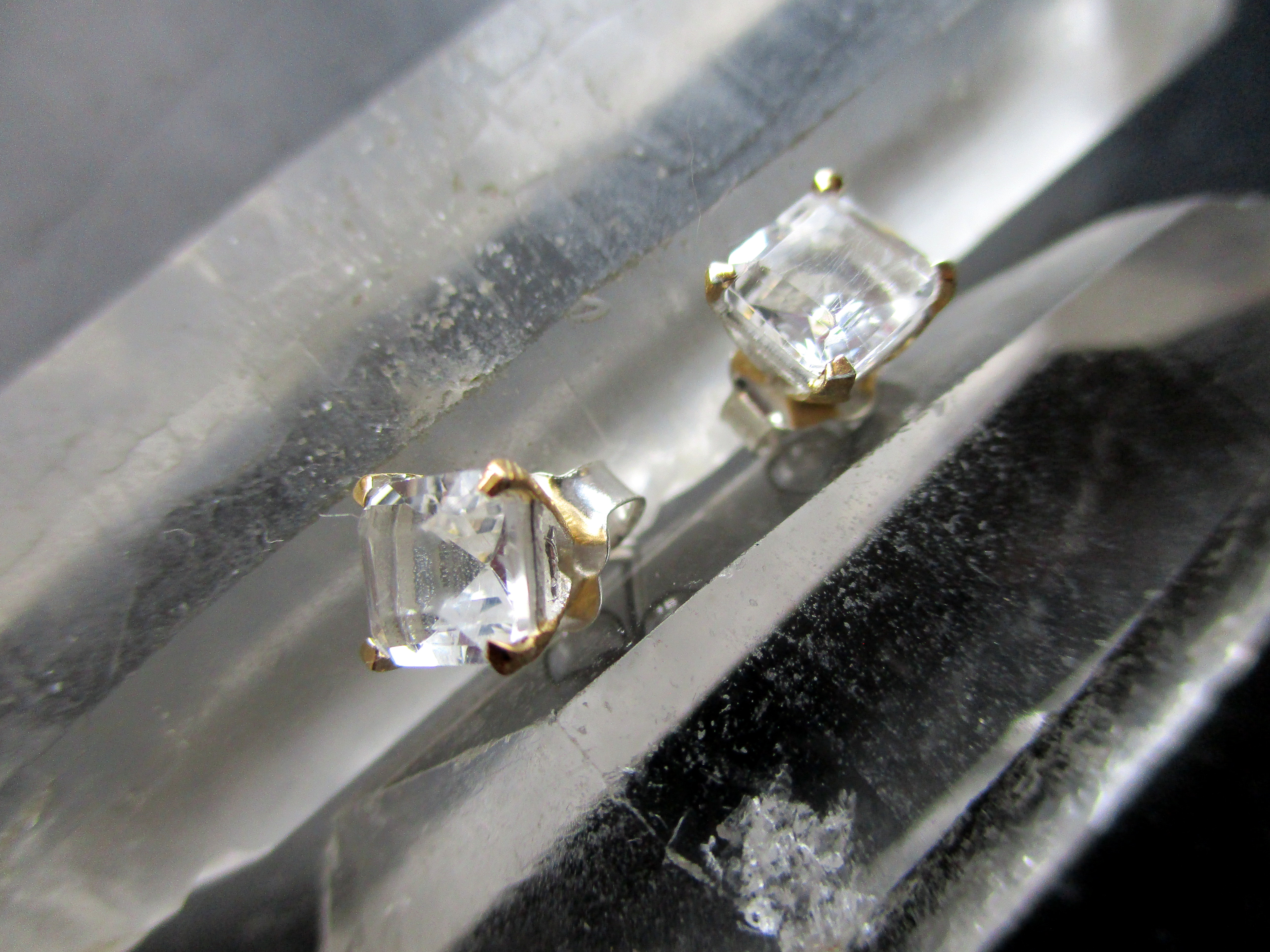 Ohrring, Ohrstecker, Petalit, eckig, facettiert, Silber, teilweise vergoldet, Frauen, Schmuck