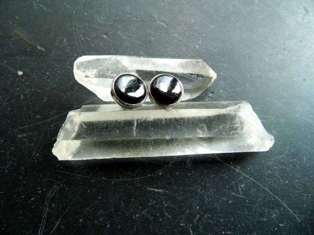 Ohrstecker, Sterlingsilber, Onyx, rund, schwarz, Ohrring