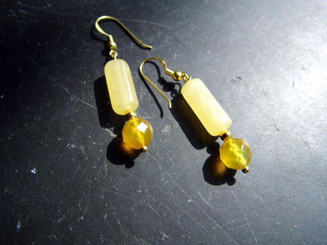 Honigcalcit in leuchtendem Gelb gibt es auch die Ohrringe.