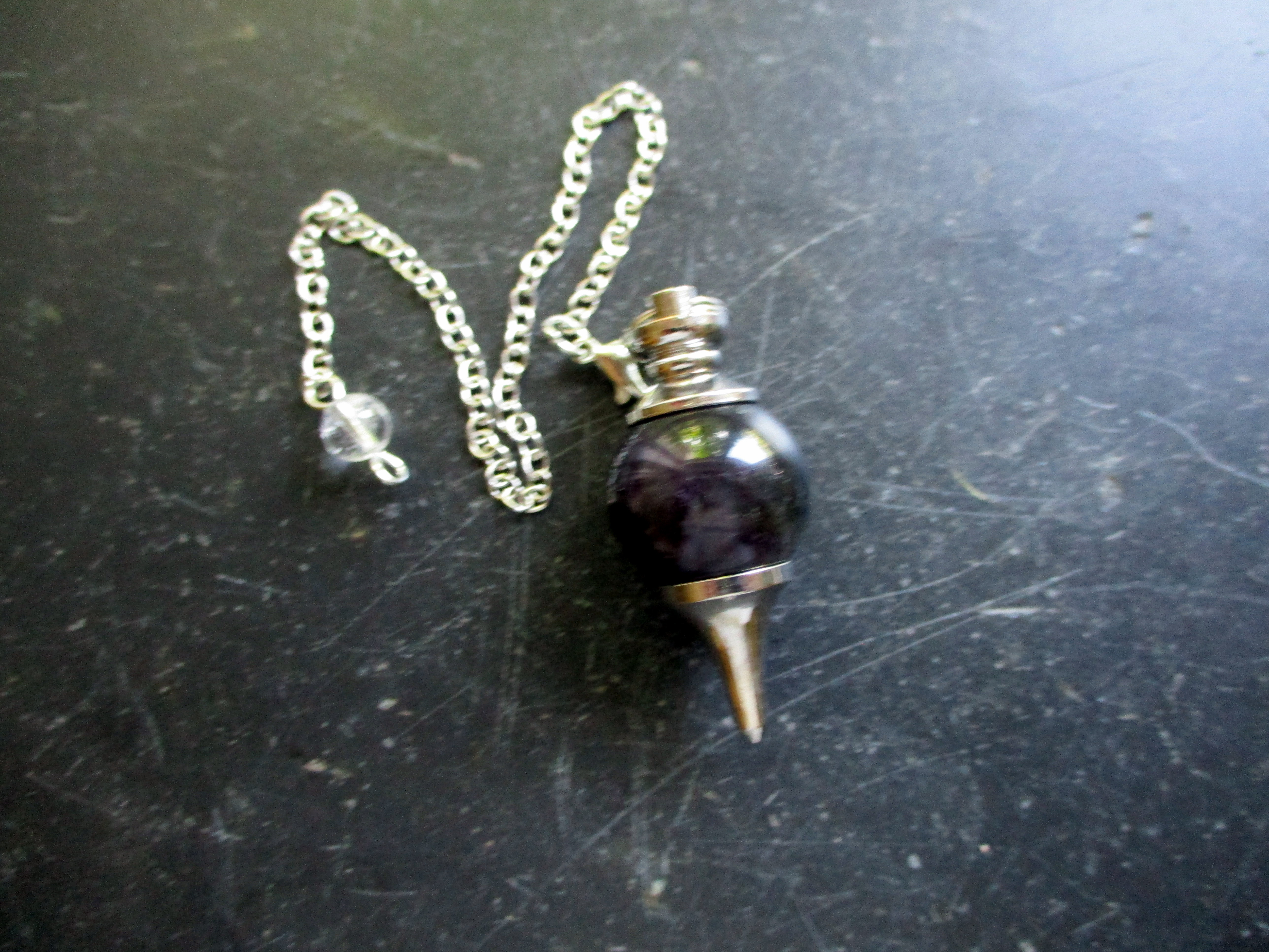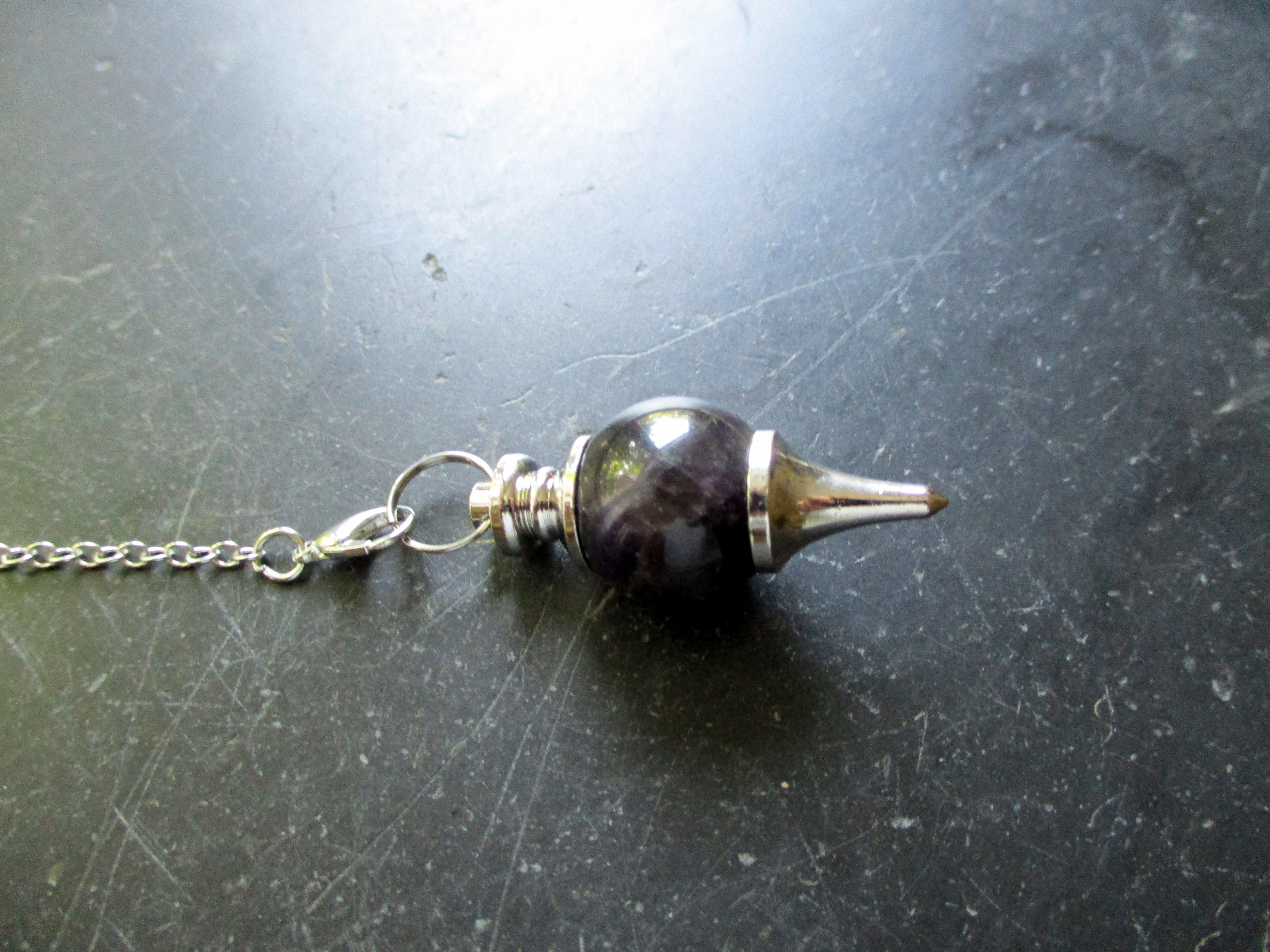 Pendel, Amethyst, Kugel mit Spitze, Metall, silberfarben, Wicca, Schamane