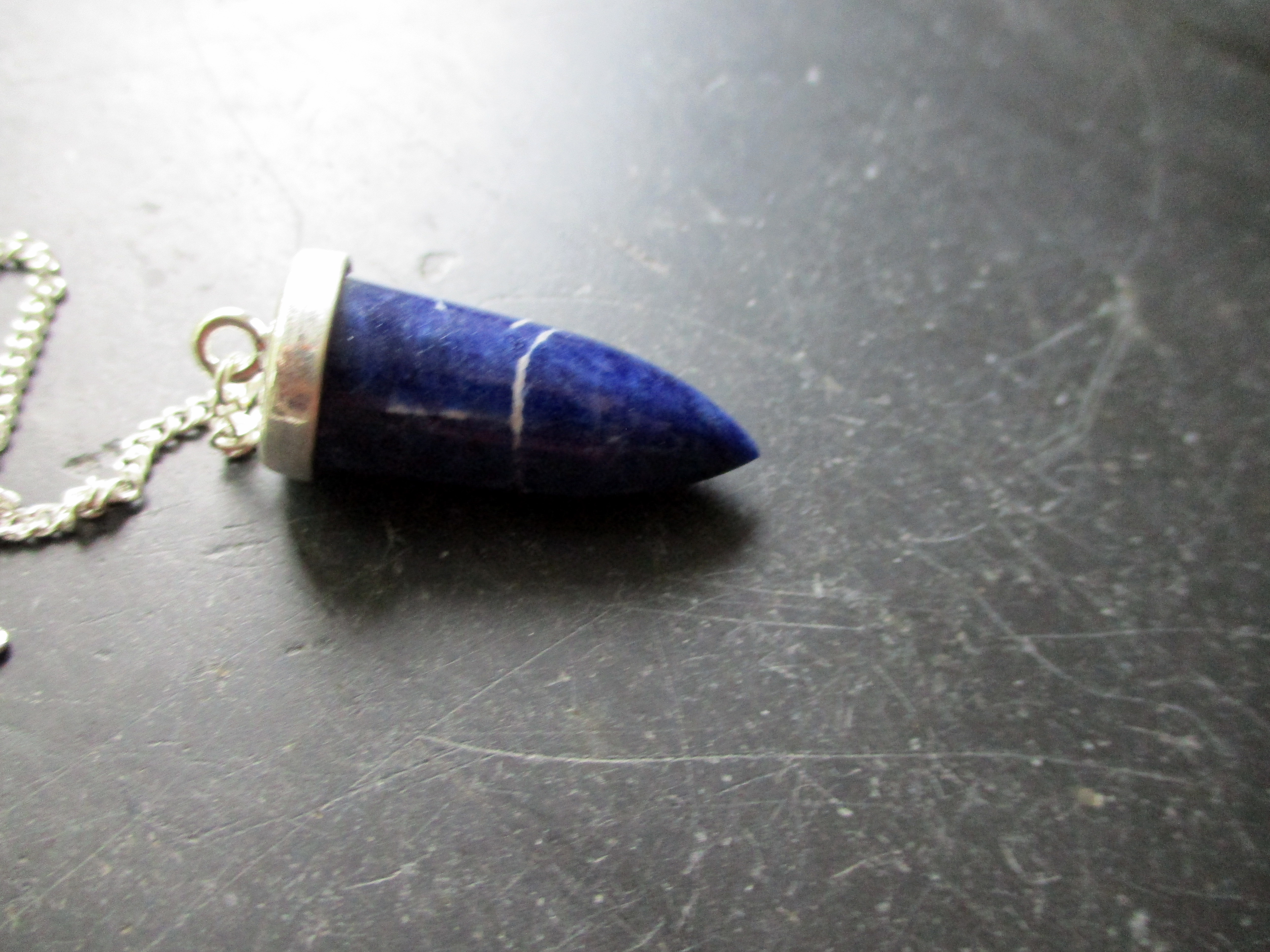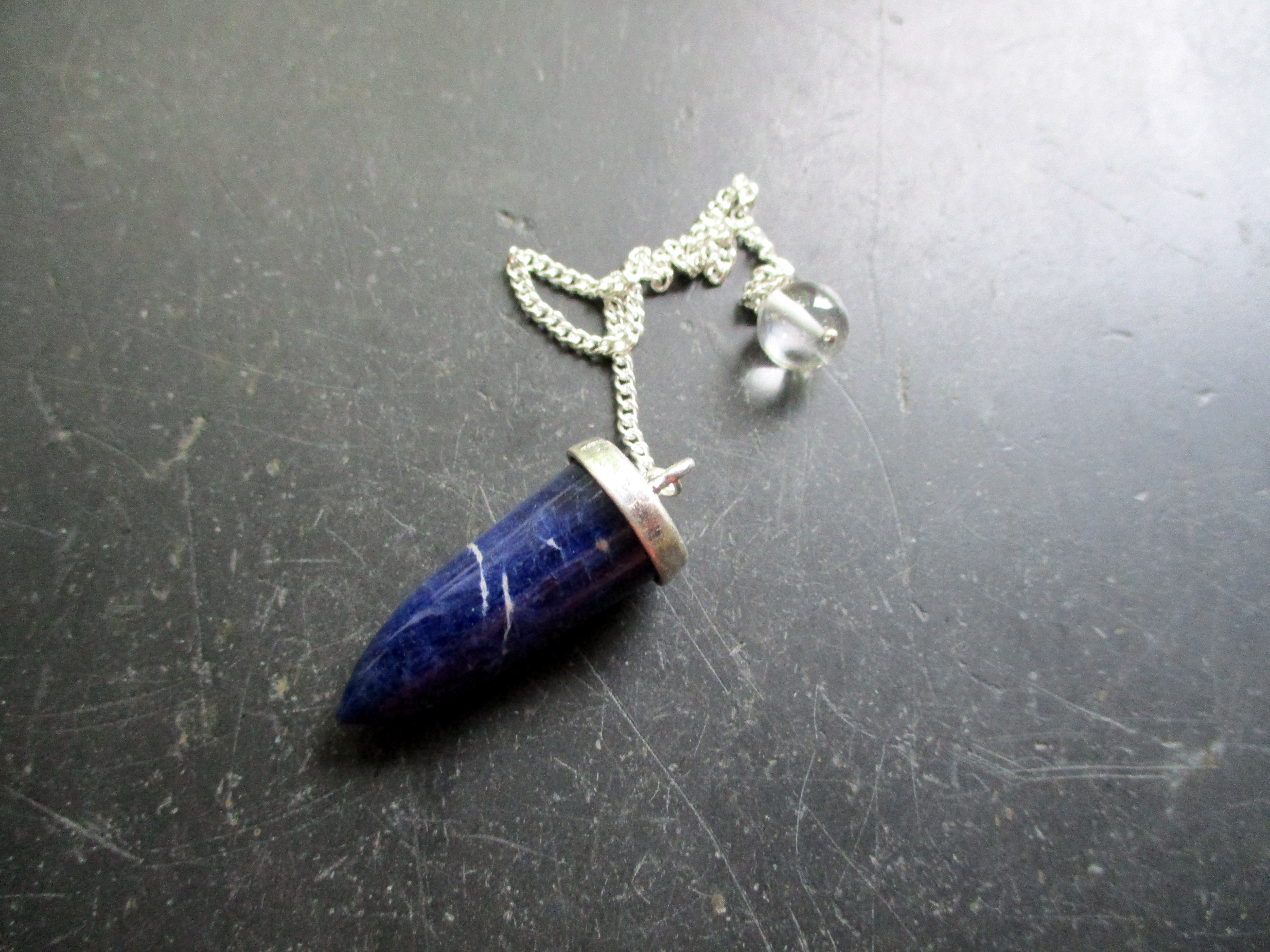 Aus Sodalith ist dieses elegante Spitzpendel gemacht,