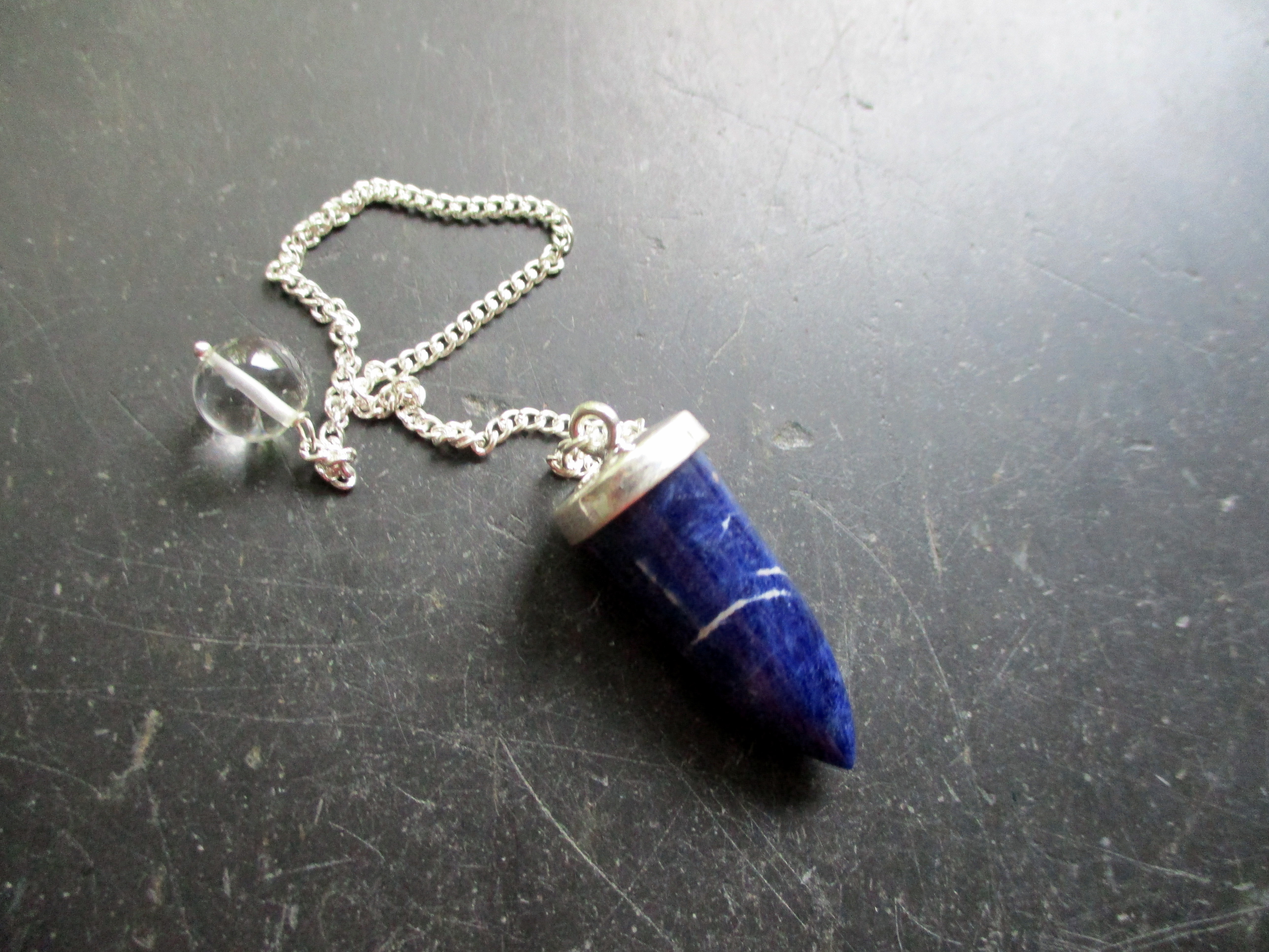Pendel, Sodalith, Metall, versilbert, Spitzpendel, Magie, Esoterik