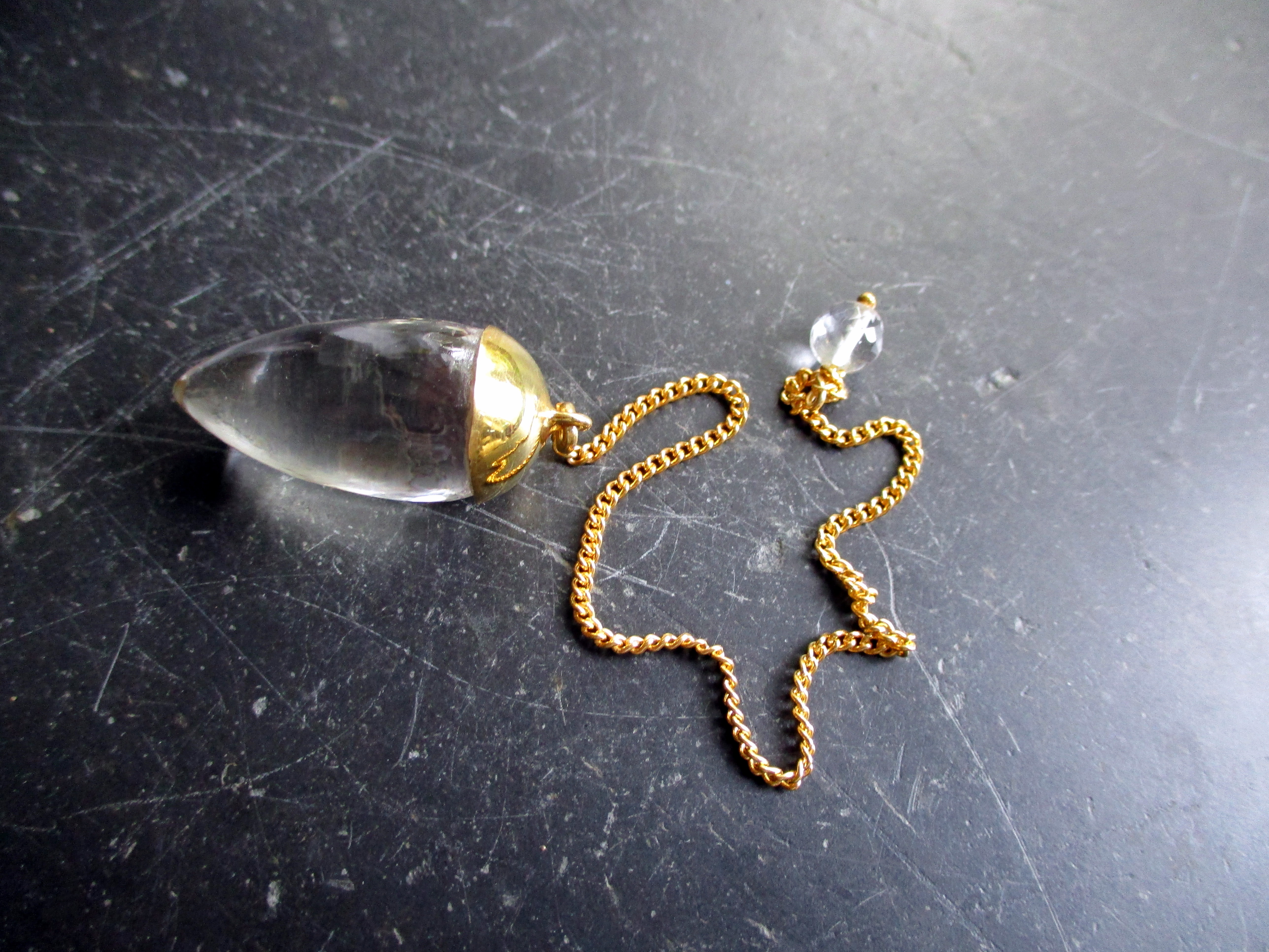 Pendel, Bergkristall, BergkristallPendel, Tropfen, vergoldet, Silber, Wicca, Schamane