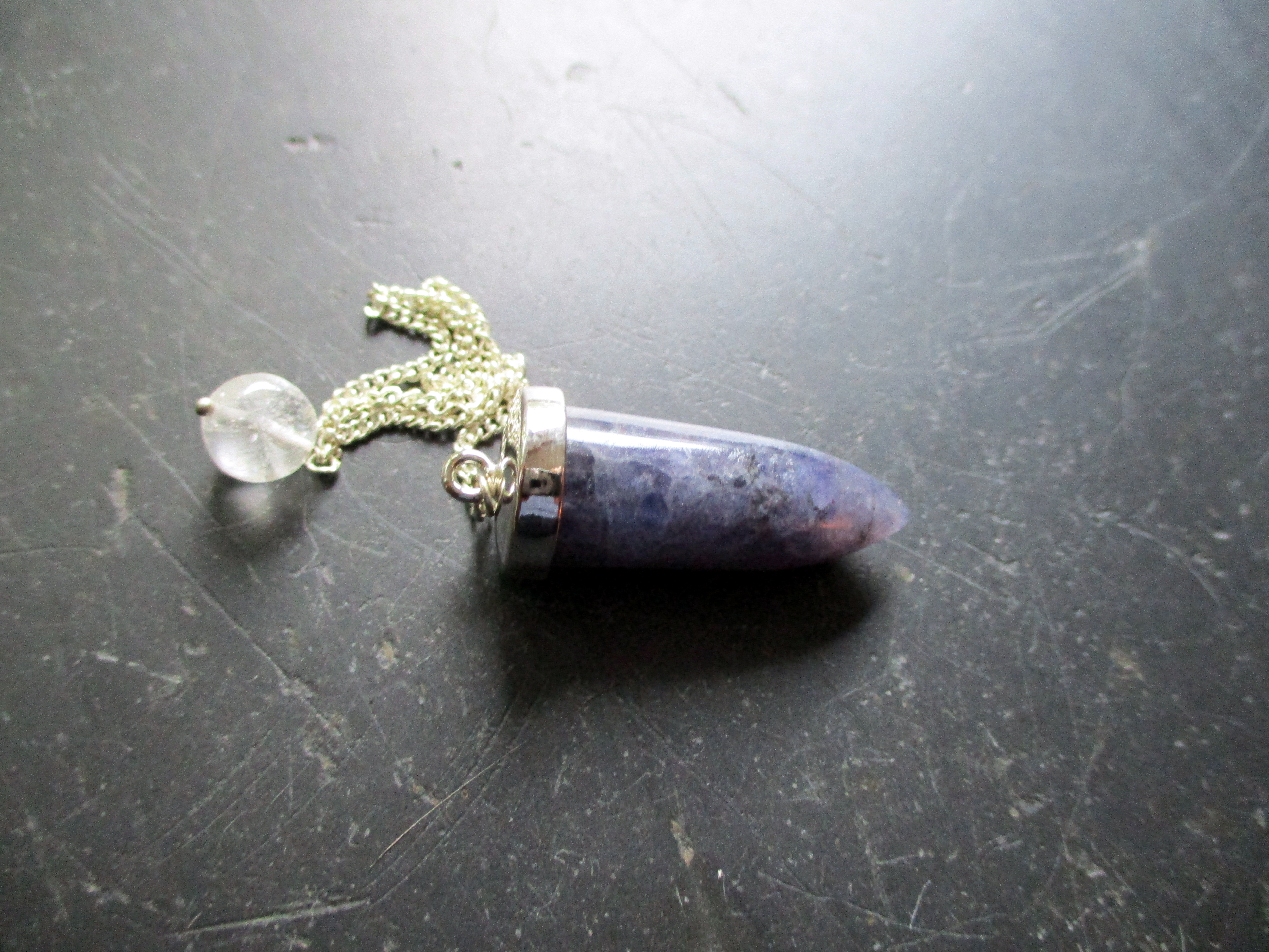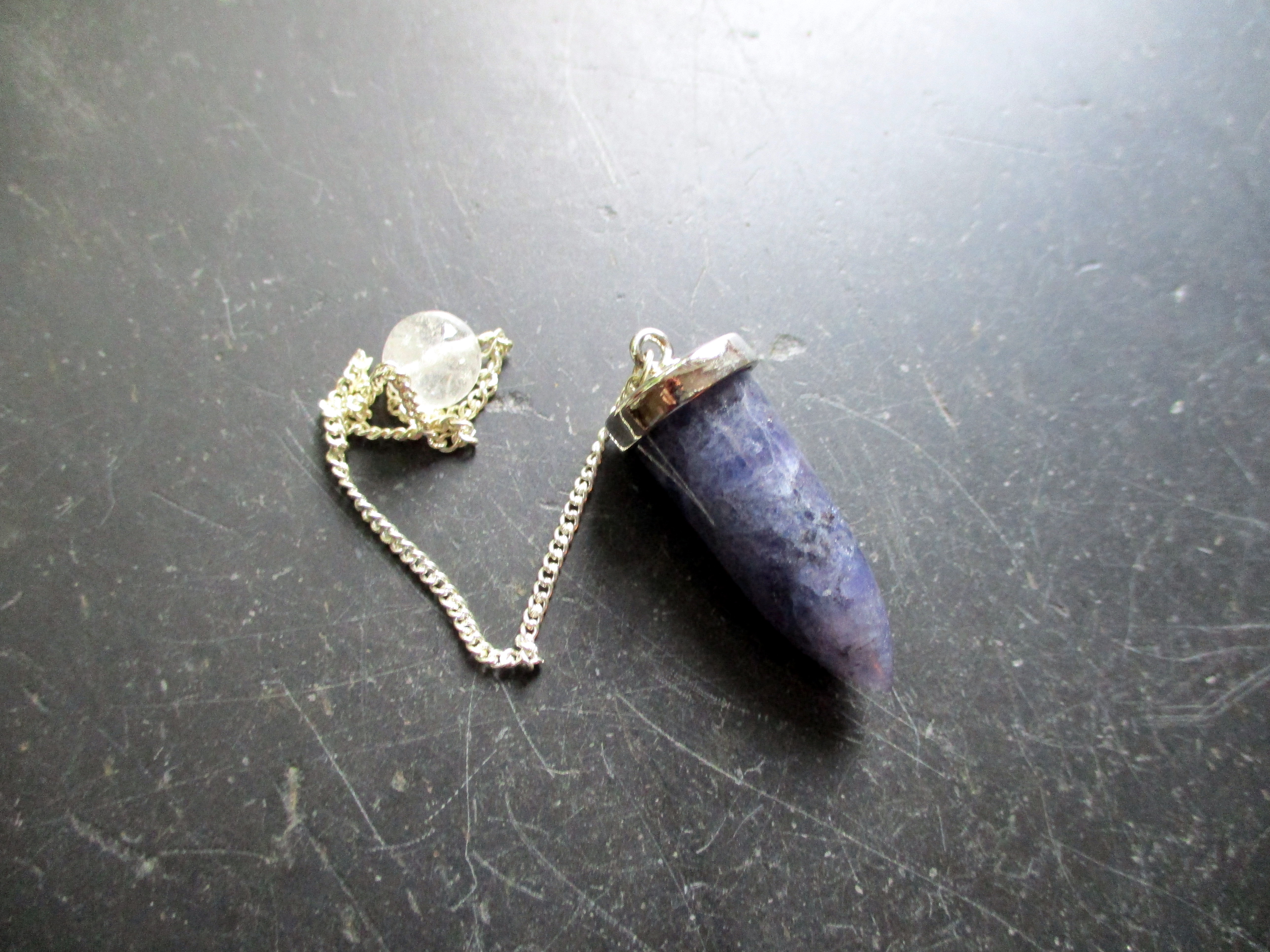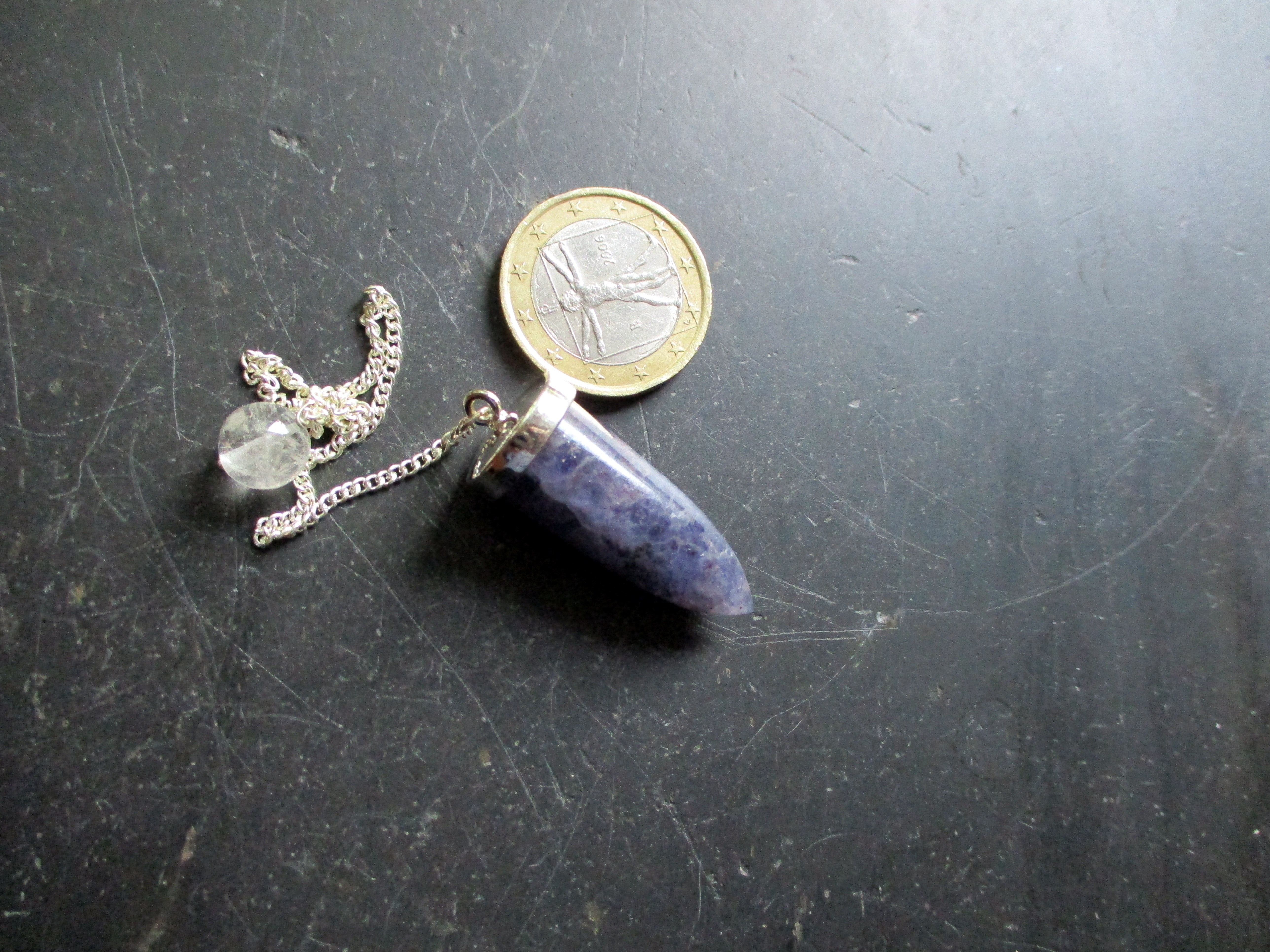 Pendel, Iolith, dunkelblau, Messing, versilbert, Spitzpendel, Wicca, Schamane, Esoterik