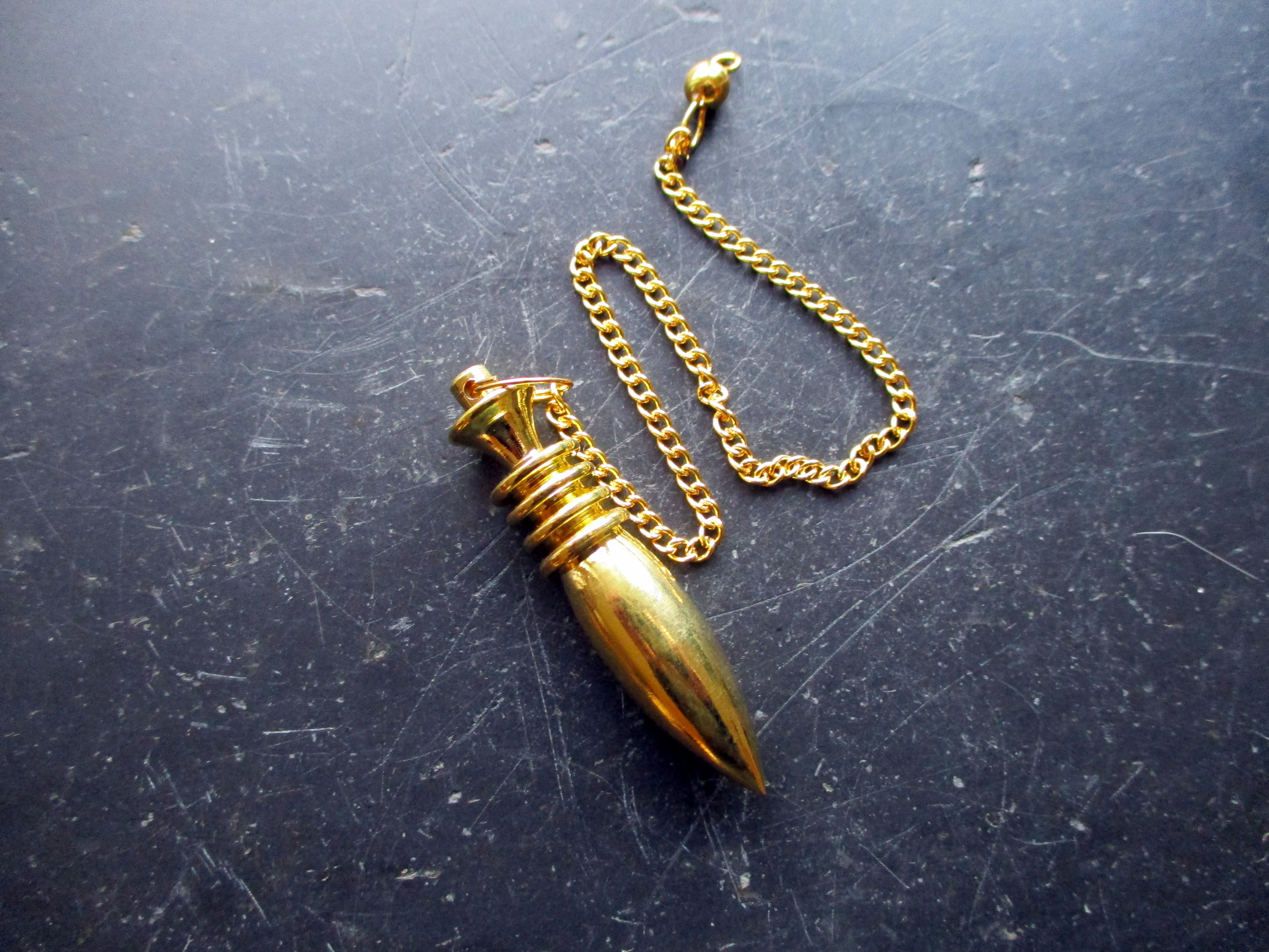 Pendel, spitz, Spitzpendel, Karnakpendel, Messing, Esoterik, Schamane, Wicca