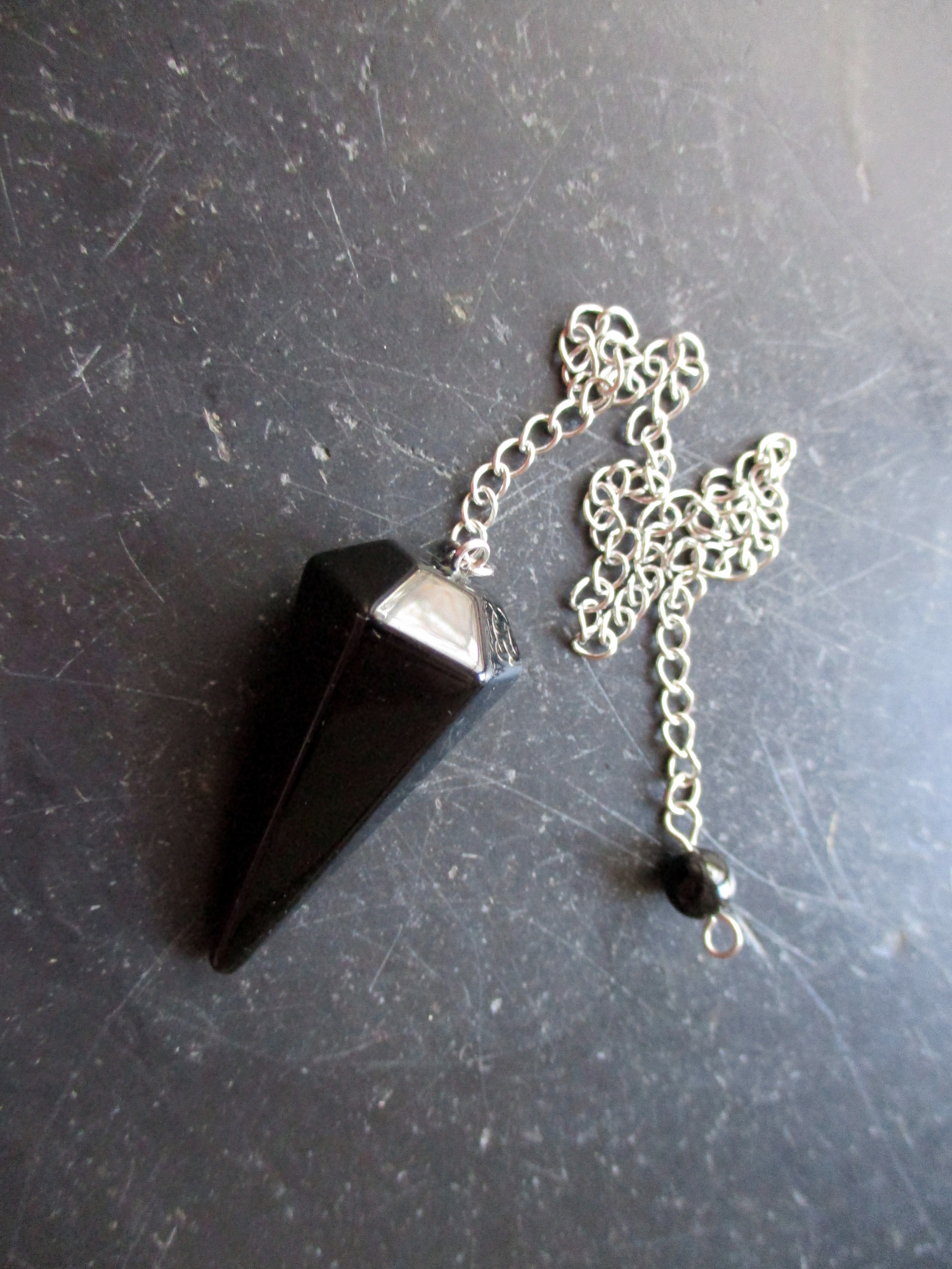 Pendel, Obsidian, Metall, Spitzpendel, facettiert, Wicca, Schamane