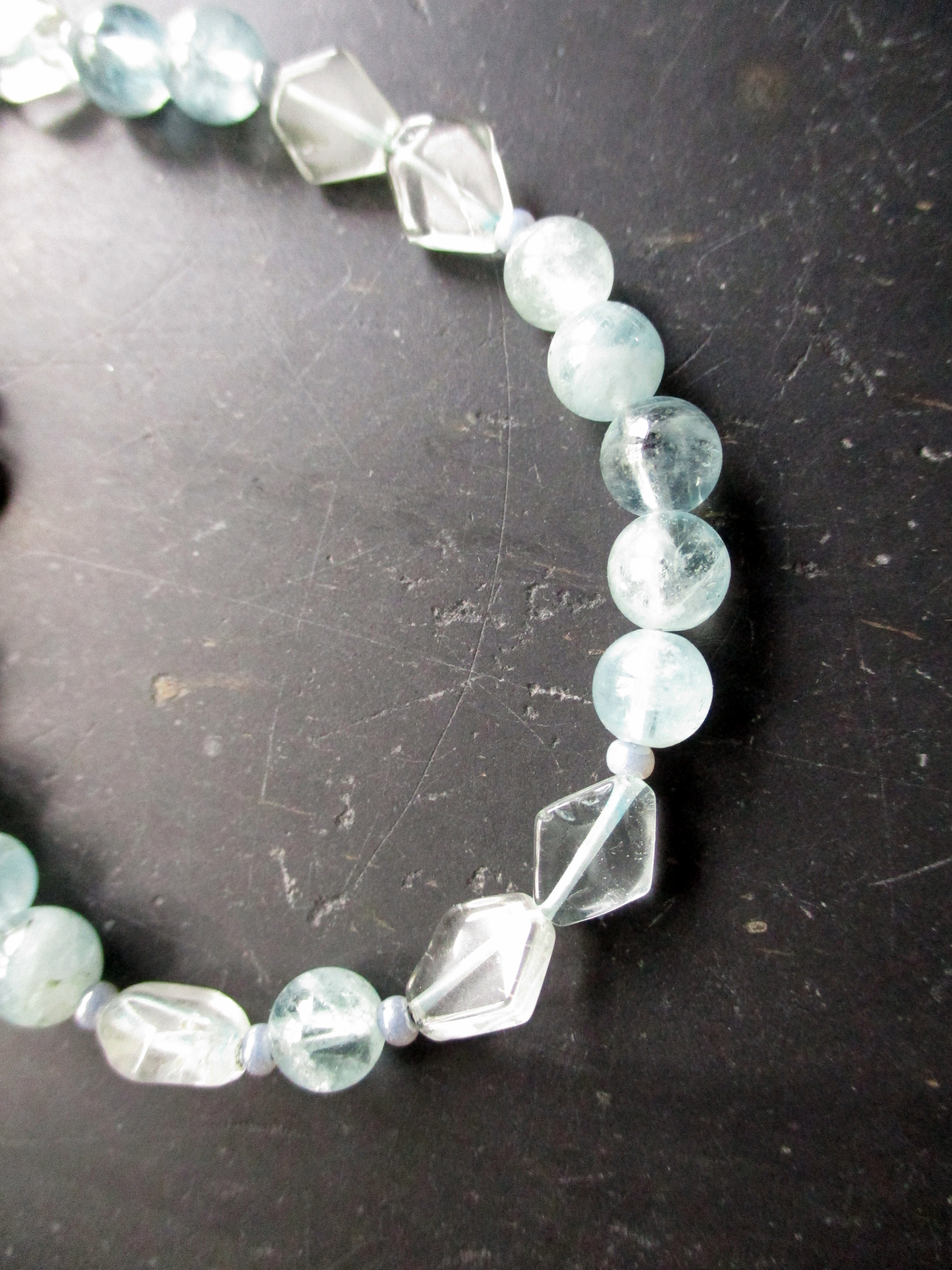 Kleine Rauten und Perlen von Aquamarin wechseln sich in dieser