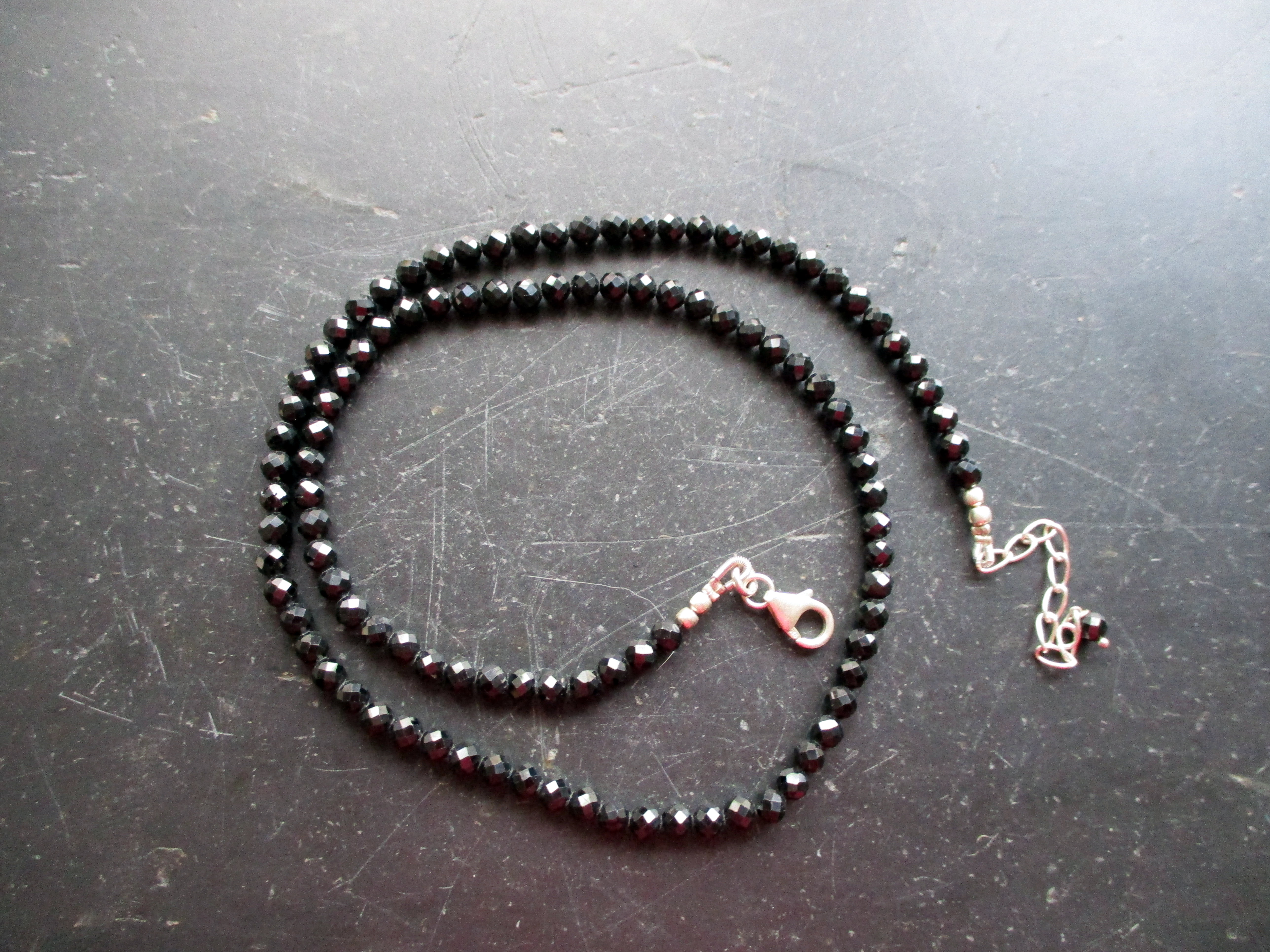 Kette, Spinell, schwarz, Silber, facettiert, Schmuck, Frauen, Verlängerung