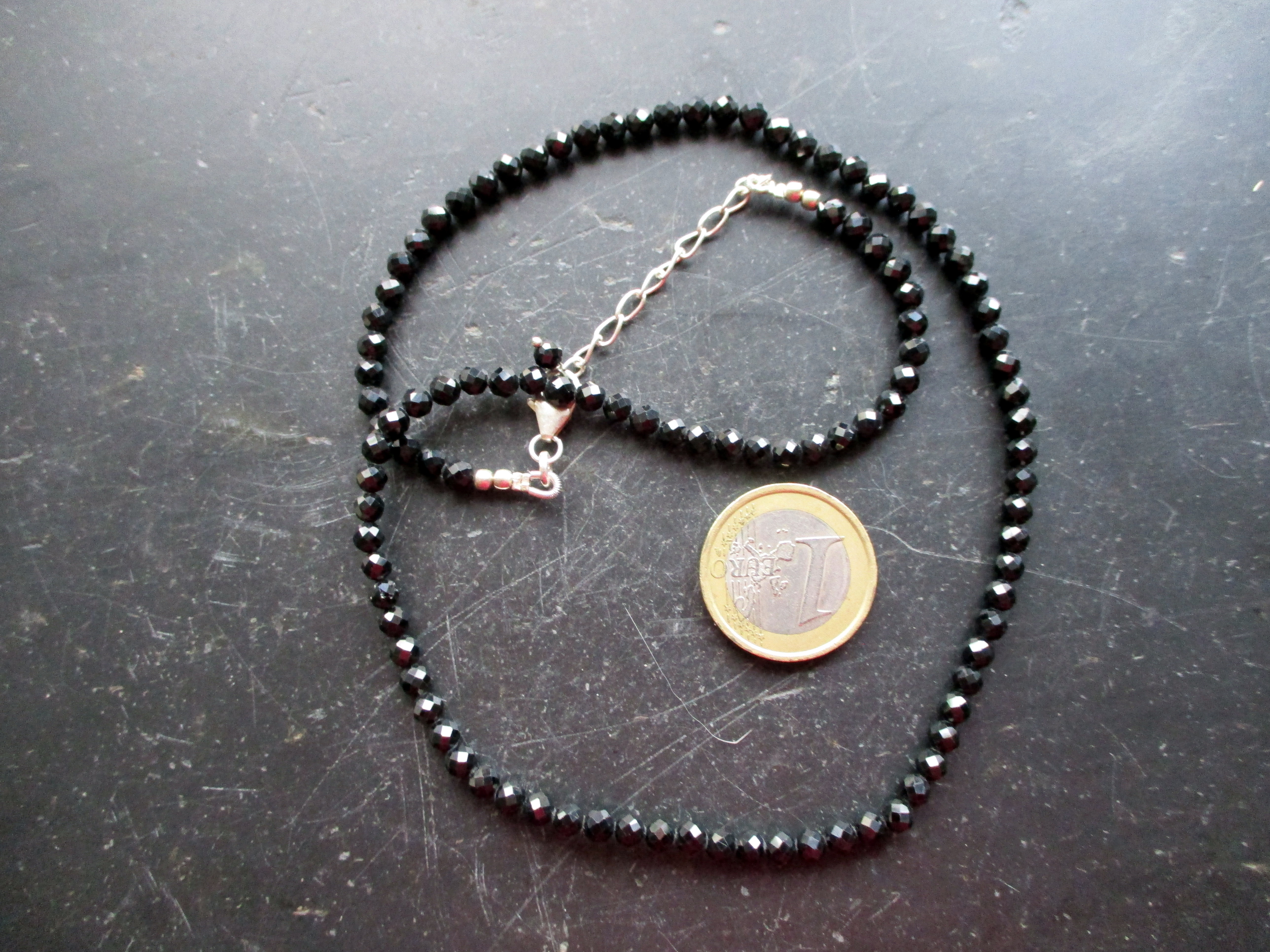 Diese Kette ist aus schwarzem Spinell, die kleinen Kugeln