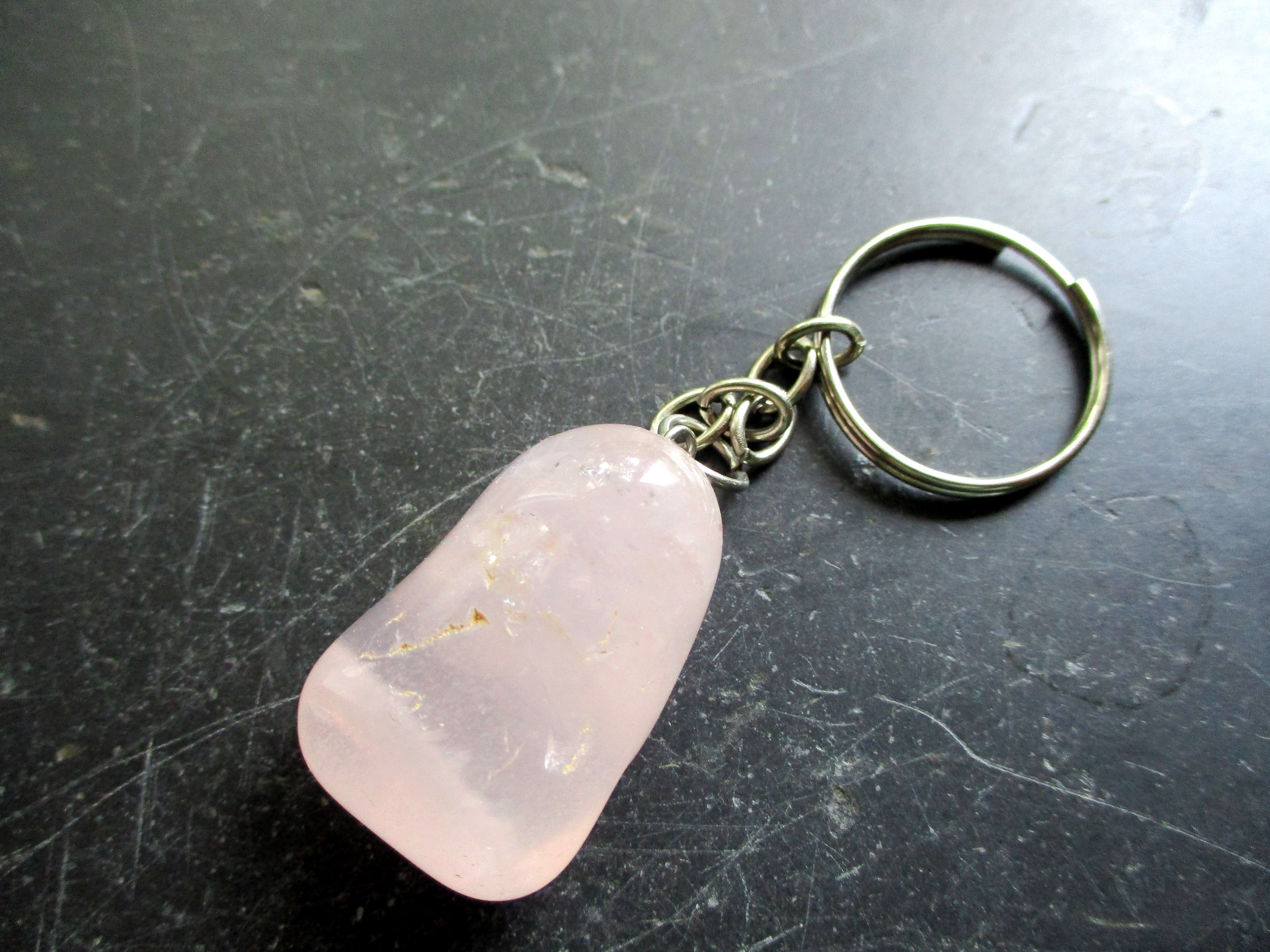 Mobile Preview: Schlüsselanhänger, Taschenanhänger, Rosenquarz, Metall, Edelstein