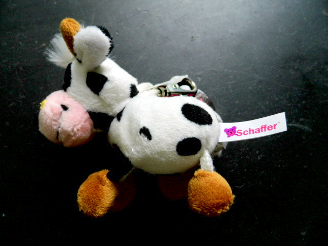 Schlüsselanhänger, Taschenanhänger, Anhänger, Rucksack, Kuh, weiß, Plüsch, flauschig