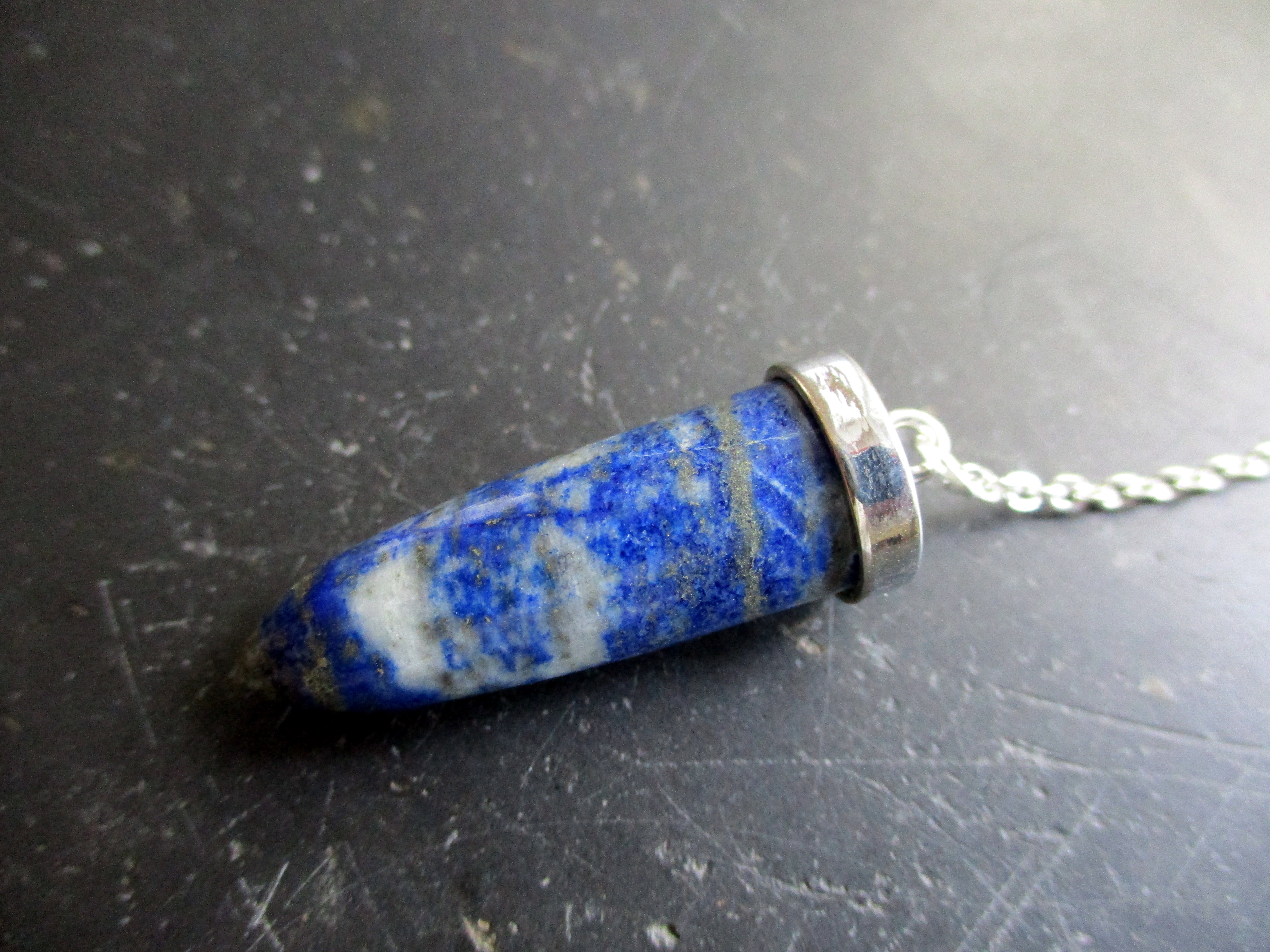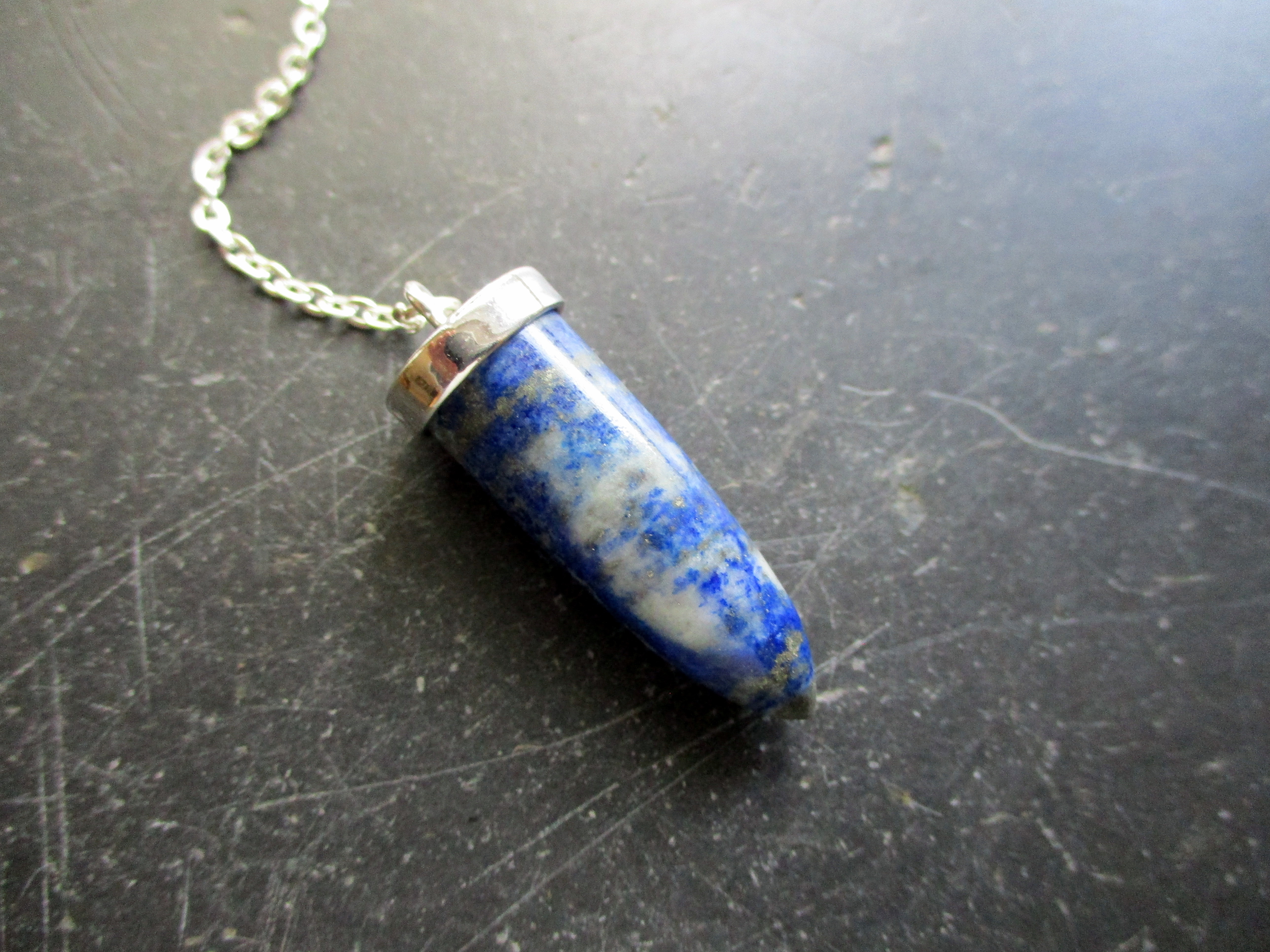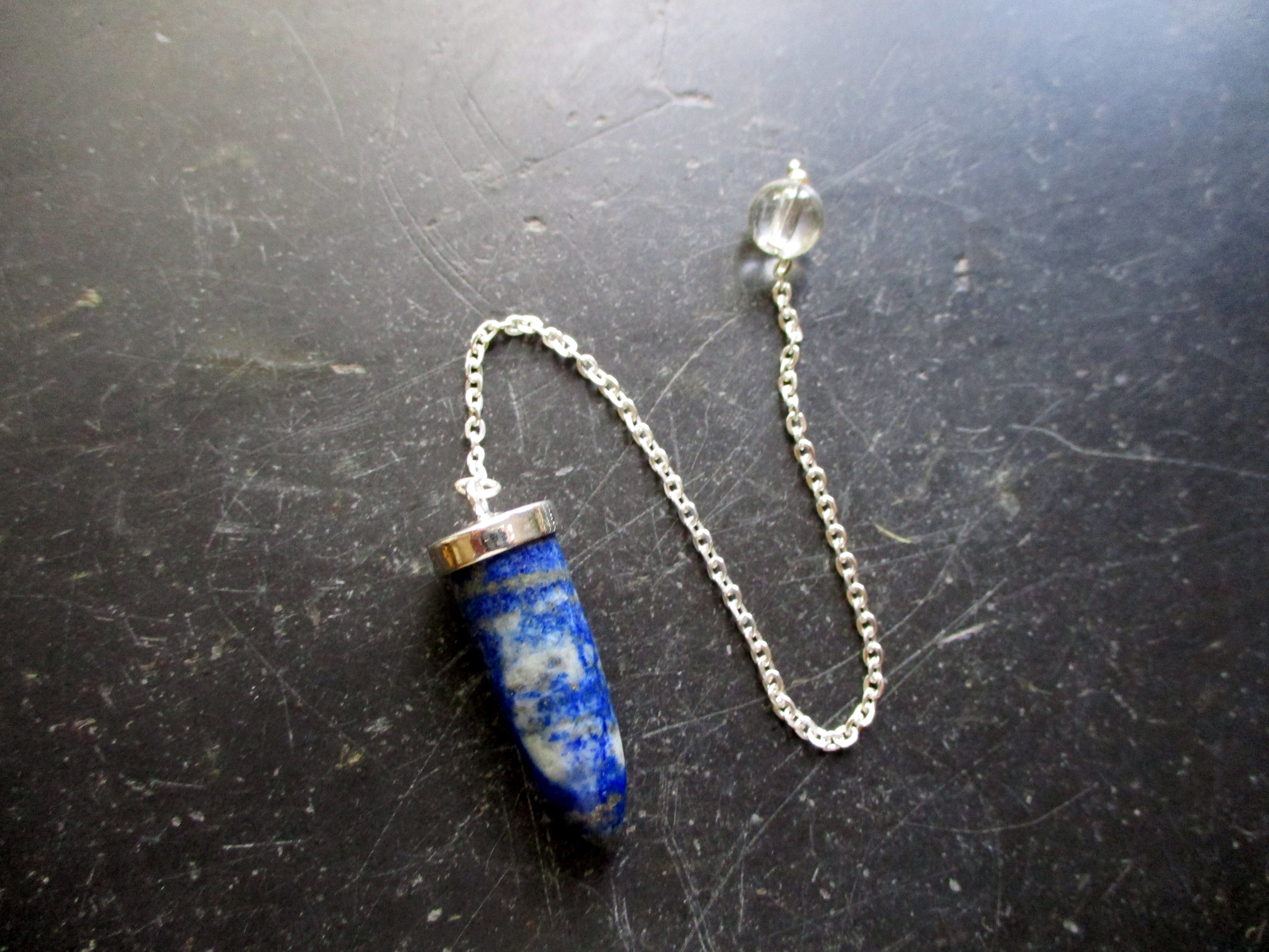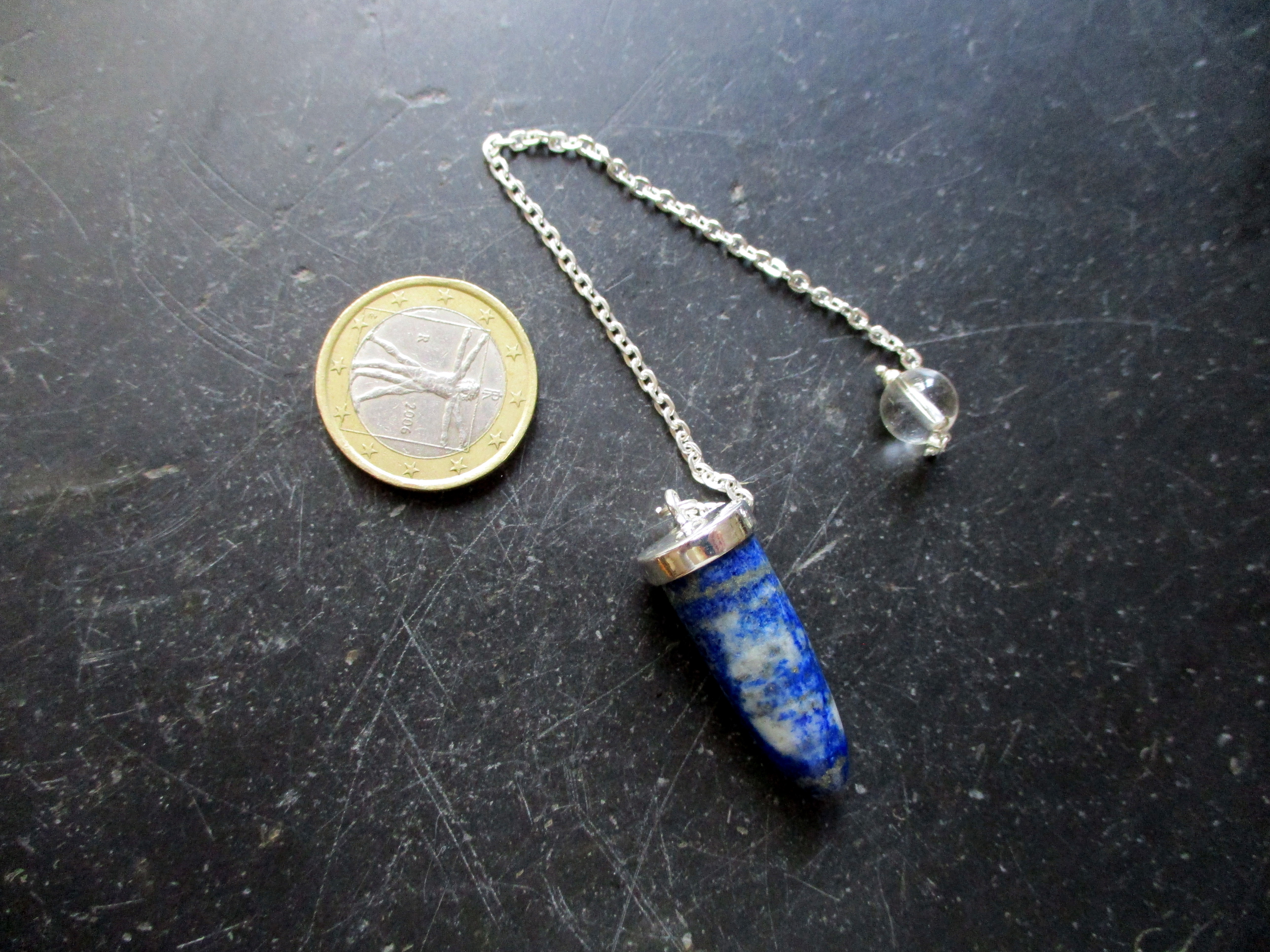 Pendel, Spitzpendel, Lapislazuli, Metall, versilbert, Magie, Esoterik