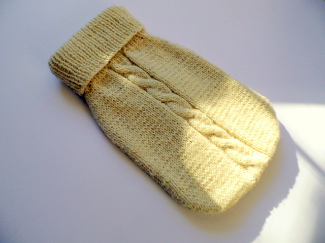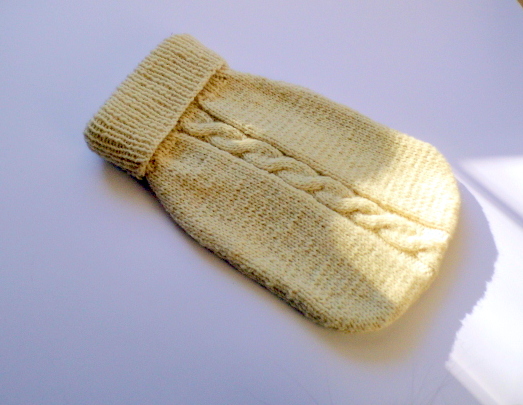 Wärmflaschenbezug, Wärmflasche, Bezug, Wolle, Zopfmuster, hellbeige